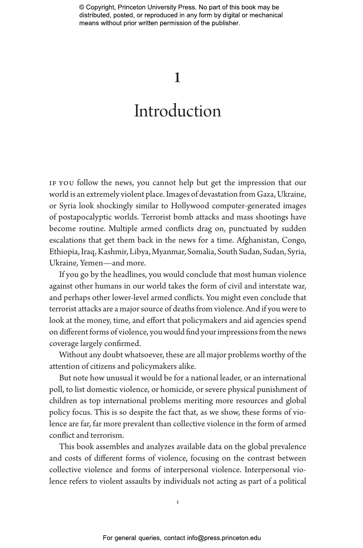 Civil wars, interstate wars, and terrorism receive a great deal of media and policy attention, for good reasons. By contrast, the major forms of interpersonal violence鈥攈omicide, intimate partner violence, and severe physical punishment of children鈥攇enerally have a much lower profile.