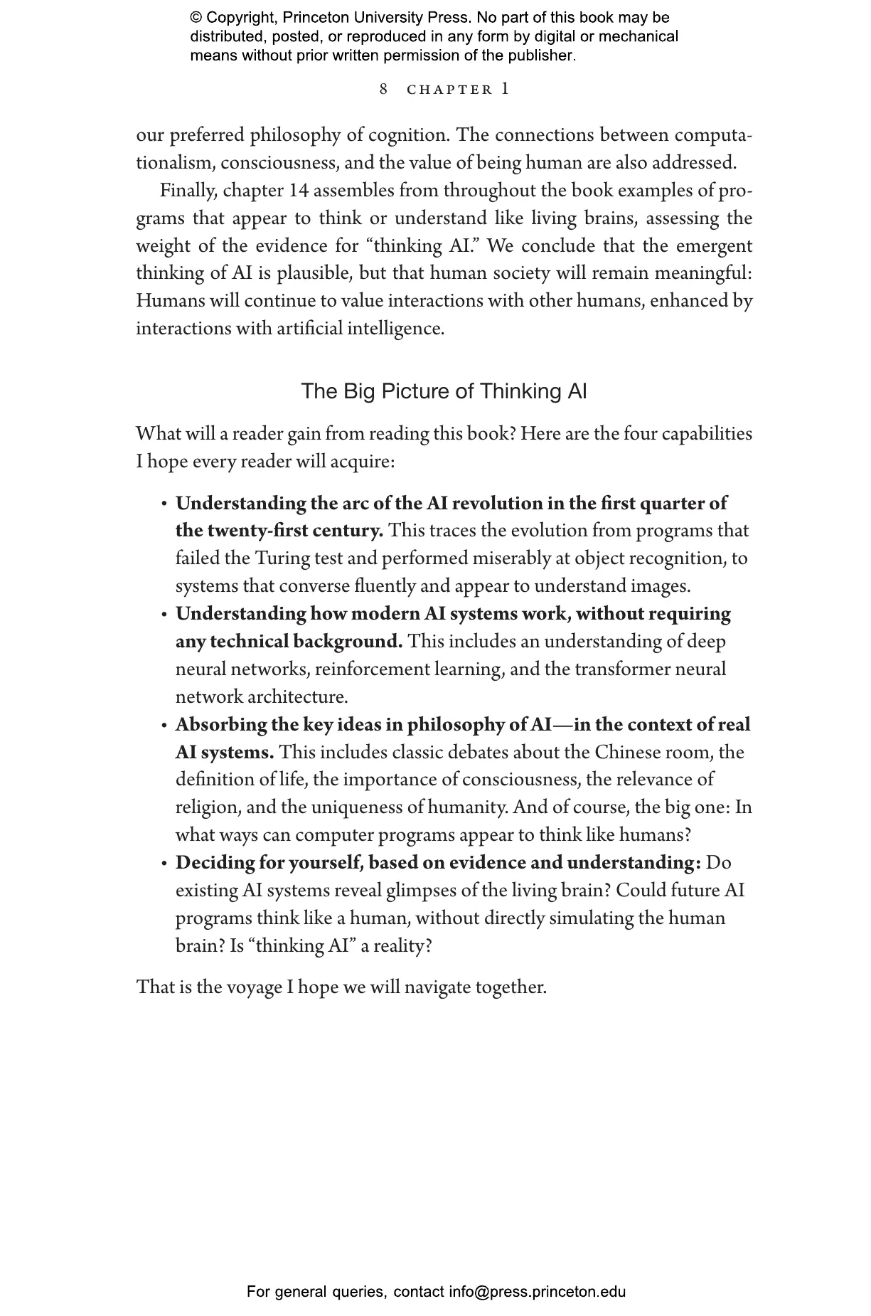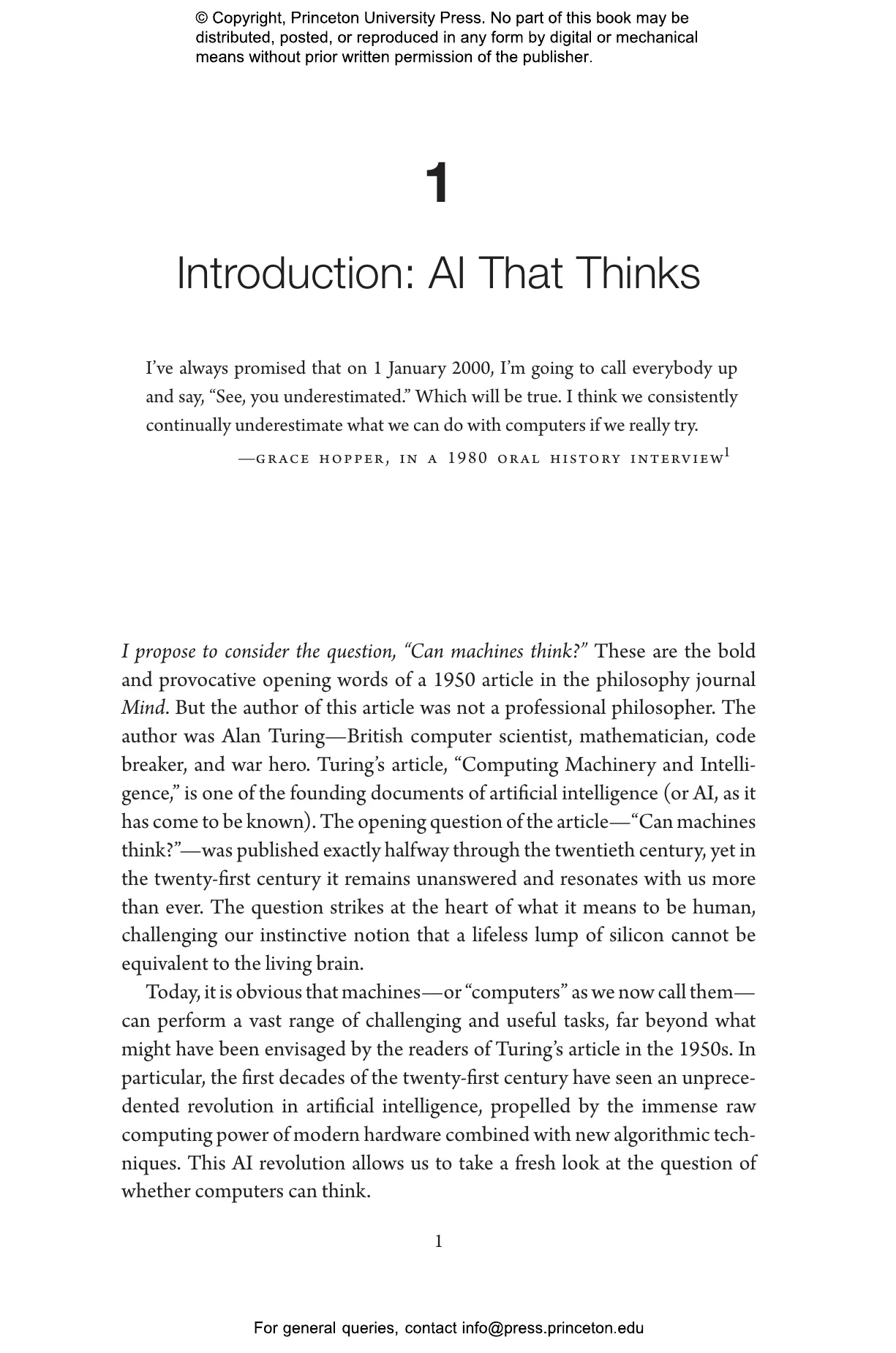 鈥淐an machines think?鈥 Ever since Alan Turing posed this question in an influential 1950 paper, it has been central to research in artificial intelligence. More than seventy-five years after Turing鈥檚 paper, we grapple with it every time we wonder if Watson was actually smarter than Jeopardy! champions, or if ChatGPT really knows what it鈥檚 talking about. In Thinking AI, computer scientist John MacCormick explores Turing鈥檚 question from a perspective informed by a detailed understanding of the way modern AI systems work. MacCormick explains, in accessible fashion, the ideas behind the two main pillars of the twenty-first century AI revolution: deep neural networks and reinforcement learning.