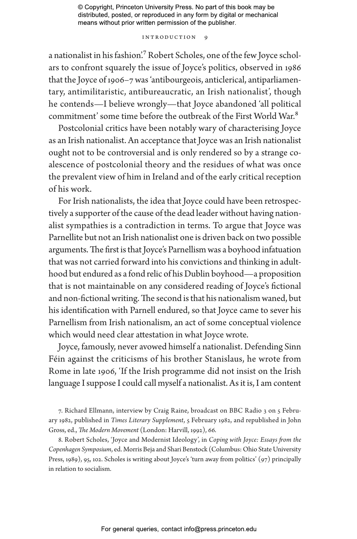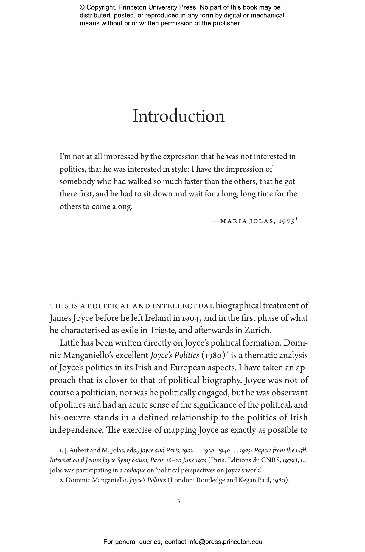 “Anyone interested in Joyce’s politics, a much-contested field, must read this book. It is authoritative, original, and richly argumentative, steering a complex course between conflicting opinions. All aspects of the topic are considered, and many errors in previous accounts are corrected. Indispensable.”—Zachary Leader, author of Ellmann’s Joyce: The Biography of a Masterpiece and Its Maker
