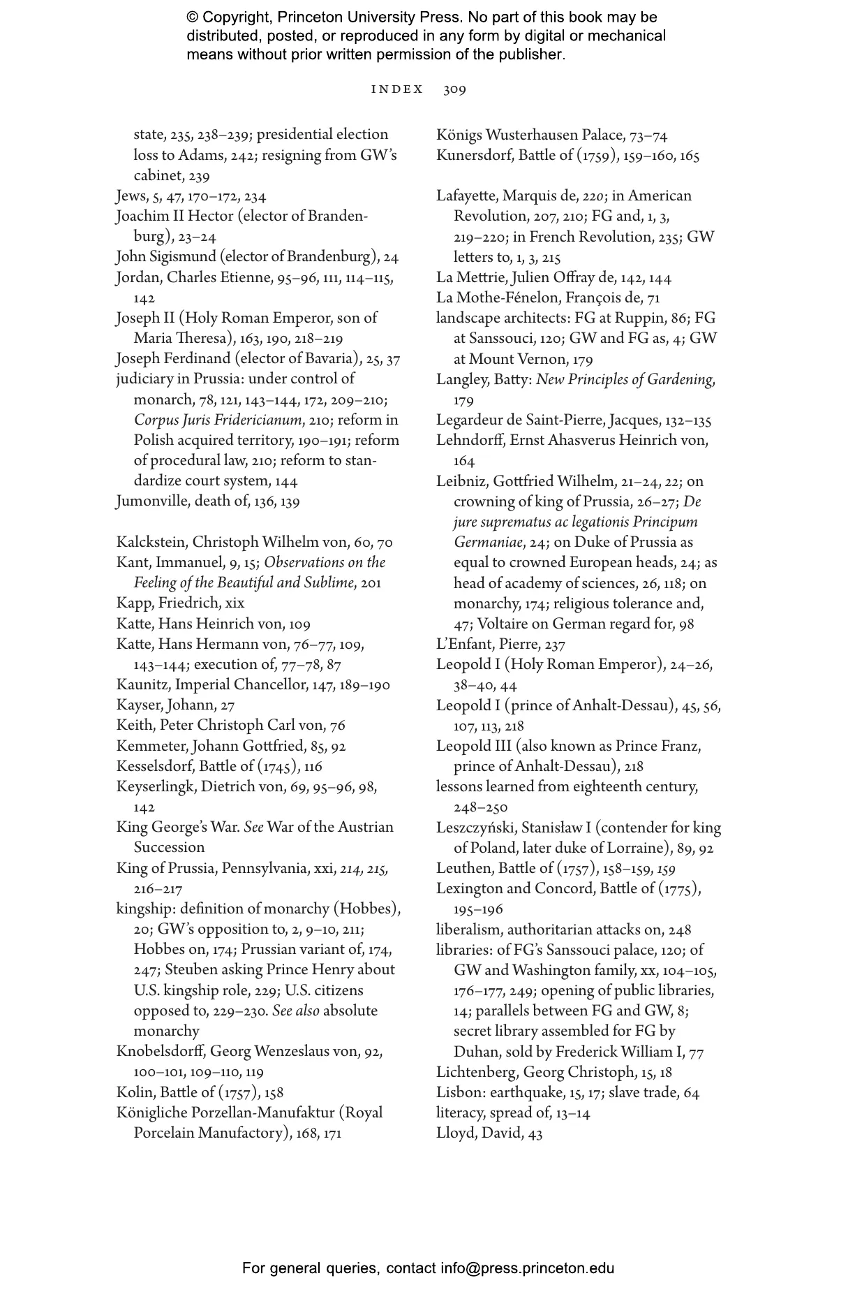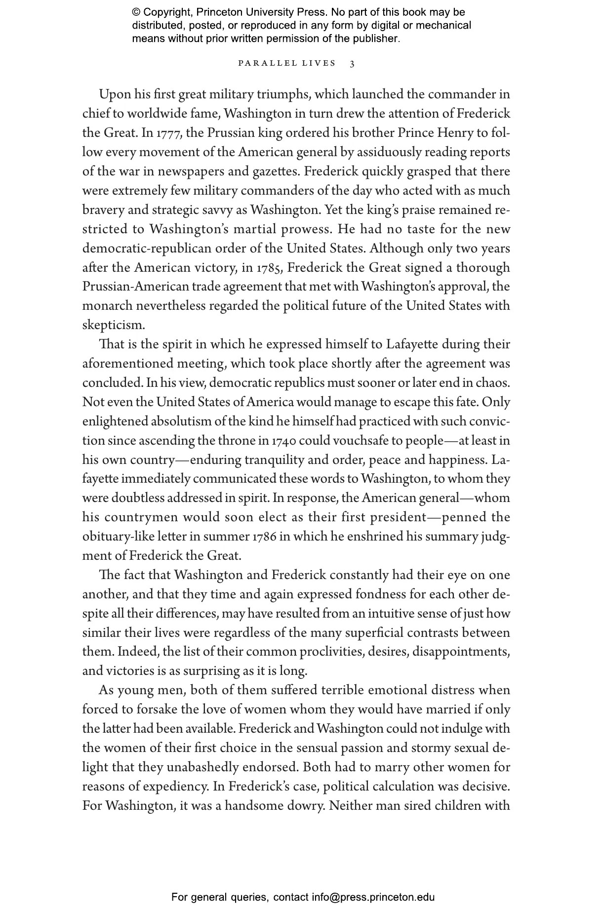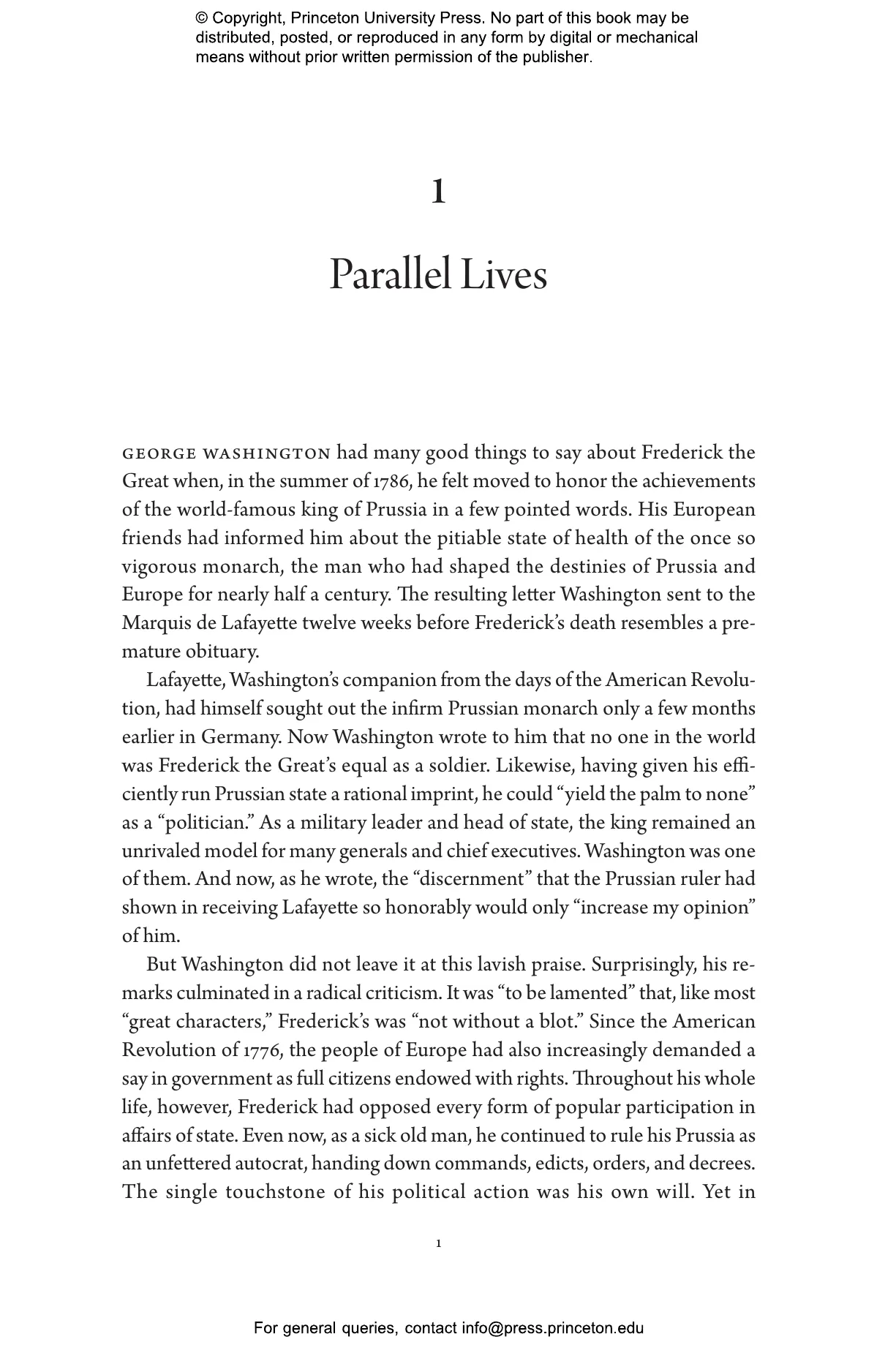 Overhoff describes how Washington admired Frederick鈥檚 actions during the Seven Years鈥 War (also known as the French and Indian War) in the 1750s, when Frederick allied with the British and North Americans. Later, Frederick was impressed by Washington鈥檚 leadership of the Continental Army during the American Revolution. Prussia and the United States even signed a friendship treaty after the war. But, as Overhoff shows, the two men had very different ideas about the principles of the Enlightenment, monarchy, and democracy. Despite his Enlightenment bona fides, Frederick ruled Prussia by edict and decree, always with the goal of maintaining his own power. Washington famously stepped down after two terms in office. Overhoff argues convincingly that the political trajectories of Frederick and Washington shed light on the contemporary clash between authoritarianism and democracy.