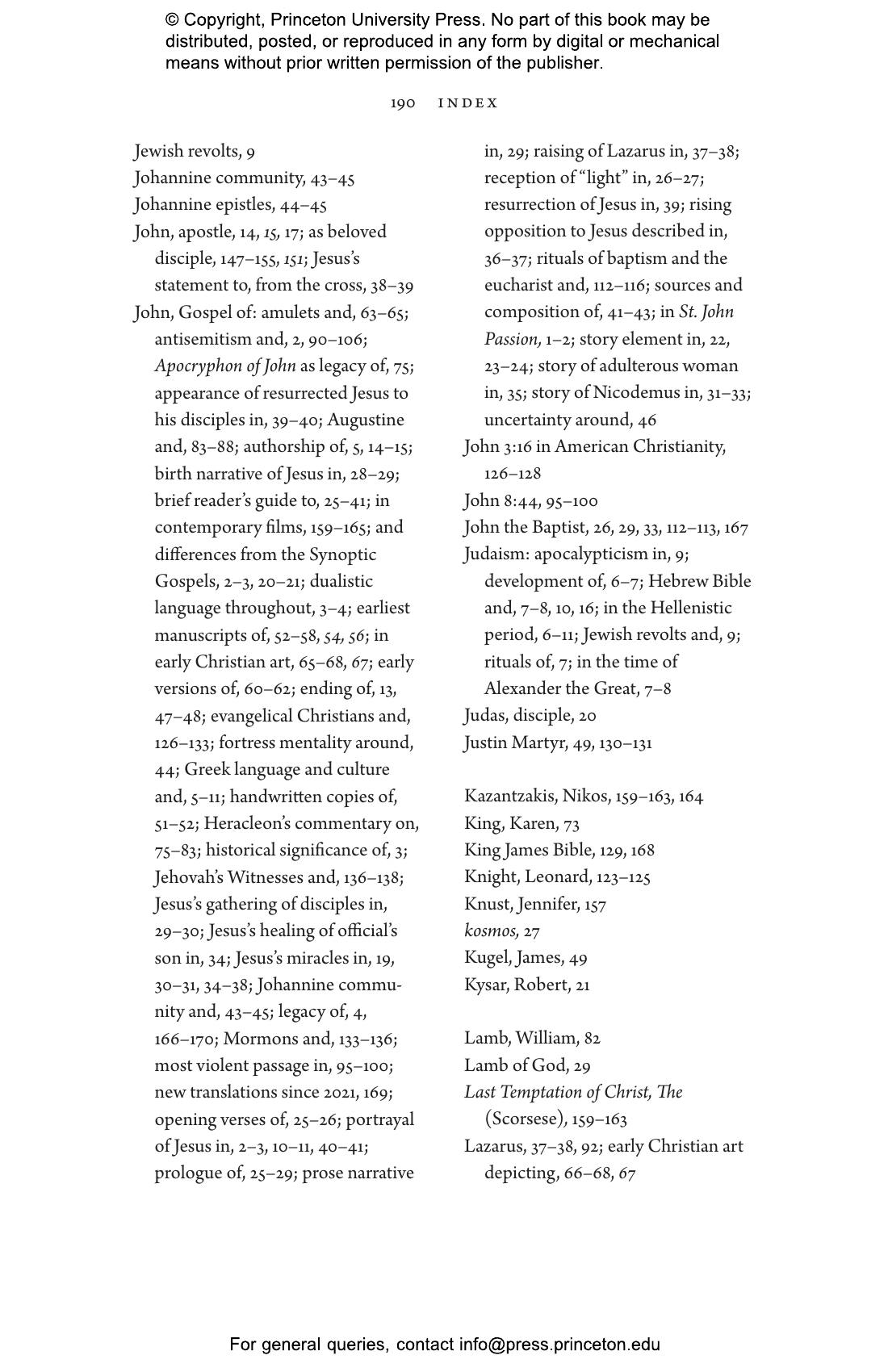 Haines-Eitzen sheds light on the book’s reception by early Christian gnostic and patristic commentators, its use in the Crusades and Reformation, its revered status among American evangelicals, and the many ways it has inspired novels, films, music, and art. The earliest papyrus fragment of an identifiably Christian Gospel is a fragment of John, and John is the only canonical Gospel that depicts Jesus as a savior who teaches openly about his divinity. Haines-Eitzen shows how John simultaneously carries a message of inclusion and intolerance, and how its story teaches us about the nature and enormous influence of scriptural religions.
