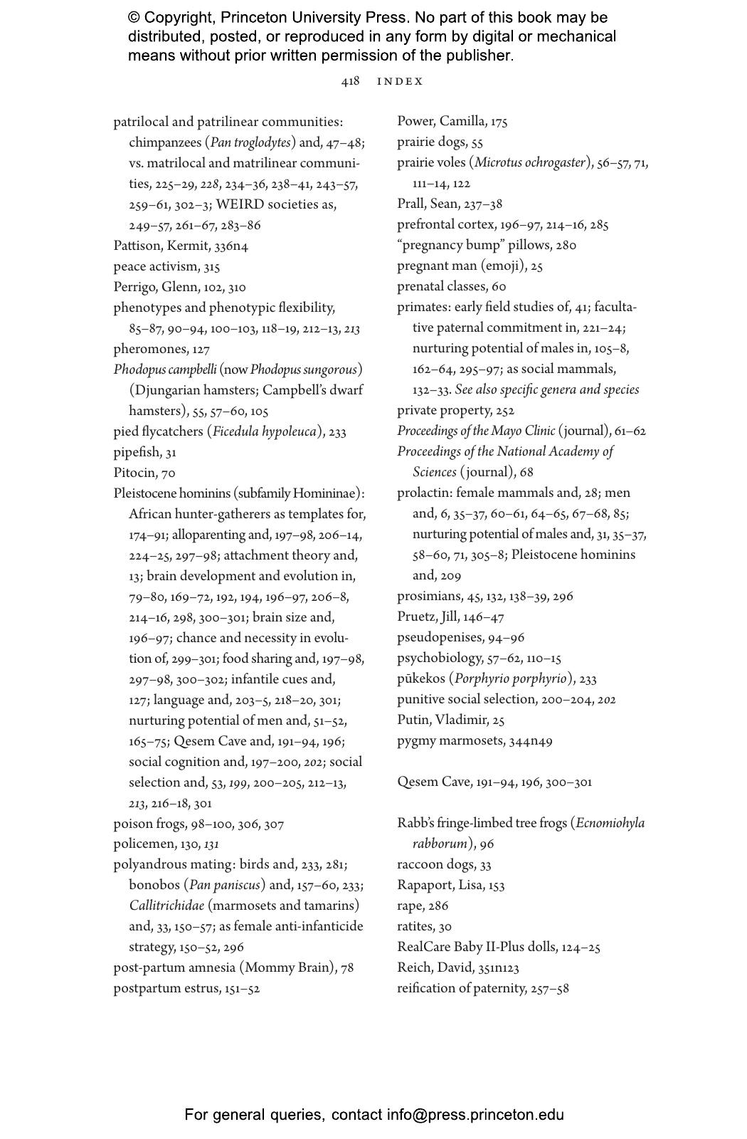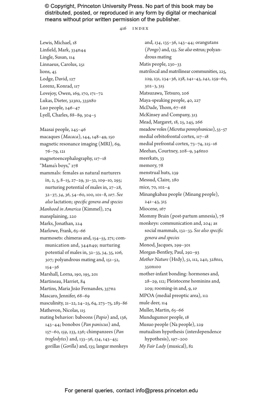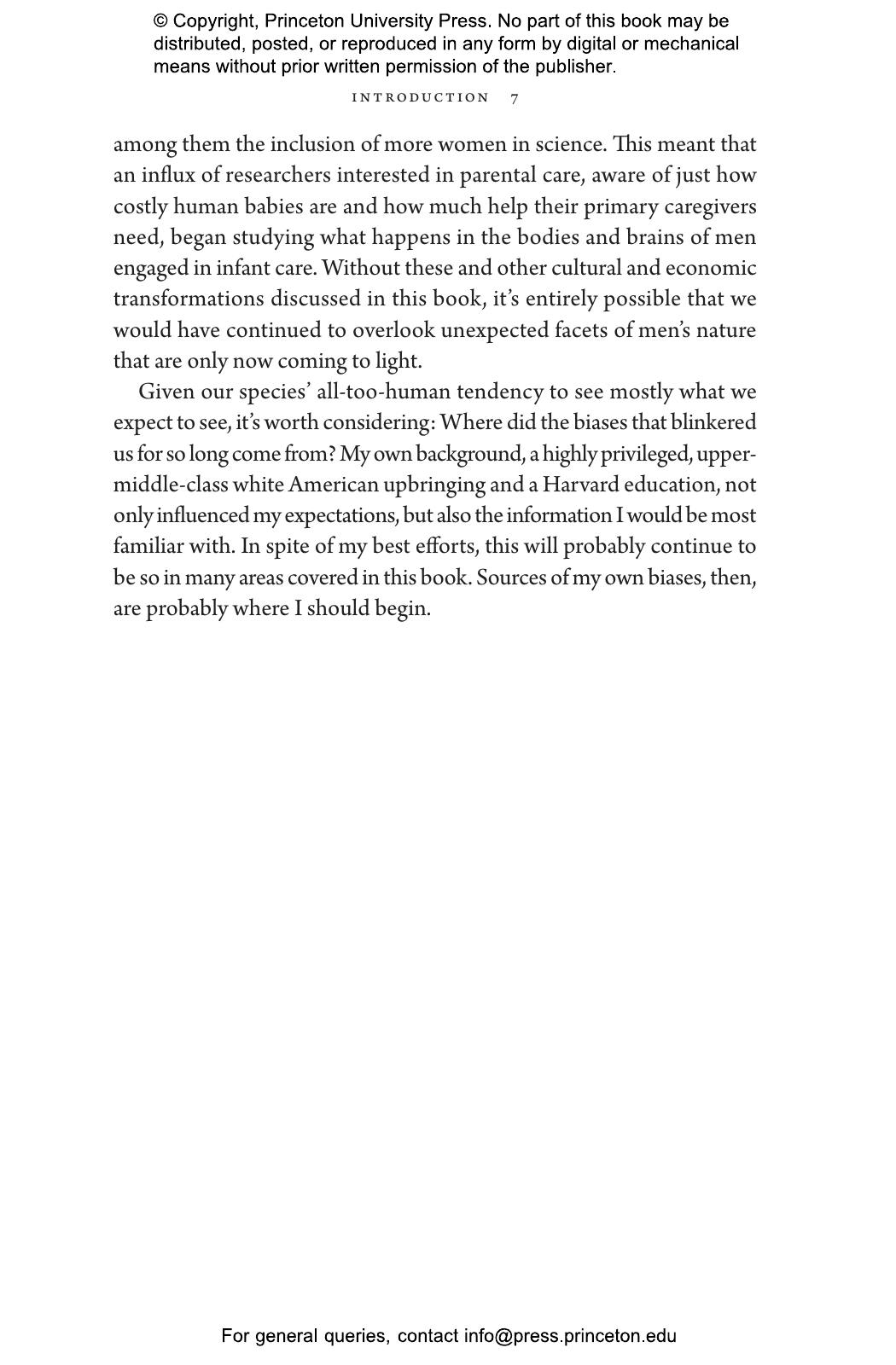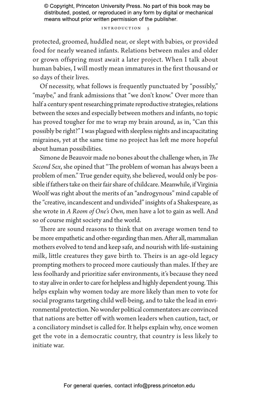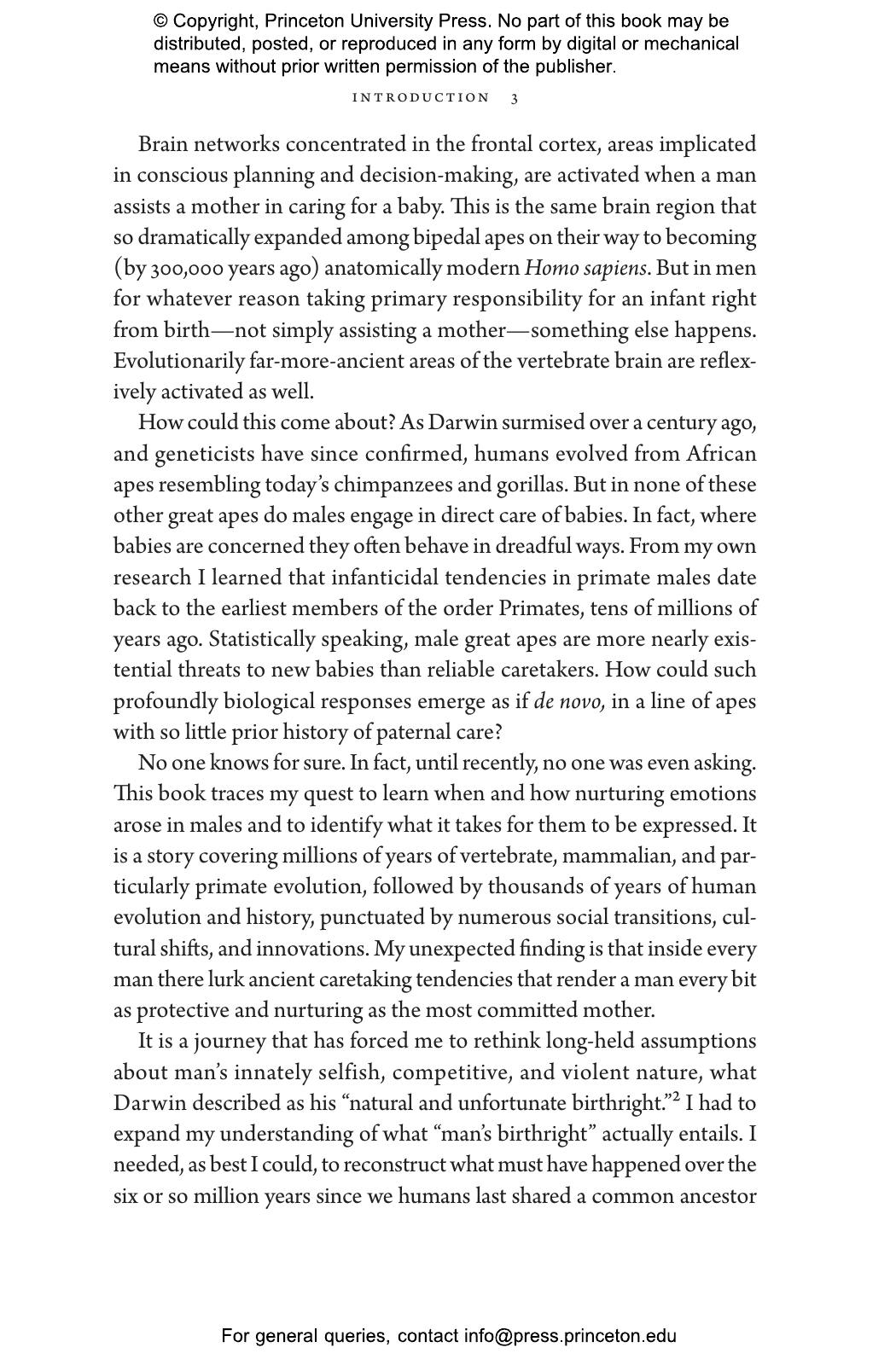 “Who better than Sarah Hrdy, known for her studies of motherhood, to delve into fatherhood. Men caring for babies or young children can be as tender and competent as women. Doing so transforms their brains to be more like the maternal brain. Hrdy’s timely point is that attempts to balance gender roles in the family by no means go against human nature.”—Frans de Waal, author of Different: Gender Through the Eyes of a Primatologist
