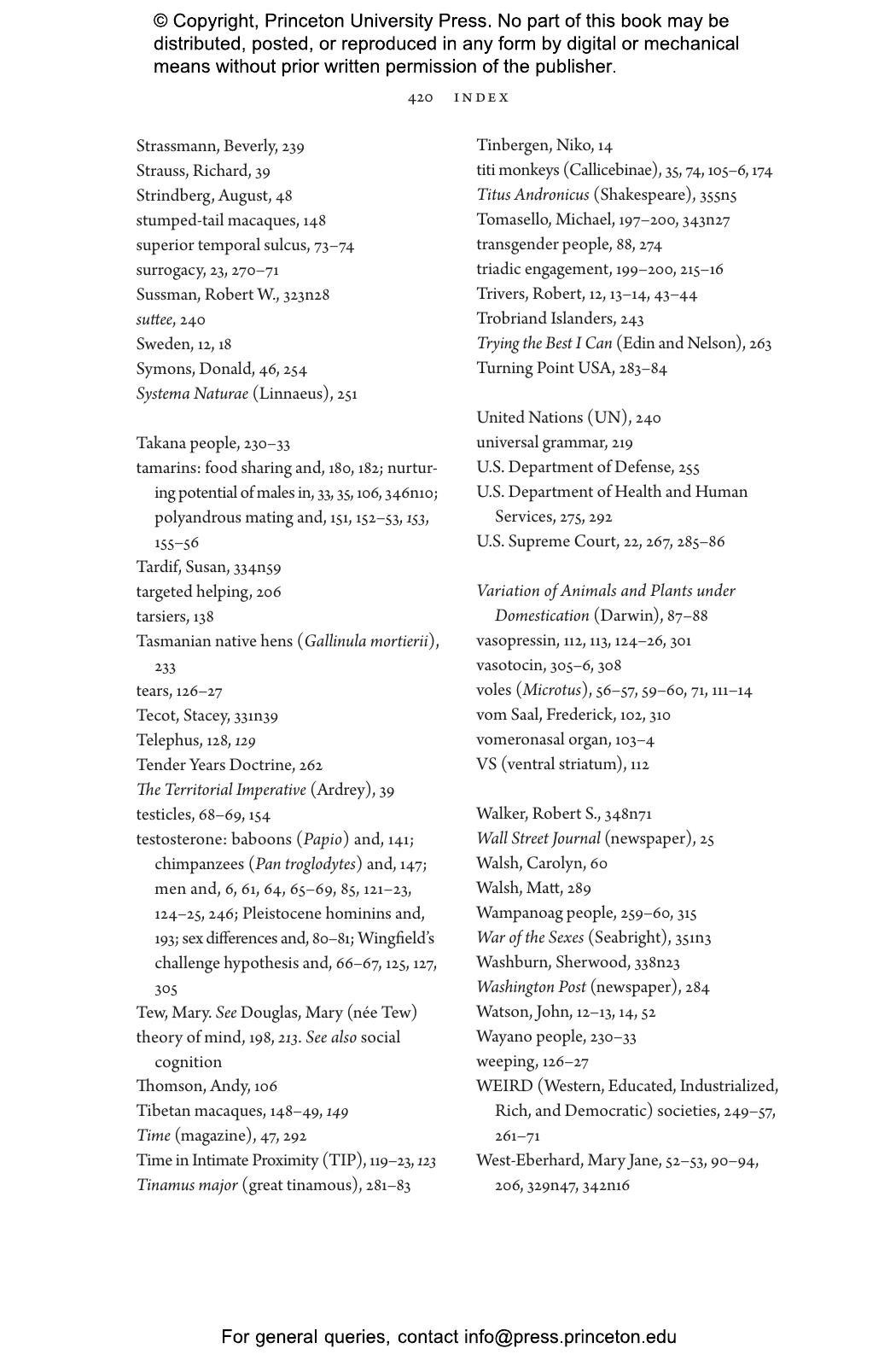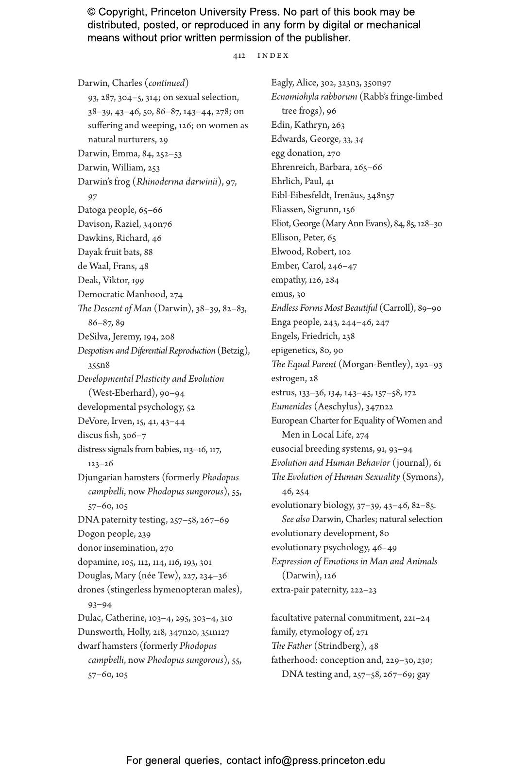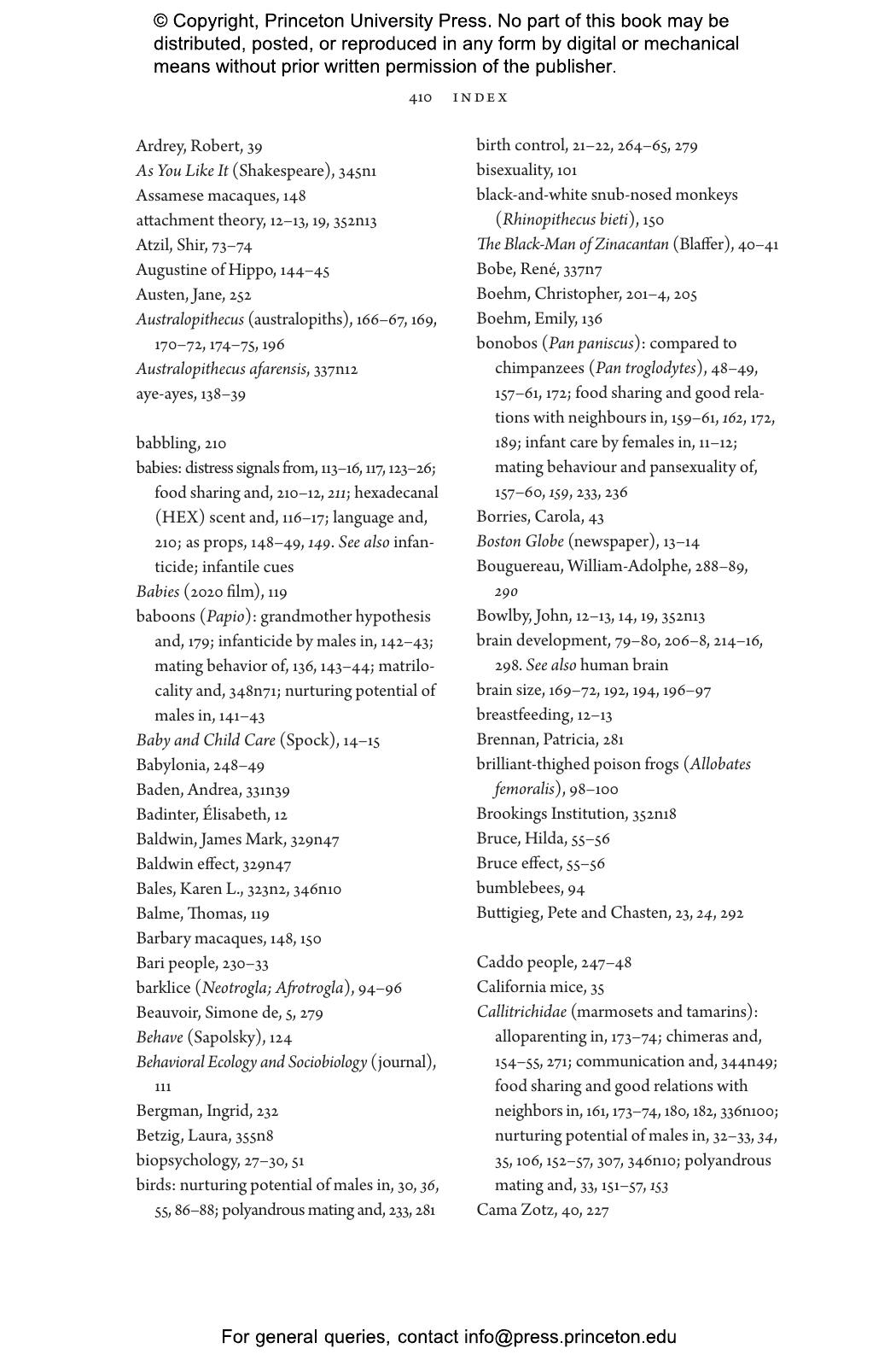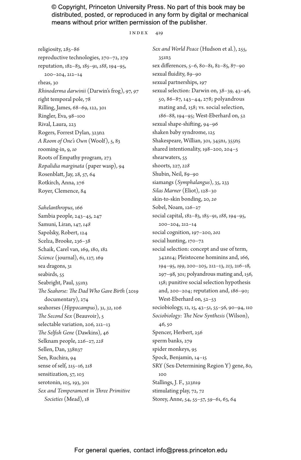 “Who better than Sarah Hrdy, known for her studies of motherhood, to delve into fatherhood. Men caring for babies or young children can be as tender and competent as women. Doing so transforms their brains to be more like the maternal brain. Hrdy’s timely point is that attempts to balance gender roles in the family by no means go against human nature.”—Frans de Waal, author of Different: Gender Through the Eyes of a Primatologist