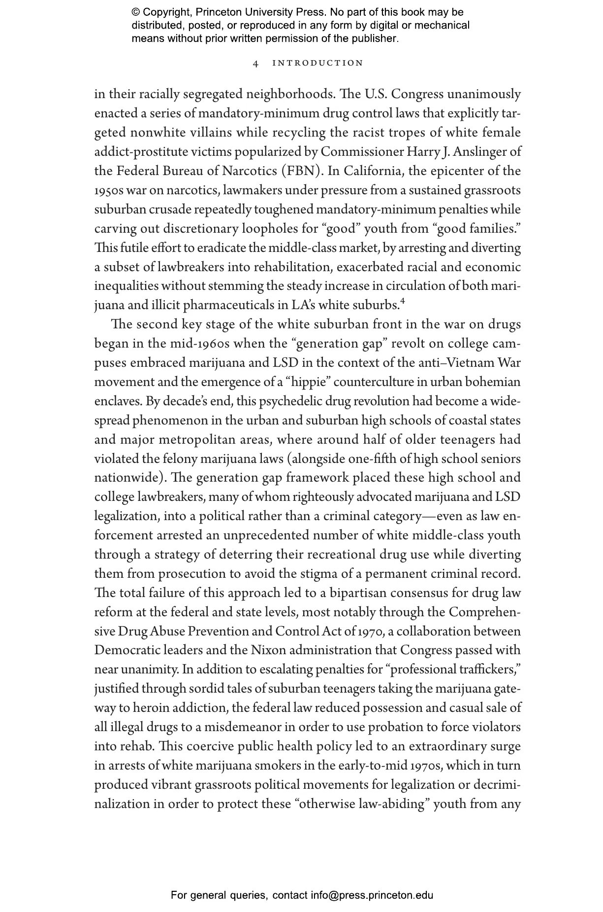 "A history of the war on drugs that plays out in ranch houses, high school parking lots, and courtrooms from Shaker Heights, to Westchester, to Orange County. . . . Rather than aiming to limit the harmful effects of the most addictive and potential deadly substances, Lassiter proposes, the war on drugs focused relentlessly on protecting white youth from the fictional perils of cannabis."鈥擟laire Potter, New Republic