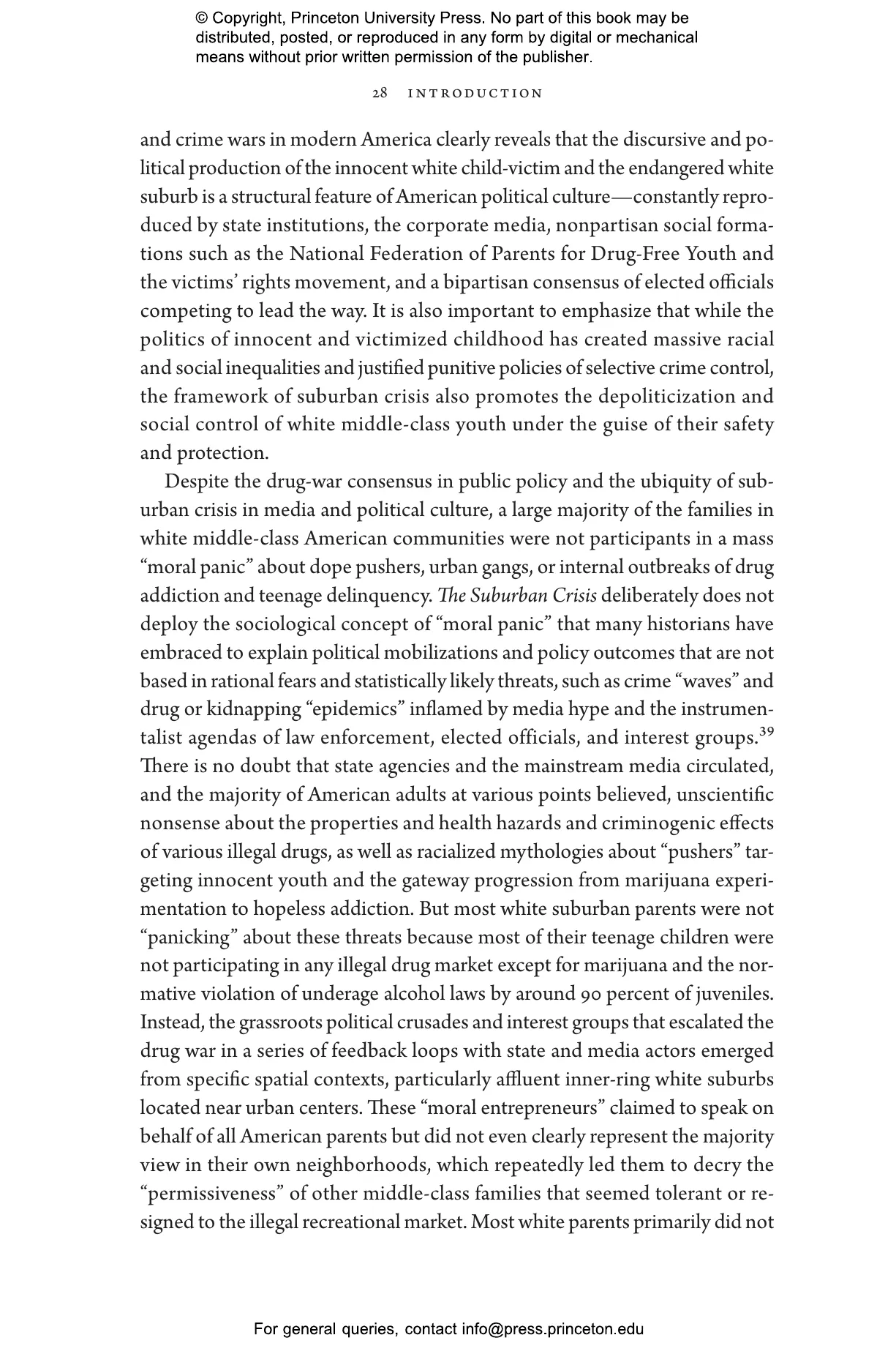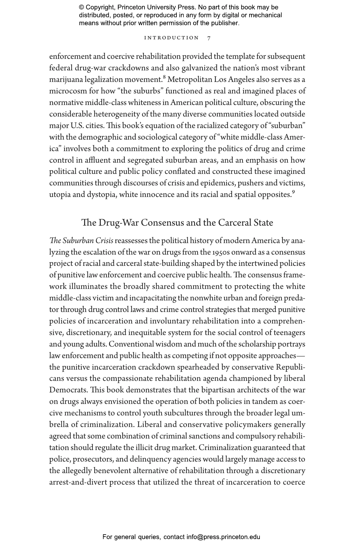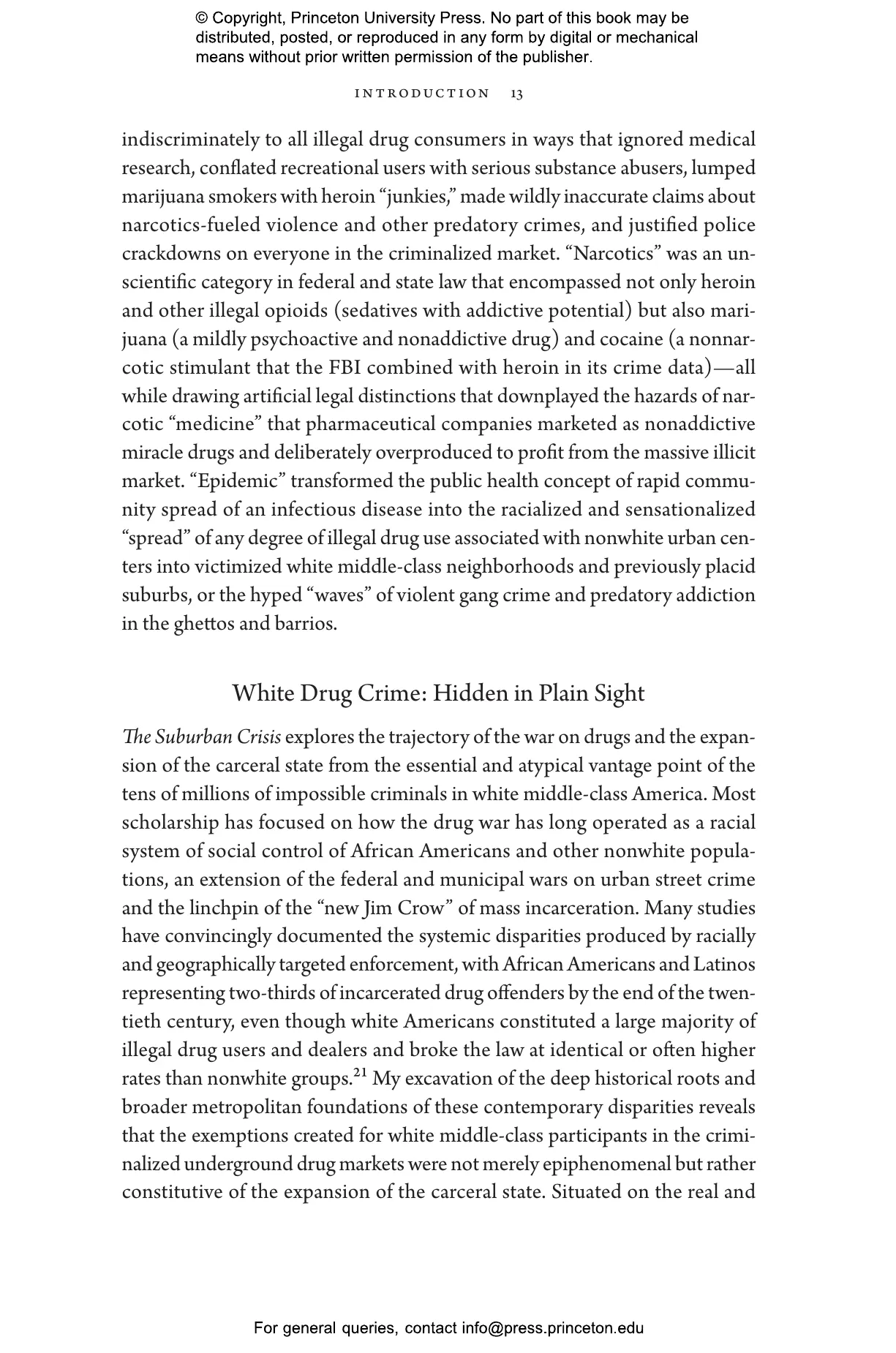 The Suburban Crisis reveals how the escalating drug war merged punitive law enforcement and coercive public health into a discriminatory system for the social control of teenagers and young adults, and how liberal and conservative lawmakers alike pursued an agenda of racialized criminalization.