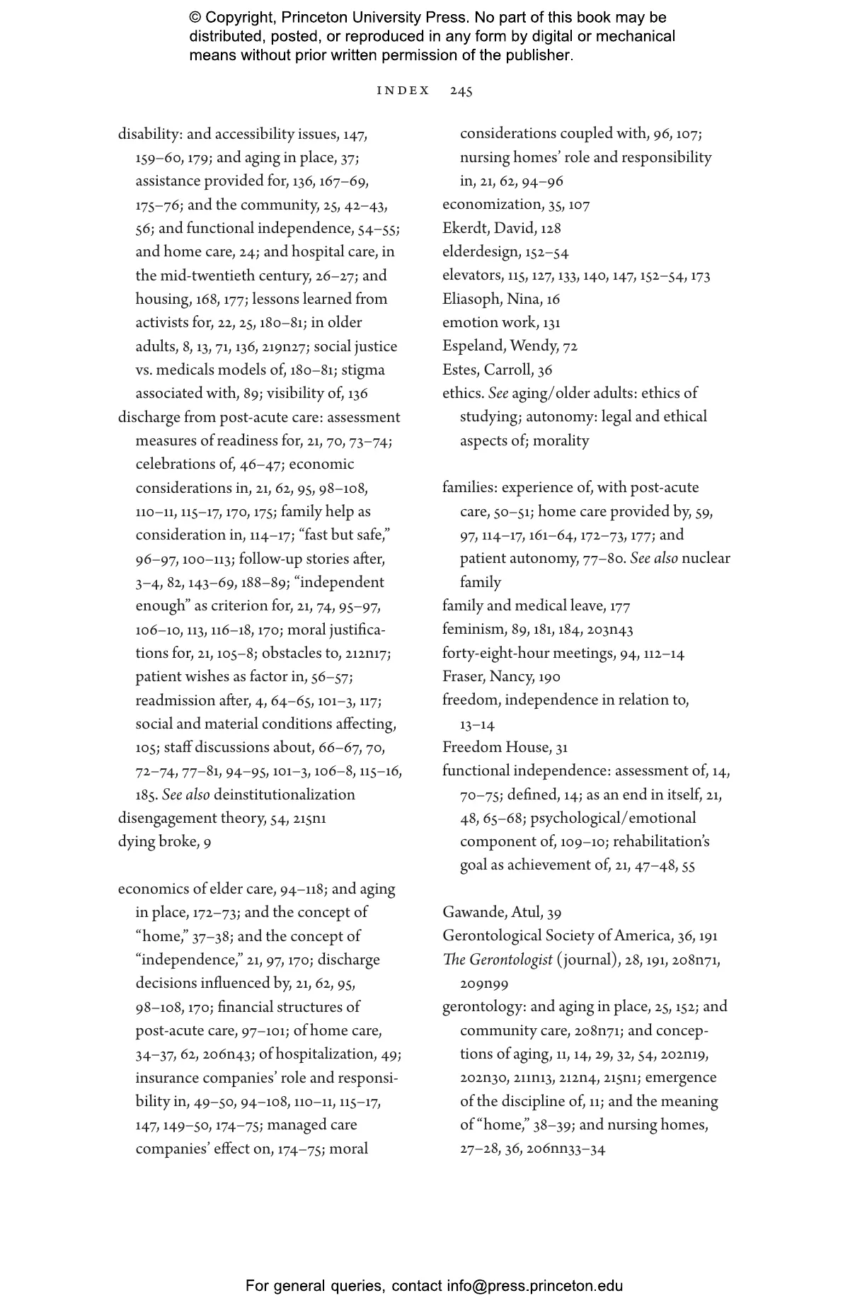 In twenty-first-century America, as people live longer than ever before, it鈥檚 taken for granted that older adults should be active and self-reliant. News stories describe nonagenarians who run marathons, reality shows feature attractive older women competing for the love of a widowed bachelor, and policymakers encourage aging 鈥渋n place鈥 rather than in a nursing home. In Chasing Independence, Guillermina Altomonte turns a critical eye on these expectations and asks what happens when independence becomes the yardstick by which we measure the quality of old age. Drawing on ethnographic observations in a skilled nursing facility in New York City, interviews with older adults and healthcare workers, and historical materials, she shows how independence operates as an unquestioned standard for medical assessments, allocation of services, and even as a way to determine an older person鈥檚 identity and self-worth.