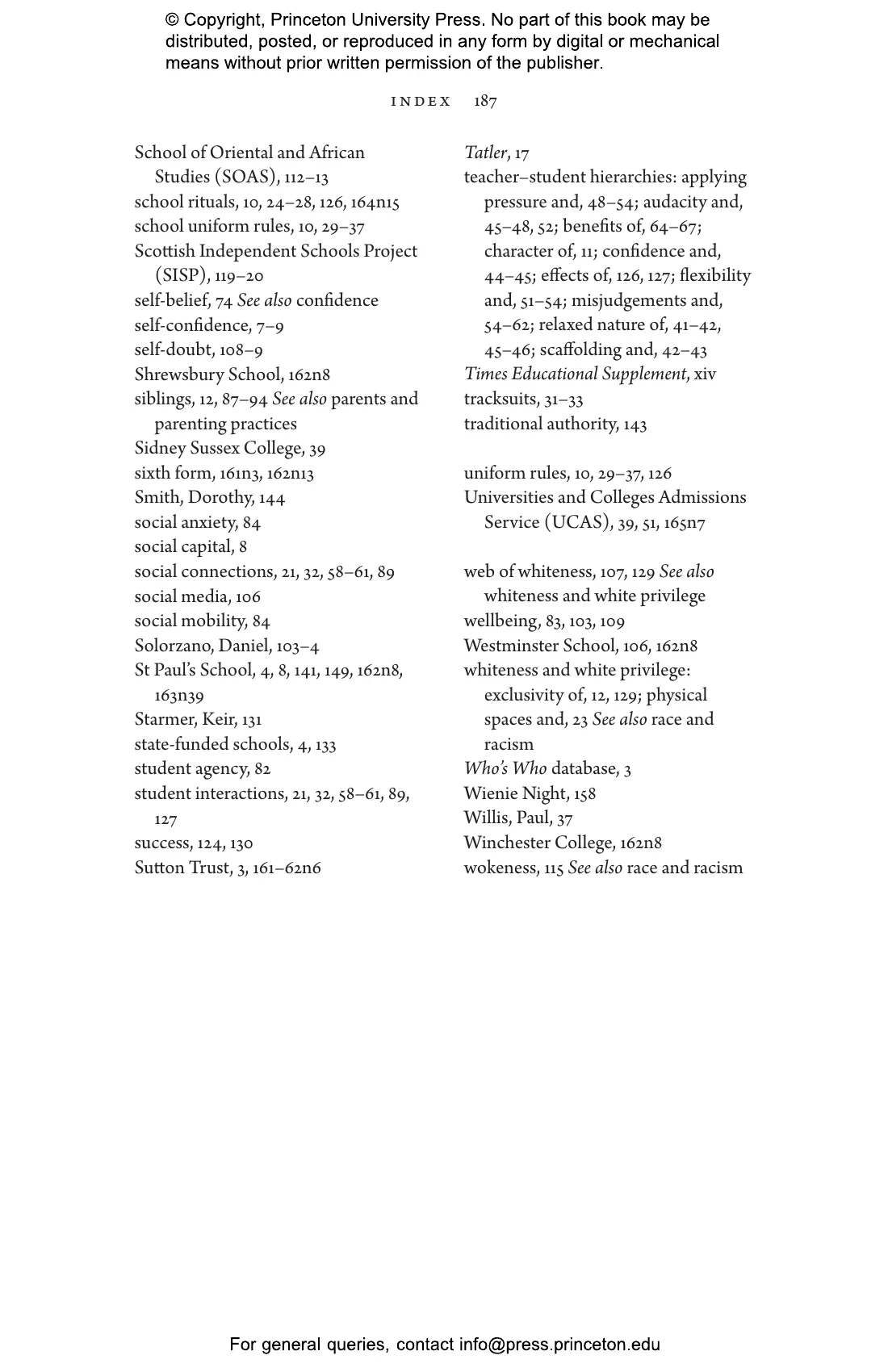 Taylor finds that elite schools provide a forgiving, flexible and exclusive training ground, enabling students to push boundaries, bend rules and negotiate with those in authority. She argues that this ability to navigate elite spaces with confidence鈥攚hich she conceptualises as 鈥渁udacity鈥濃攊s a carefully cultivated form of privilege that is frequently mistaken for merit. Behind the formal fa莽ade of architecture, traditions and rituals lies a messy web of everyday interactions through which students learn to assert themselves without fear of consequence.