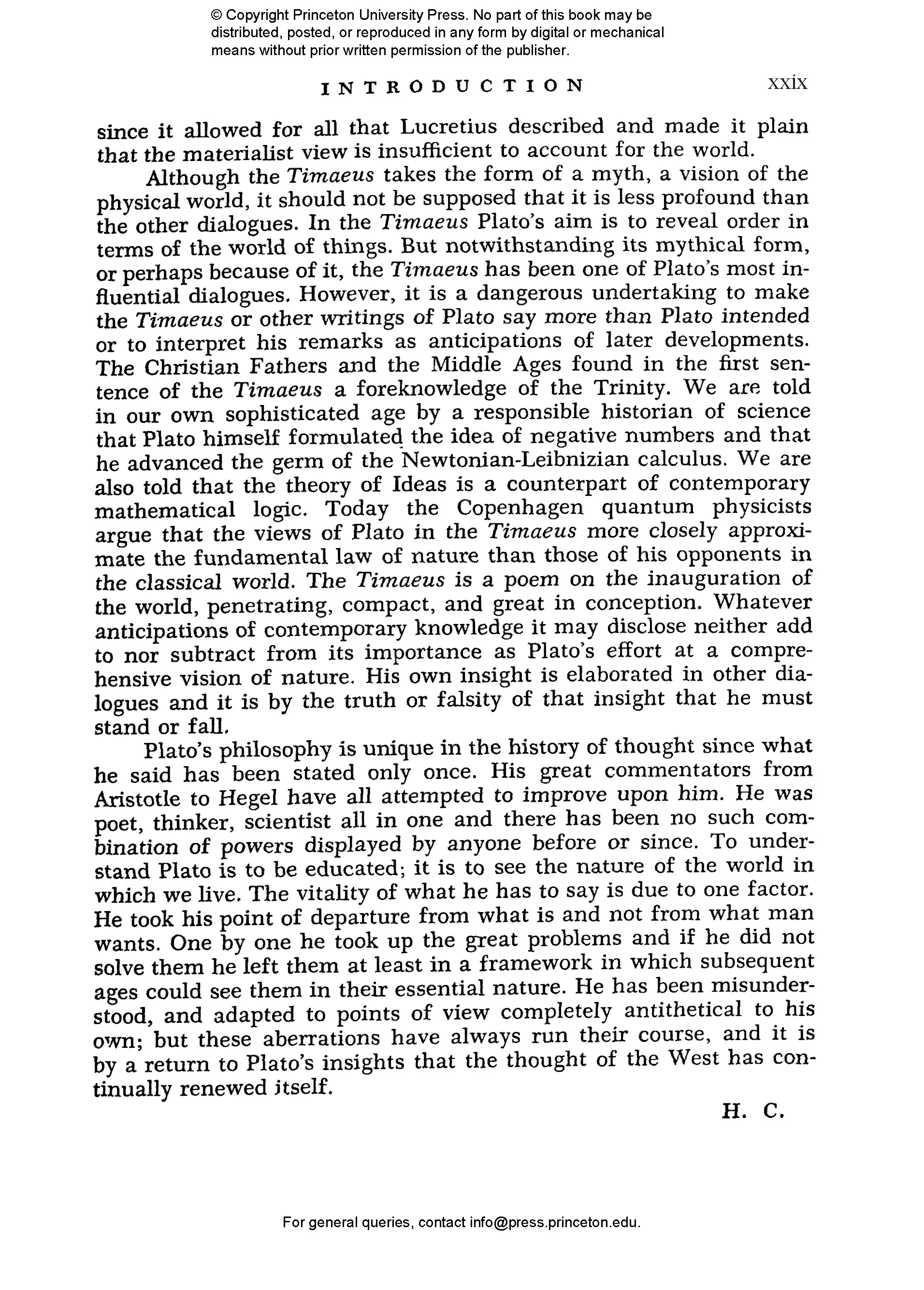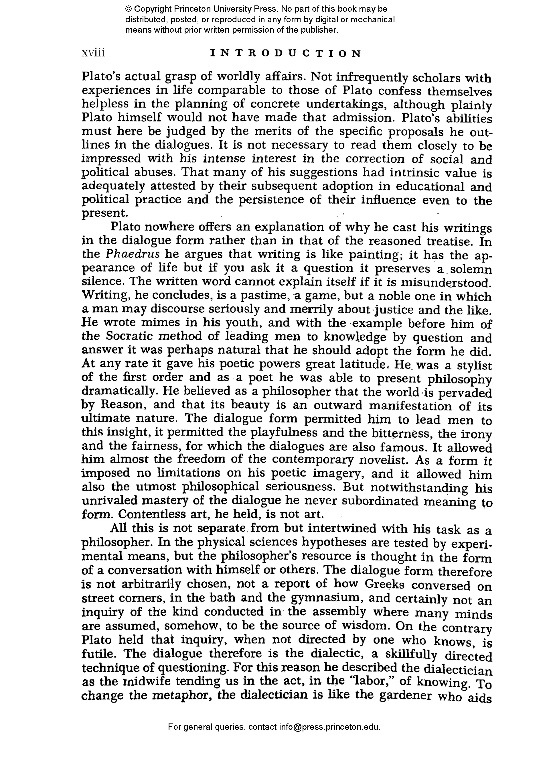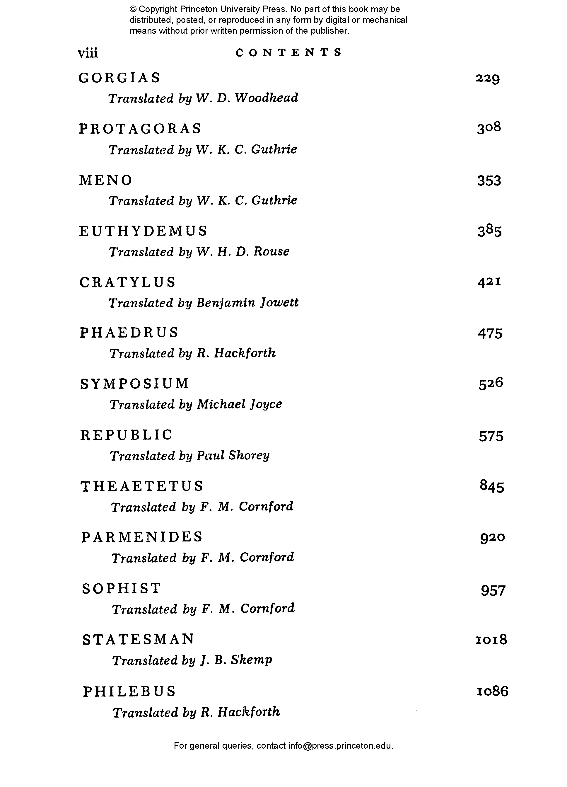 Edith Hamilton (1867–1963) was perhaps the most famous and influential classicist of the twentieth century. Her bestselling Mythology remains a standard version of the stories of the ancient world. Huntington Cairns (1904–1985) was a writer and lawyer who worked at different times for the U.S. Treasury, the National Gallery of Art in Washington, DC, and Johns Hopkins University. Rebecca Newberger Goldstein is a philosopher and novelist whose books include Plato at the Googleplex: Why Philosophy Won’t Go Away and Thirty-Six Arguments for the Existence of God: A Work of Fiction.
