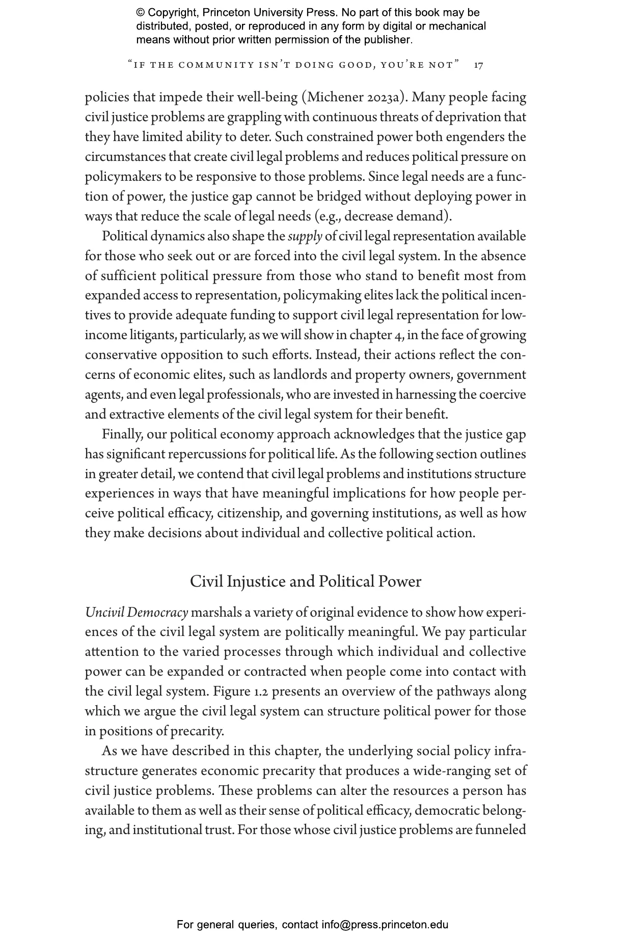 Drawing on eye-opening qualitative evidence and a wealth of historical and survey data, Uncivil Democracy explains why collective organizing holds the greatest promise for altering the systems that create civil legal problems and exercising the political power necessary for meaningful change.