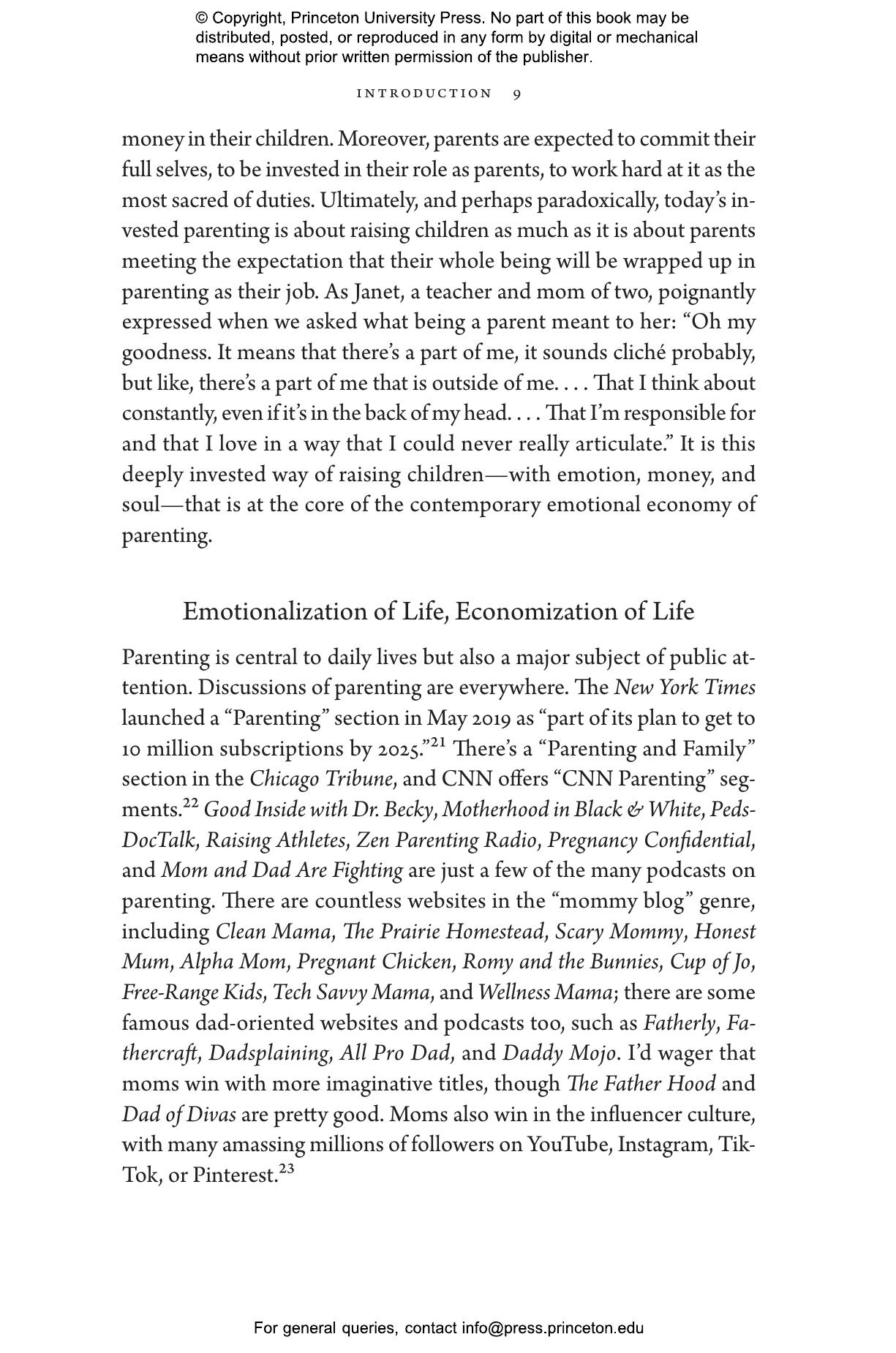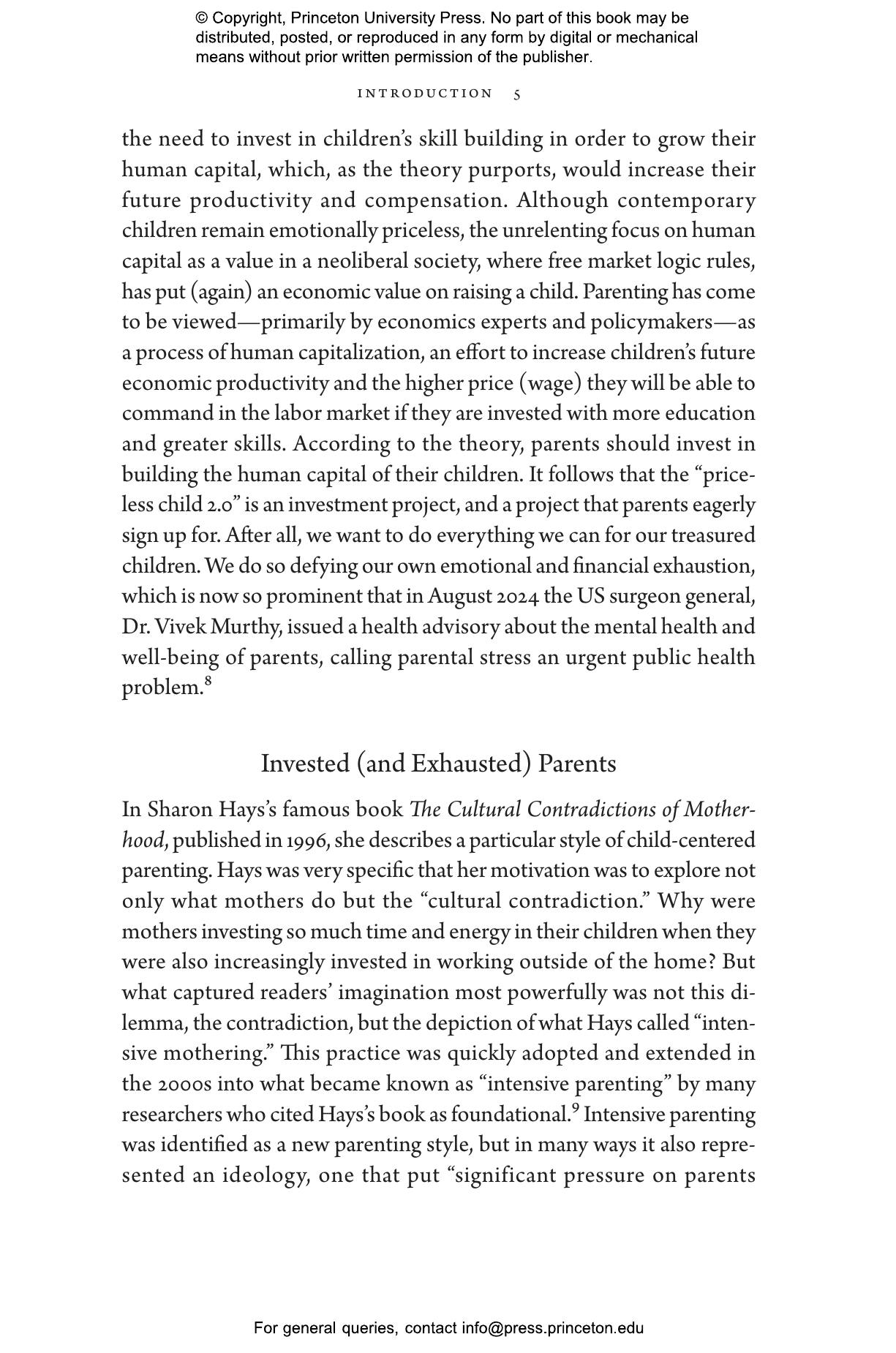 “Why has parenting, and especially mothering, become so fraught? To answer this question, Bandelj uncovers an unexpected marriage between conservative economic ideas and a turn to emotions that has trapped parents in an ever-tightening vise. Drawing on an impressive array of research, from financial data to in-depth interviews, this rigorously argued and accessibly written contribution is likely to become the definitive account of contemporary parenting. A must-read, not just for social scientists and policymakers, but parents themselves.”—Juliet Schor, author of Four Days a Week: The Life-Changing Solution for Reducing Employee Stress, Improving Well-Being, and Working Smarter