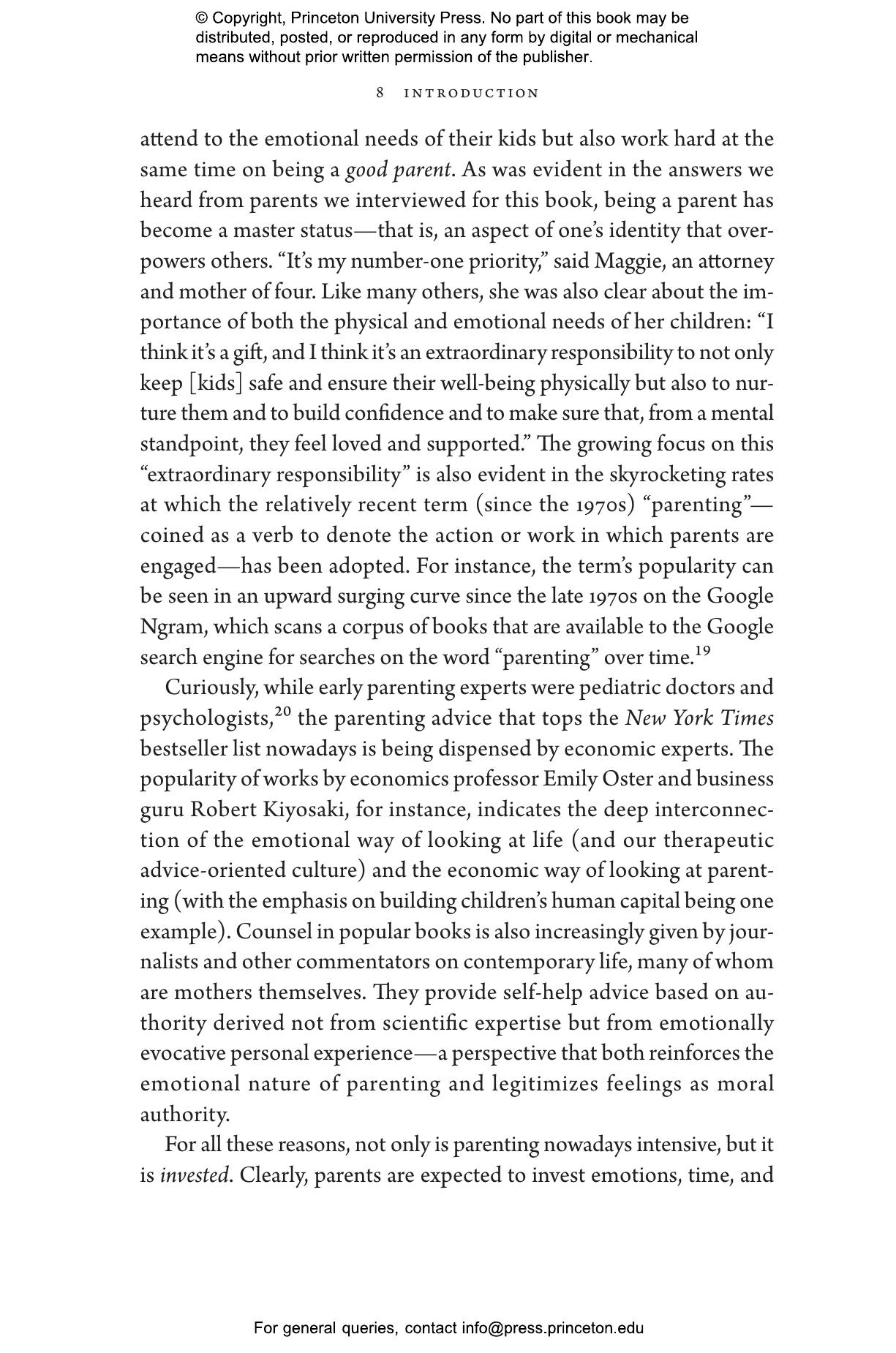 Parents are exhausted. When did raising children become such all-consuming, never-ending, incredibly expensive, and emotionally absorbing effort? In this eye-opening book, Nina Bandelj explains how we got to this point—how we turned children into financial and emotional investments and child-rearing into laborious work. At the turn of the twentieth century, children went from being economically useful, often working to support families, to being seen by their parents as vulnerable and emotionally priceless. In the new millennium, however, parents have become overinvested in the emotional economy of parenting.