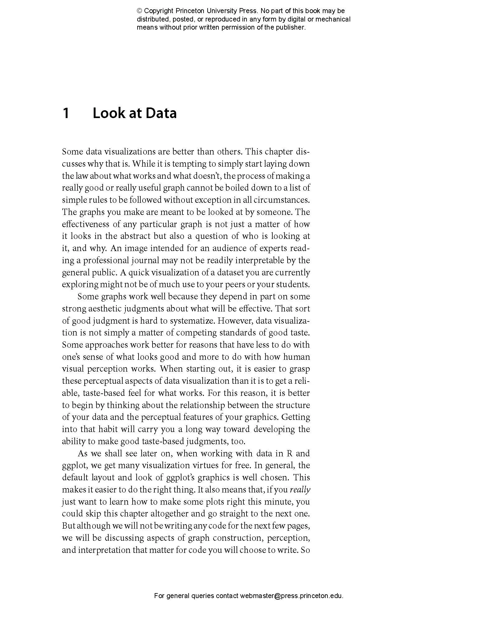 This book provides students and researchers a hands-on introduction to the principles and practice of data visualization. It explains what makes some graphs succeed while others fail, how to make high-quality figures from data using powerful and reproducible methods, and how to think about data visualization in an honest and effective way.