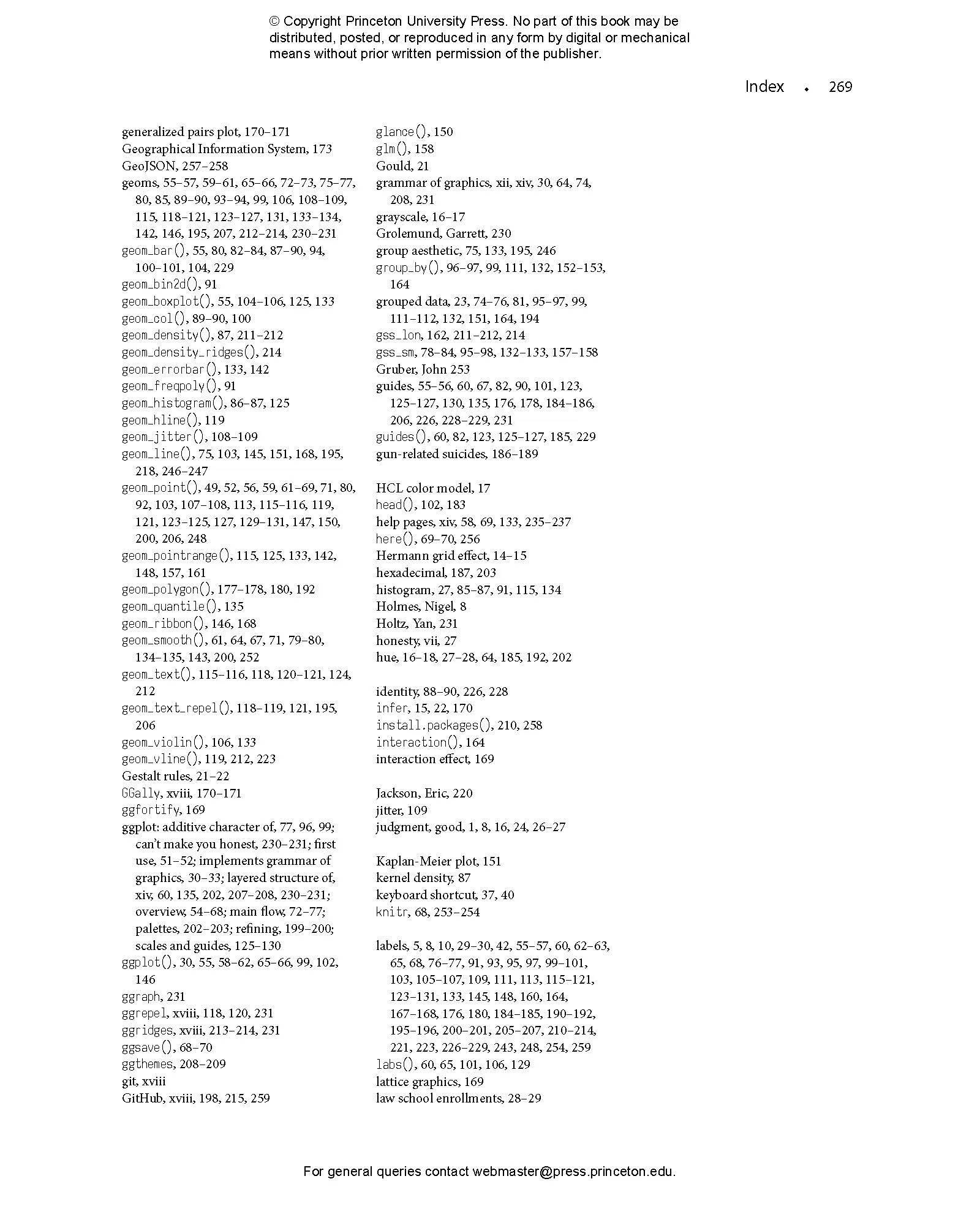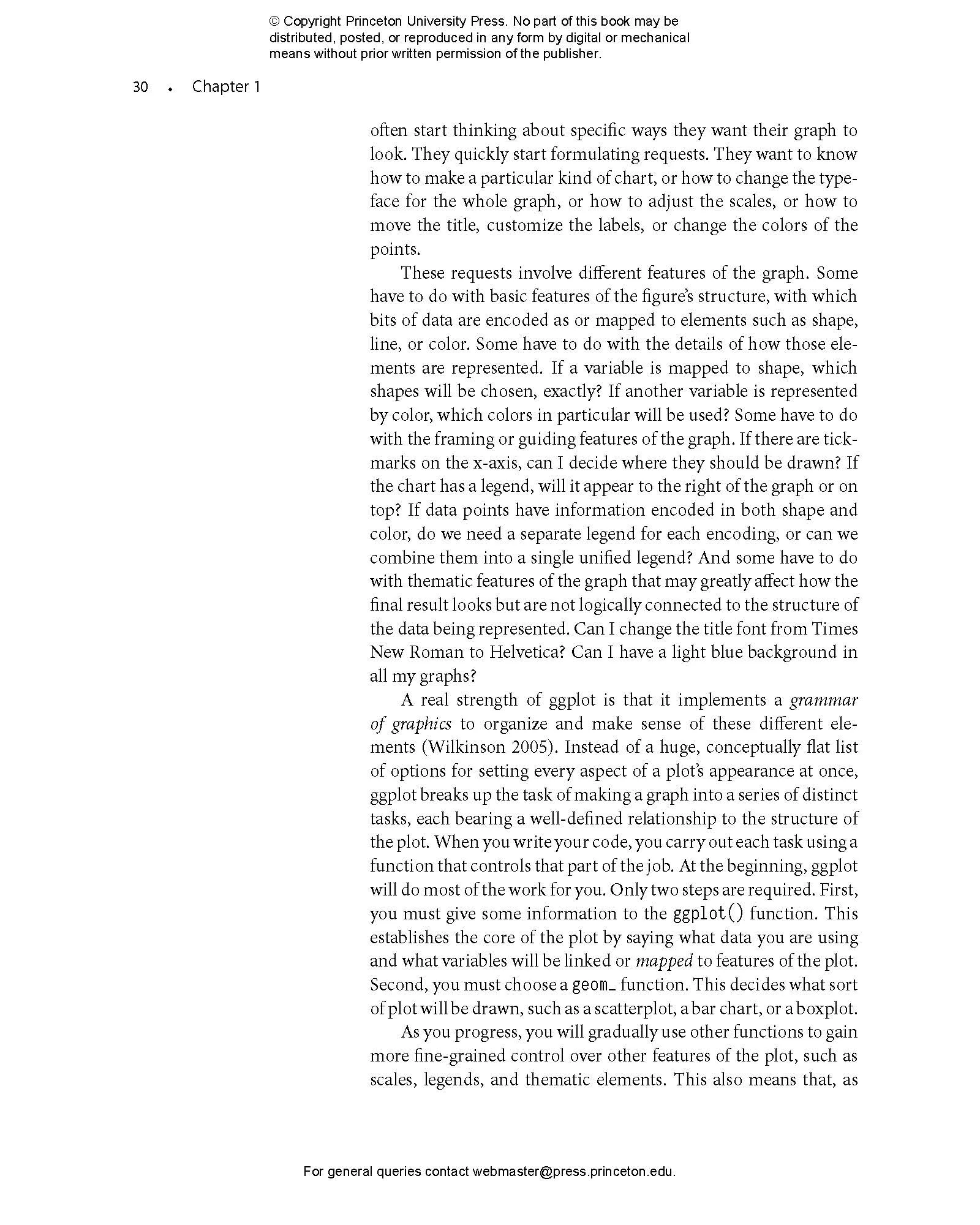 - Provides hands-on instruction using R and ggplot2