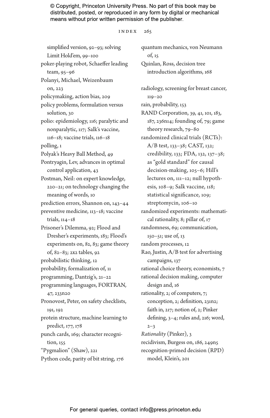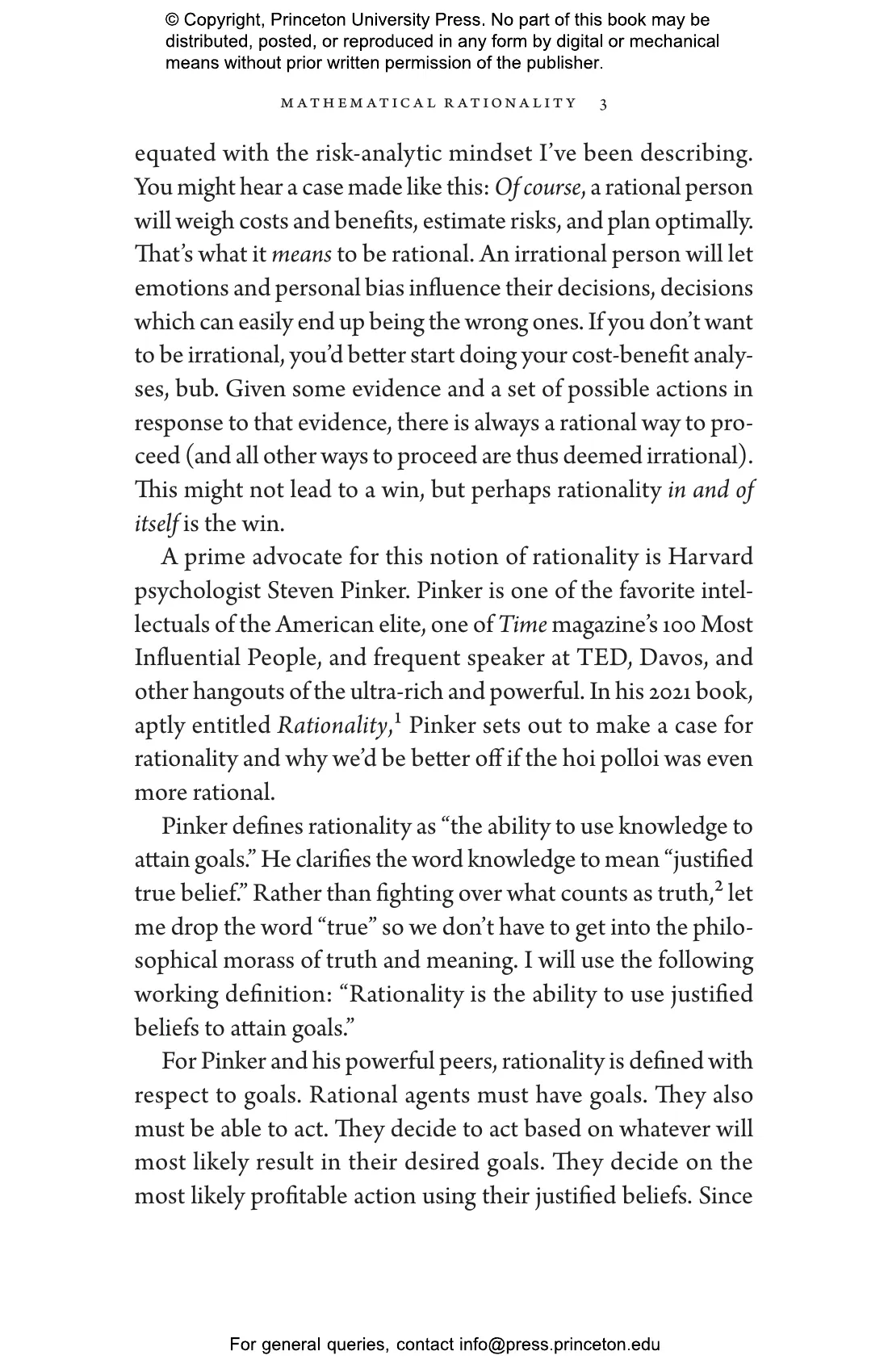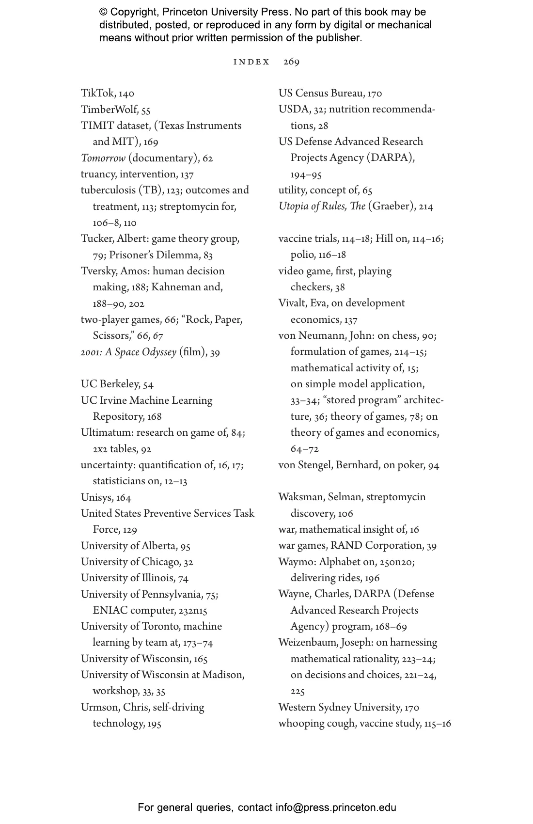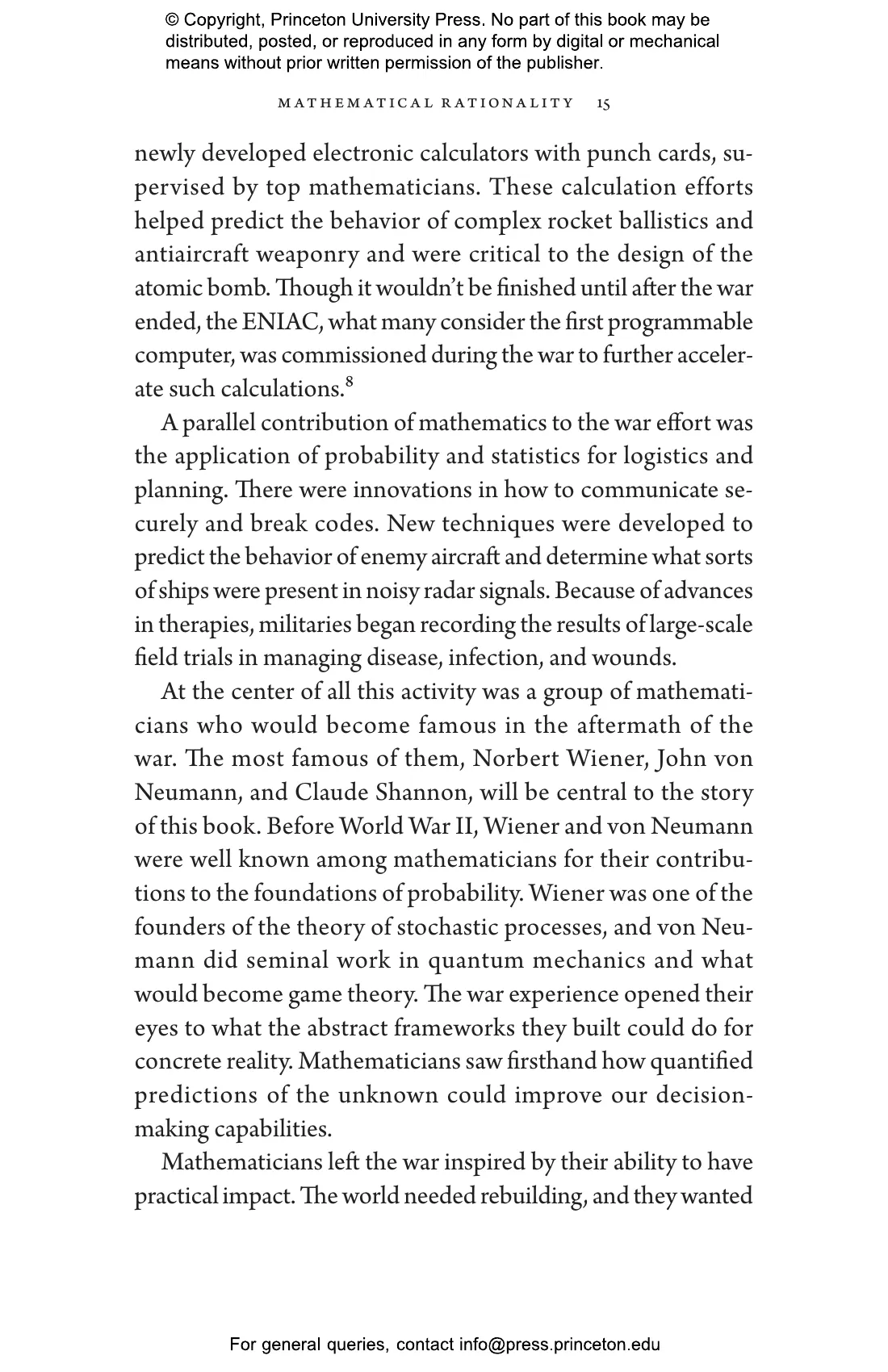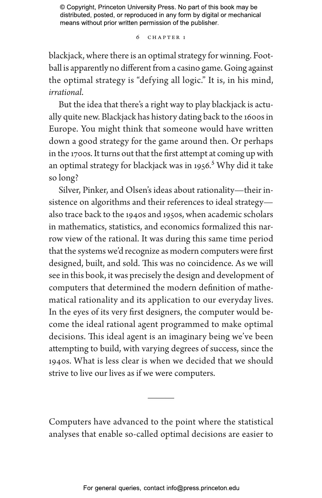 While mathematical rationality has proven valuable in accelerating computers, regulating pharmaceuticals, and deploying electronic commerce, it fails to solve messy human problems and has given rise to a view of a rational world that is not only overquantified but surprisingly limited. Recht shows how these mathematical methods emerged from wartime research and influenced fields ranging from economics to health care, drawing on illuminating examples ranging from diet planning to chess to self-driving cars.