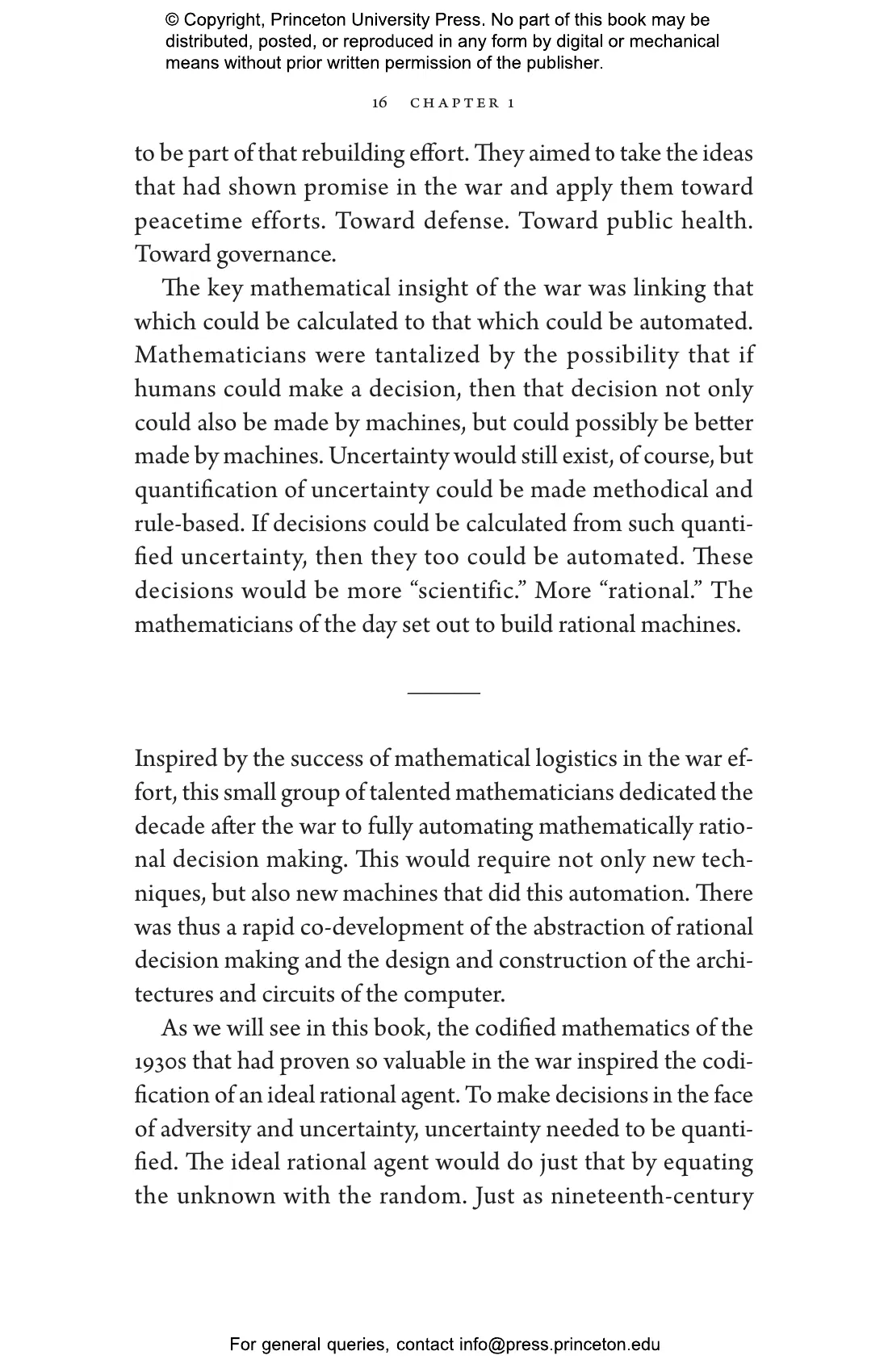 “Our world is speedily turning upside down as the technology maelstrom reshapes everything to please our computer overlords. Benjamin Recht gives us a stylish and gripping account of the key ideas and personalities driving the ‘rationality’ revolution that exposes everything to computer-driven decision. A sparkling reveal of the inner logic transforming so many aspects of our daily lives.”—David L. Donoho, Stanford University