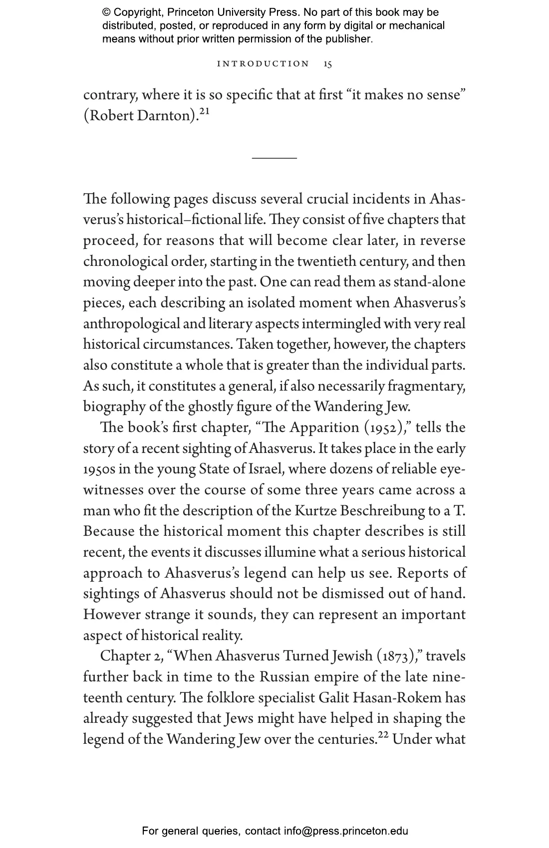 According to a mysterious pamphlet published in 1602, the Wandering Jew was a real person, named Ahasversus, who was cursed by Jesus to eternal wandering after refusing to help him as he was led to his crucifixion. For more than four hundred years, many otherwise reliable witnesses have claimed to have seen the Wandering Jew. Moving in reverse chronological order, I, Wandering Jew explores crucial episodes in the story of this figure. We meet an unforgettable, Wandering Jew鈥搇ike character who appeared out of nowhere in Israel in the 1950s; a nineteenth-century novelist who was the first Jew to favorably describe the Wandering Jew; an eighteenth-century German scholar who saw the Wandering Jew emerging from a devastating fire; and the man who likely inspired the 1602 pamphlet.