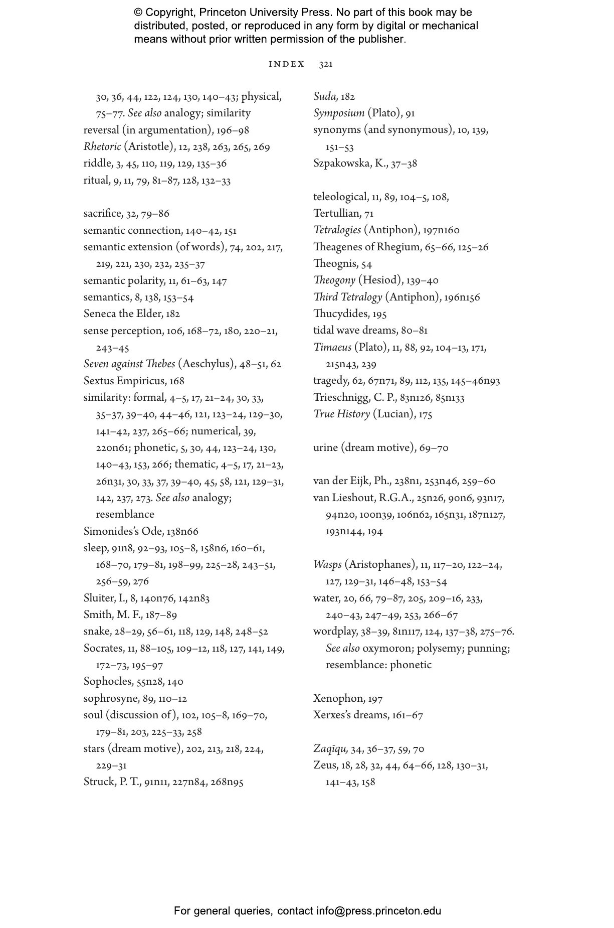 Long before Freud, dreams and how to make sense of them fascinated ancient thinkers. In The Ancient Interpretation of Dreams, Mirjam Kotwick traces a continuous intellectual practice of dream interpretation across a range of ancient Greek texts, including those from Homer, Aeschylus, Herodotus, Antiphon, the Hippocratic doctors, Plato, and Aristotle. In these works, dreams signify meaning in indirect, distorted, figurative, and metaphorical ways. The authors employ what Kotwick terms the 鈥渉ermeneutics of similarity鈥 to uncover the message of a dream by identifying (obvious or nonobvious) similarities between its literal expression and its hidden meaning. This method of interpretation remained consistent, whether authors understood dreams as messages from the gods or as results of physiological processes within the dreamer鈥檚 body.