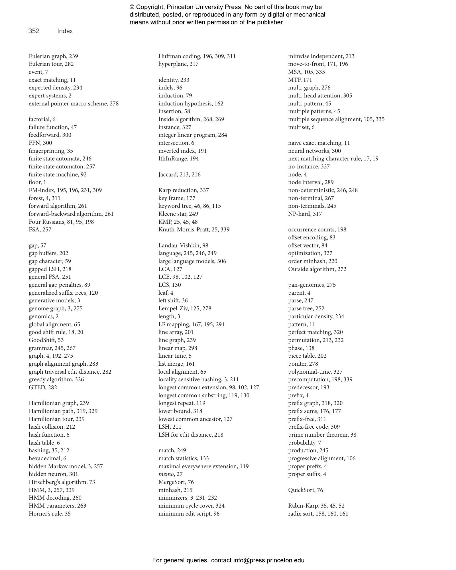 - Covers data structures such as suffix trees, suffix arrays, wavelet trees, the Burrows-Wheeler transform, the FM index, and compressed bit vectors