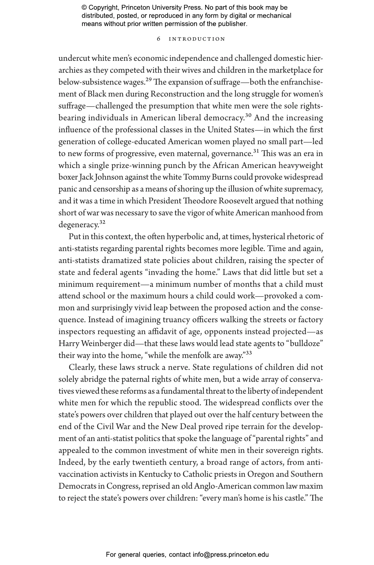 Bowes shows how, by the turn of the century, those disparate voices had coalesced into national conservative movements. Anti-vaccinationists, alternative medical practitioners, and parents who opposed compulsory school medical exams joined forces to form the National League for Medical Freedom. Deciding a case brought by conservative Catholic lawyers, the Supreme Court declared parental rights a 鈥渇undamental liberty鈥 protected by the Fourteenth Amendment. And the Sentinels of the Republic, a conservative citizen鈥檚 lobby, mobilized a campaign to defeat the proposed federal Child Labor Amendment, bringing together pro-family and free-market politics with far-reaching consequences.