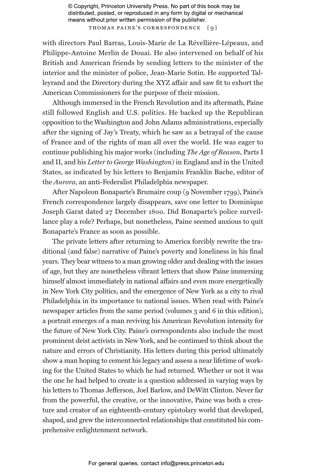 Spanning the years 1765 to 1808, this volume brings together Paine’s correspondence with such figures as Benjamin Franklin, Thomas Jefferson, George Washington, and Robert Morris. These letters reveal his deep engagement with diverse Enlightenment networks and his views on topics ranging from politics and science to religion and marriage. Commentary by the editors provides invaluable historical context.
