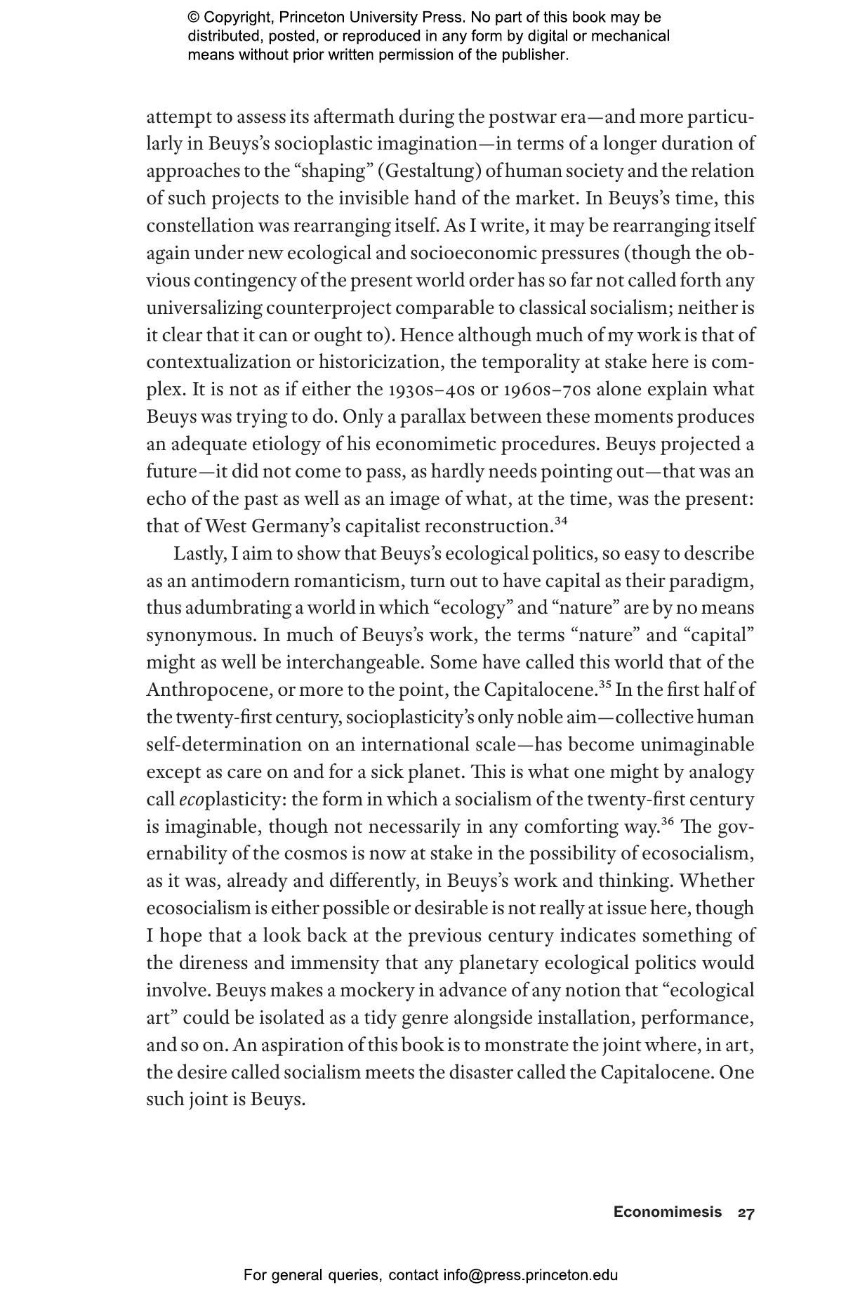 By putting Beuys in the context of Germany鈥檚 postwar recovery, Spaulding shows that the artist鈥檚 superimposed biological, political, and economic metaphors offered a powerful way to think about the trajectory of human freedom, the place of art in capitalist modernity, and the possibility of an ecological aesthetics. At the same time, his oeuvre鈥檚 disquieting echoes of the Nazi past suggest that not everything could be reconciled in what Beuys called 鈥渟ocial sculpture.鈥