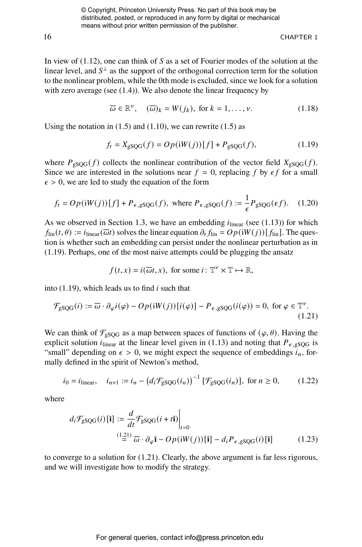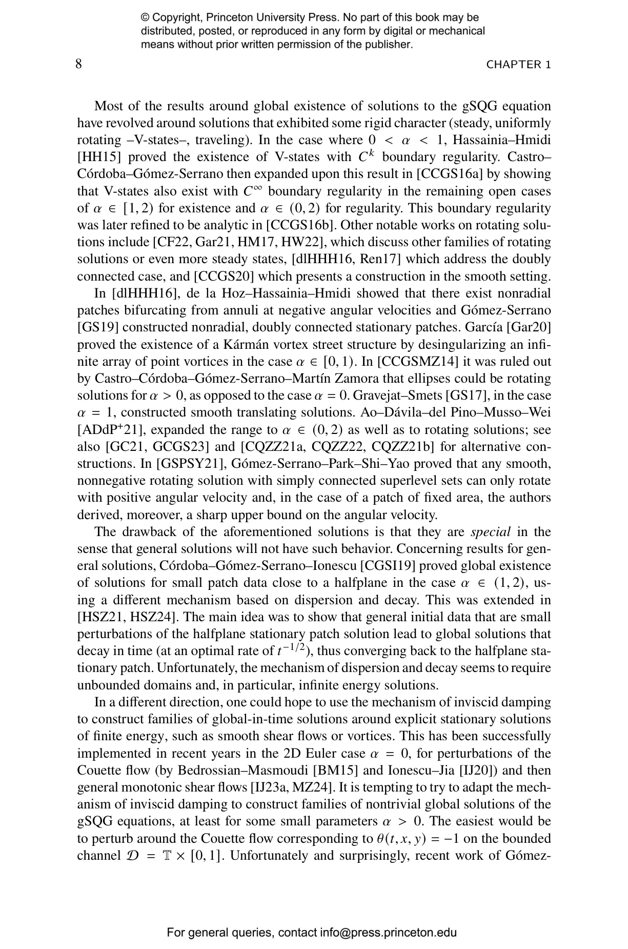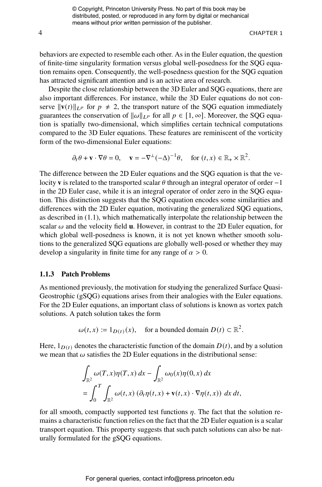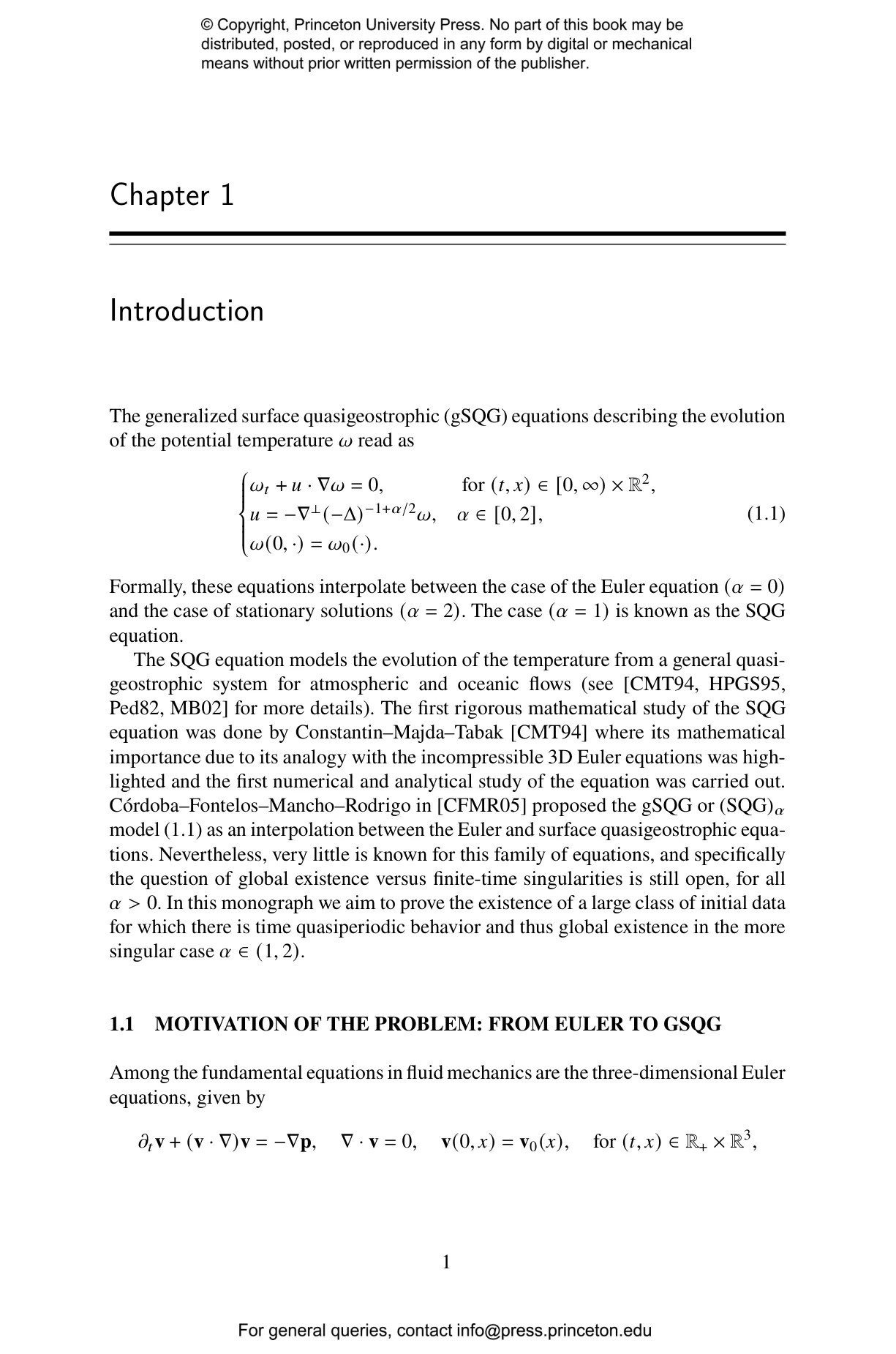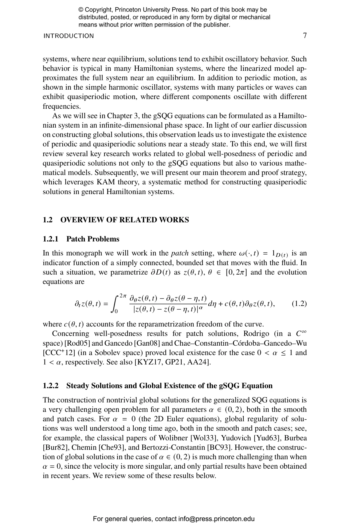 The book combines techniques from KAM theory, a Nash-Moser iteration scheme, and pseudodifferential calculus, and provides tools that extend beyond the specific SQG context and may prove useful for other evolution equations. Specifically, the authors establish the existence of quasiperiodic patch solutions for the generalized Surface Quasi-Geostrophic (SQG) equation across the parameter range $\alpha \in (1,2)$, in a neighborhood of the disk solution. These solutions exist globally in time without developing singularities, which sheds light on an important question about the behavior of geophysical fluid models. This work provides new insights into global dynamics in a mathematically challenging regime where standard perturbative methods are insufficient. And the techniques developed here offer potential applications to other evolution equations in mathematical physics, making this a valuable resource for researchers in partial differential equations, fluid dynamics, and related fields.