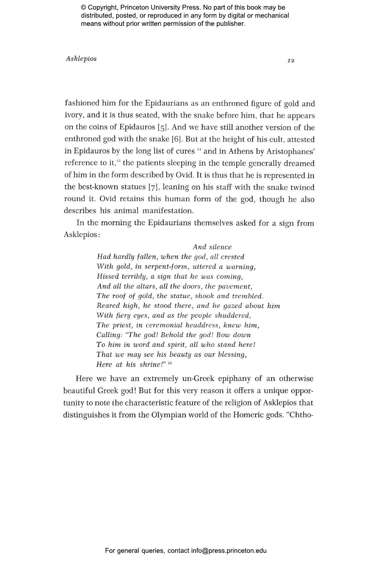 To the physicians of classical antiquity, Asklepios was the ideal of their existence as healers. In this book, acclaimed mythologist and historian of religion Carl Ker茅nyi takes readers on a tour of the sacred sites of the Greek god of medicine to investigate the origins and archetypal significance of Asklepios as the divine physician. Drawing on mythology to trace the obscure beginnings of the cult, Ker茅nyi argues that Asklepios was an aspect of his father, the god Apollo, closely associated with the light of rising sun and embodying the qualities of a healing deity. He shows how the Greeks revered Asklepios as the divine ancestor and prototype of mortal physicians and explores the role of the Asklepios archetype in modern psychology.