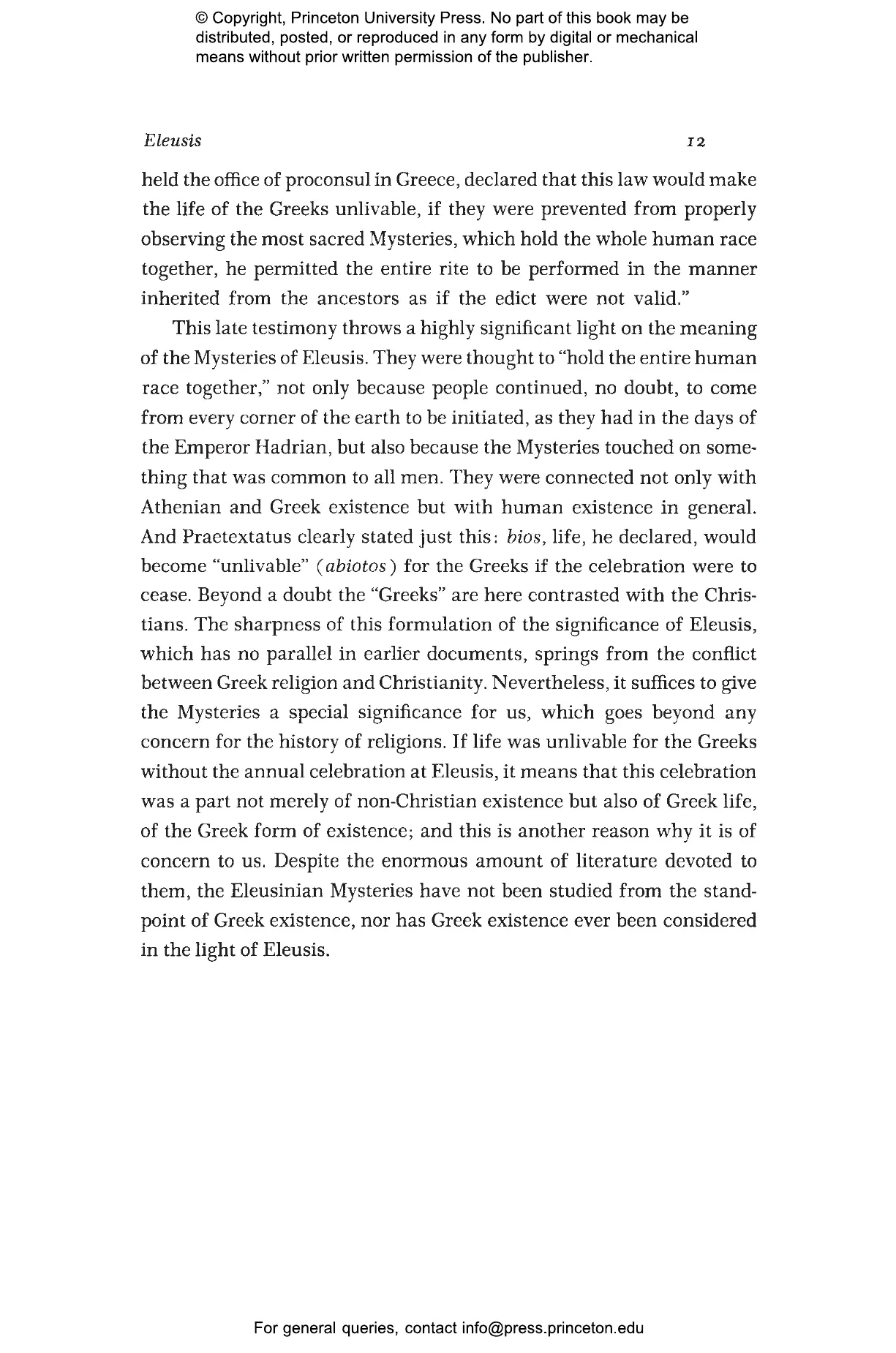 The Sanctuary of Eleusis near Athens was the center of a religious cult that endured for nearly two thousand years and whose initiates came from all parts of the civilized world. In this classic work, Carl Ker茅nyi examines the Mysteries of Eleusis from the standpoint not only of Greek myth but also of human nature. He reveals how the yearly autumnal mysteries were based on the ancient myth of Demeter鈥檚 search for her ravished daughter Persephone, a search that he equates not only with woman鈥檚 quest for completion but with every person鈥檚 pursuit of identity. Drawing on archaeology, objects of art, and religious history, Ker茅nyi explores what the mysteries may have been like for those who experienced them and suggests rich parallels with other mythologies.