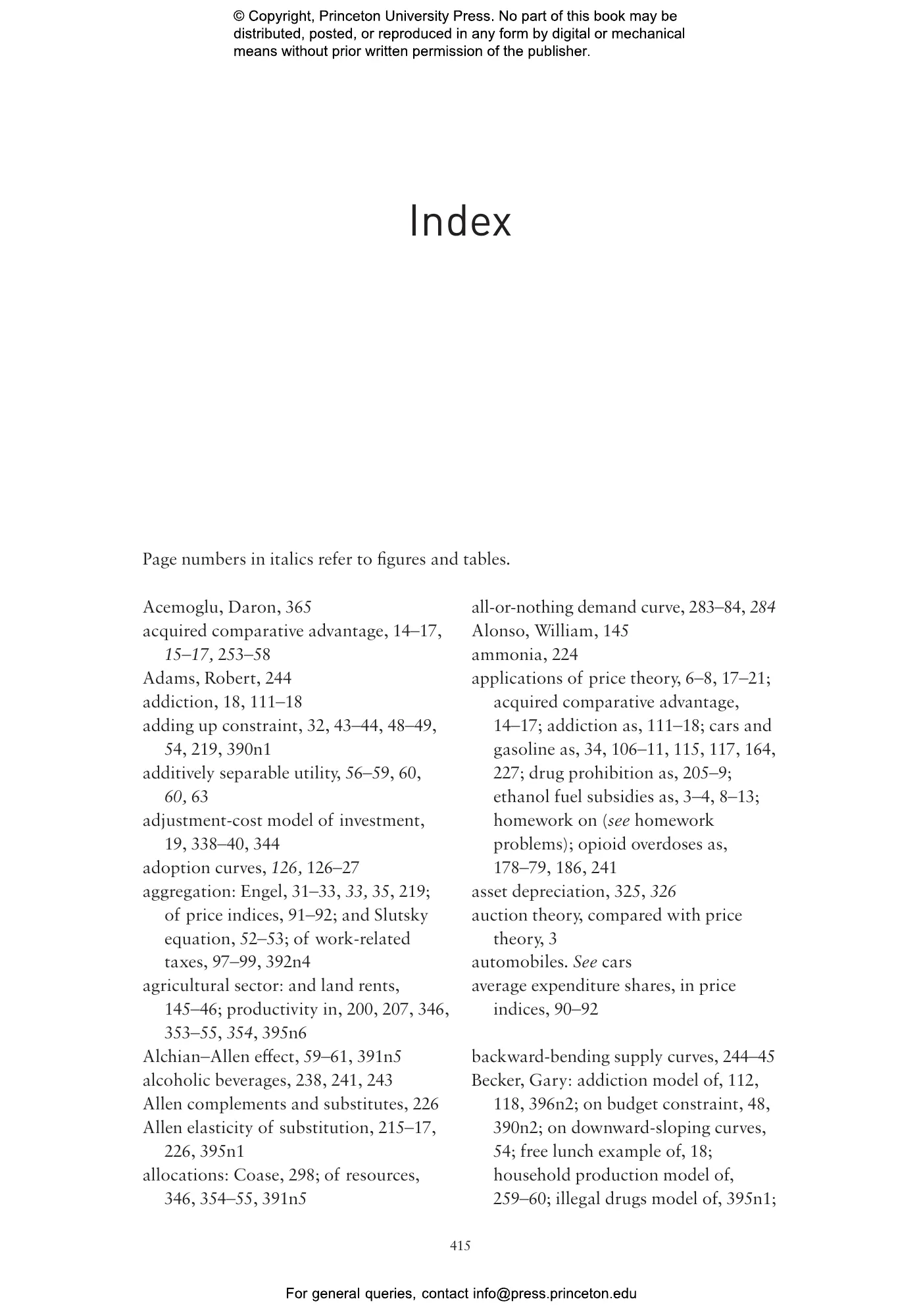 - Covers topics such as occupational choice, the evolution of inequality, the value of a statistical life, prohibition, and competition