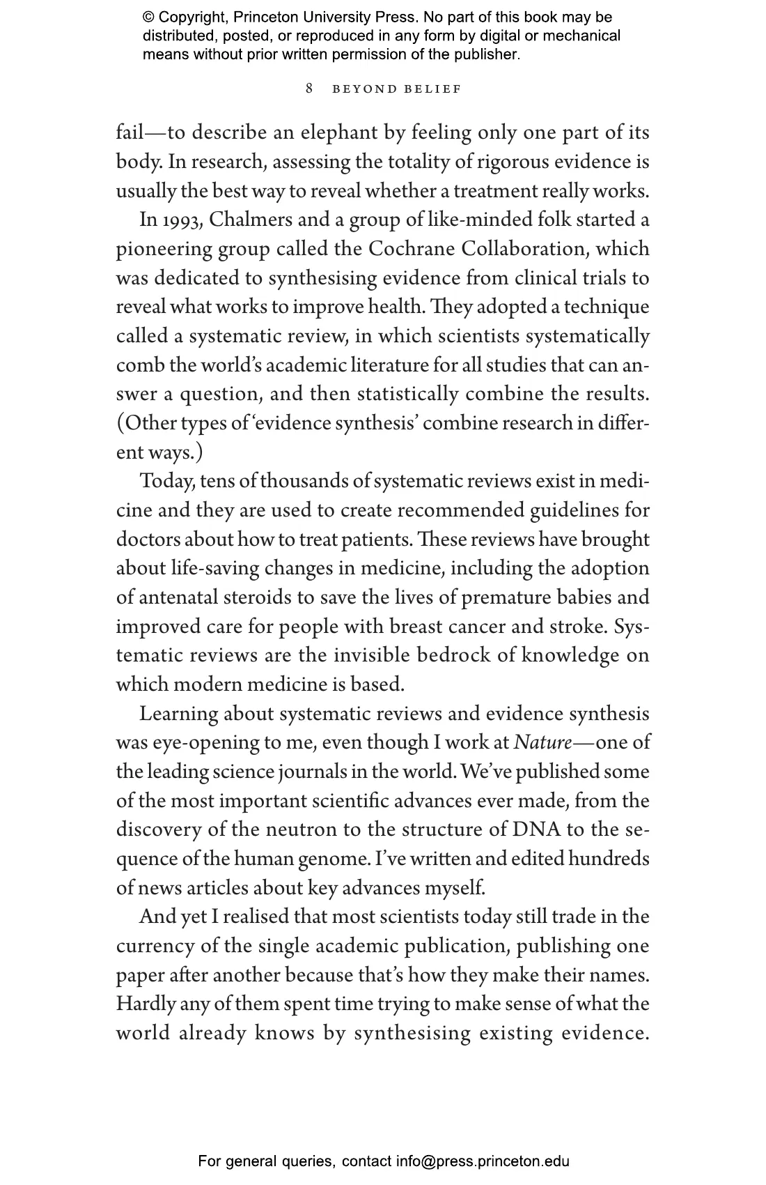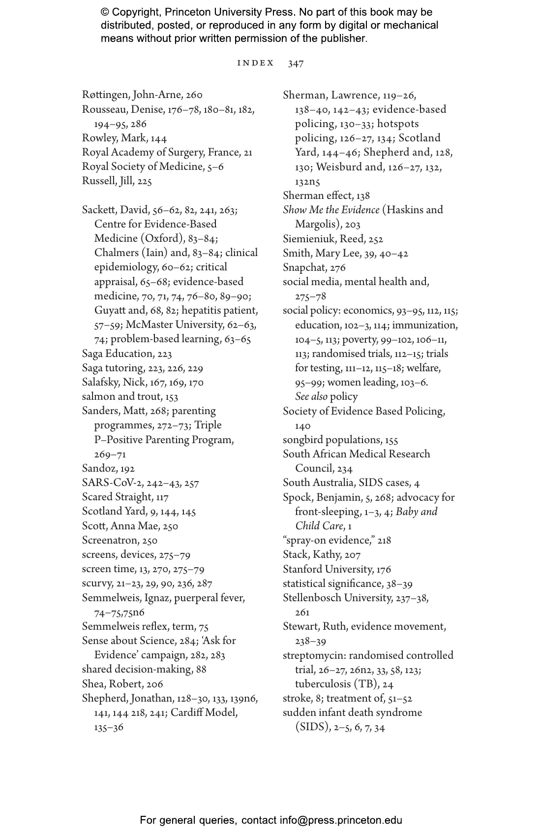 For many years, most medical advice was based on doctors’ opinions and conventional wisdom, not solid science. Helen Pearson describes how evidence-based medicine swept the world in the 1990s—becoming the predominant form of medicine practiced today—and how the idea that evidence should guide decisions is quietly transforming a host of other fields as well. Do police patrols reduce crime? Do performance appraisals boost job performance? Do welfare programs help the poor? Do smaller classes aid learning? Do smartphones harm teenagers? At a time when science is under attack and questionable claims run rampant, Pearson underscores the importance of evidence in all facets of our lives, empowering each of us to sift fact from falsehood and misinformation from the truth.