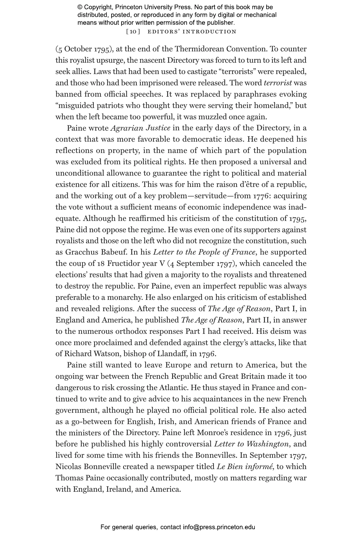 Thomas Paine: Collected Writings is the first major new edition of Paine’s works, bringing together all his writings in six breathtaking volumes that dramatically revise our previous understanding of his activities as a writer and his importance as a democratic theorist in the age of revolutions. It includes about 180 new letters and some two hundred works newly attributed to Paine, with twenty-nine works previously regarded as Paine’s being deattributed. Drawing on pioneering computerized text analysis that makes possible for the first time attributions of anonymous and pseudonymous texts, this collection includes in volumes 5–6 newly identified pamphlets and newspaper and journal contributions, and suggests that Paine was extremely active as a Grub Street oppositional Whig writer in the decade prior to the American Revolution. Many writings from the period of his residence in France (1792–1802) and his subsequent return to the United States are also restored to his published output. Paine emerges as a much more consistent and serious democratic theorist than is often assumed, whose contributions to revolutionary debates in America, Britain, and France were unparalleled in their time.
