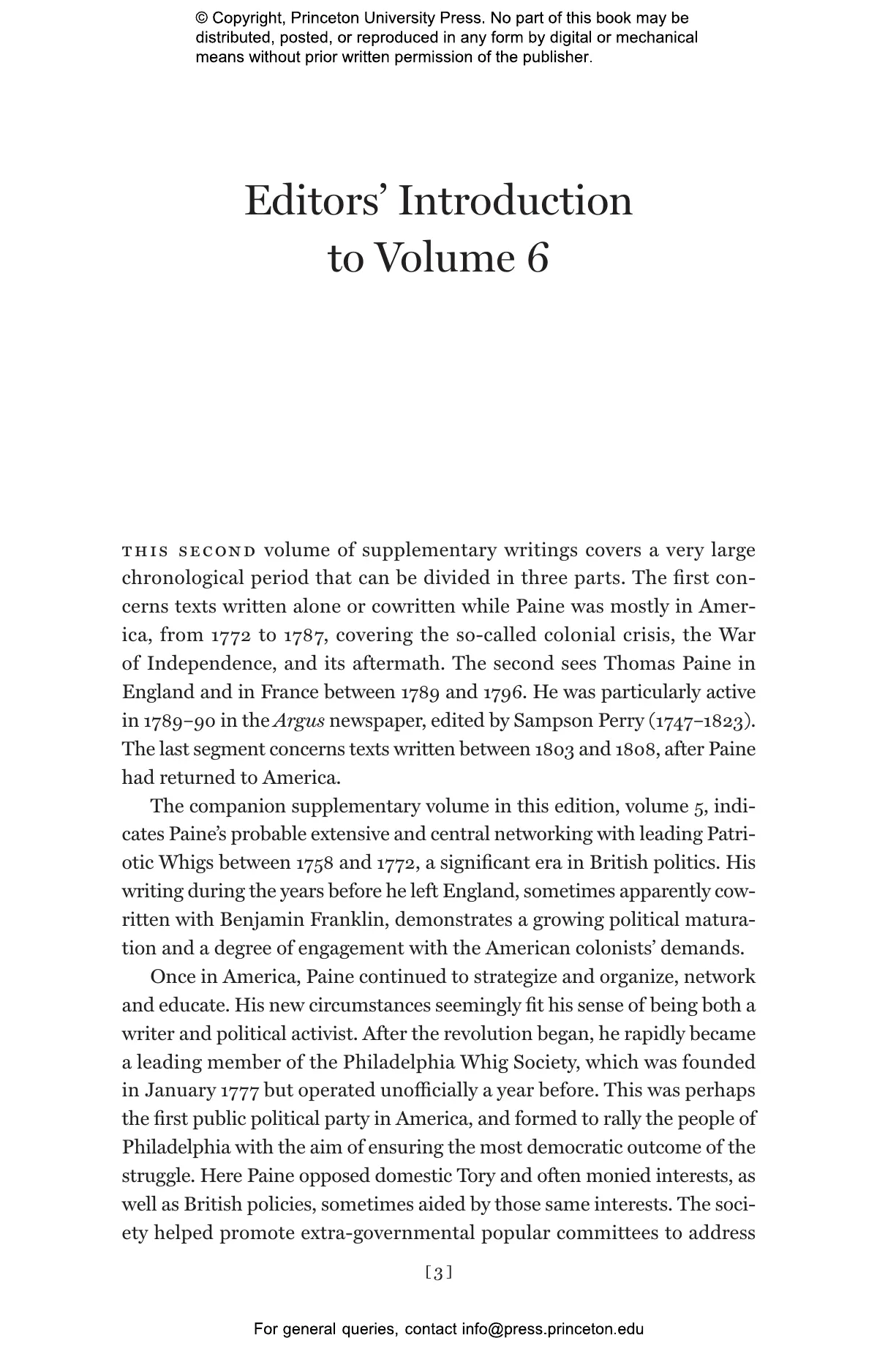 Thomas Paine: Collected Writings is the first major new edition of Paine’s works, bringing together all his writings in six breathtaking volumes that dramatically revise our previous understanding of his activities as a writer and his importance as a democratic theorist in the age of revolutions. It includes about 180 new letters and some two hundred works newly attributed to Paine, with twenty-nine works previously regarded as Paine’s being deattributed. Drawing on pioneering computerized text analysis that makes possible for the first time attributions of anonymous and pseudonymous texts, this collection includes in volumes 5–6 newly identified pamphlets and newspaper and journal contributions, and suggests that Paine was extremely active as a Grub Street oppositional Whig writer in the decade prior to the American Revolution. Many writings from the period of his residence in France (1792–1802) and his subsequent return to the United States are also restored to his published output. Paine emerges as a much more consistent and serious democratic theorist than is often assumed, whose contributions to revolutionary debates in America, Britain, and France were unparalleled in their time.