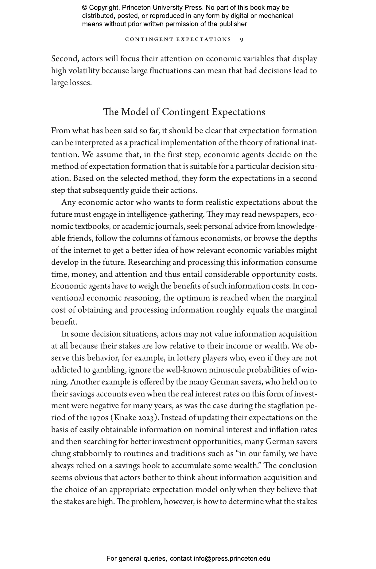 “Contingent Expectations delivers a powerful and historically rich reinterpretation of how economic actors form beliefs, overturning the notion that a single mode of expectations formation can account for behavior across time and context. Nützenadel and Streb develop the concept of ‘contingent expectations’ with exceptional clarity, illuminating how experiential learning, information acquisition, and the narratives individuals invoke are shaped by the informational and institutional environments they confront. This book stands as a major contribution to the study of beliefs, establishing historically grounded heterogeneity in expectation formation as a central—and indispensable—feature of economic behavior.”—Michael Weber, Daniels School of Business, Purdue University