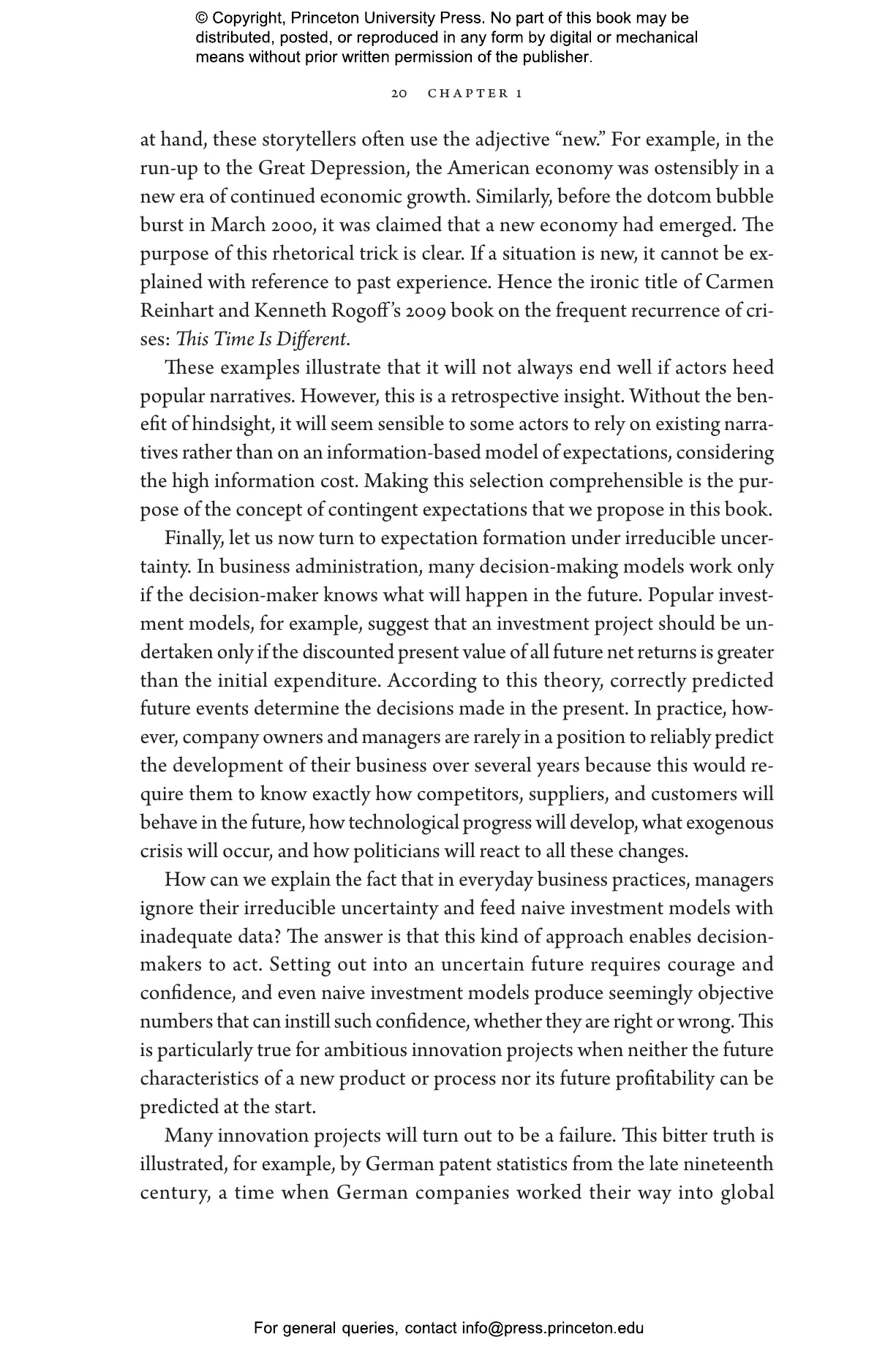 “This excellent book provides long-needed substance to the common idea that economic events are the outcome of expectations and how they coordinate. Examining a variety of original sources, mostly from the last one hundred and fifty years (but with one from medieval times), the authors show conclusively that a universal model of expectation that accurately describes the behaviors of managers, investors, and households across time is inconceivable. Their concept of contingent expectations in which human actors draw on multiple sensemaking skills in their social environment captures a way to use this finding to progress and opens the subject to much more sensible study than hitherto.”—David Tuckett, University College London