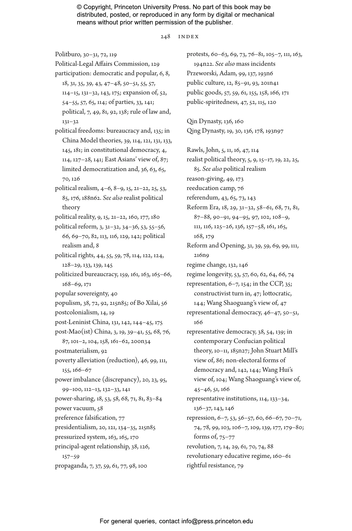 “This is the most comprehensive, fair, and rigorous critique of the theories of the China Model I have seen in the last decade or so. It also offers a strong realist argument for China’s need for constitutional democracy. This is an important book, and there is no other that so expertly and comprehensively brings together contemporary Chinese political thought with political science studies of China.”—Joseph Chan, author of Confucian Perfectionism: A Political Philosophy for Modern Times