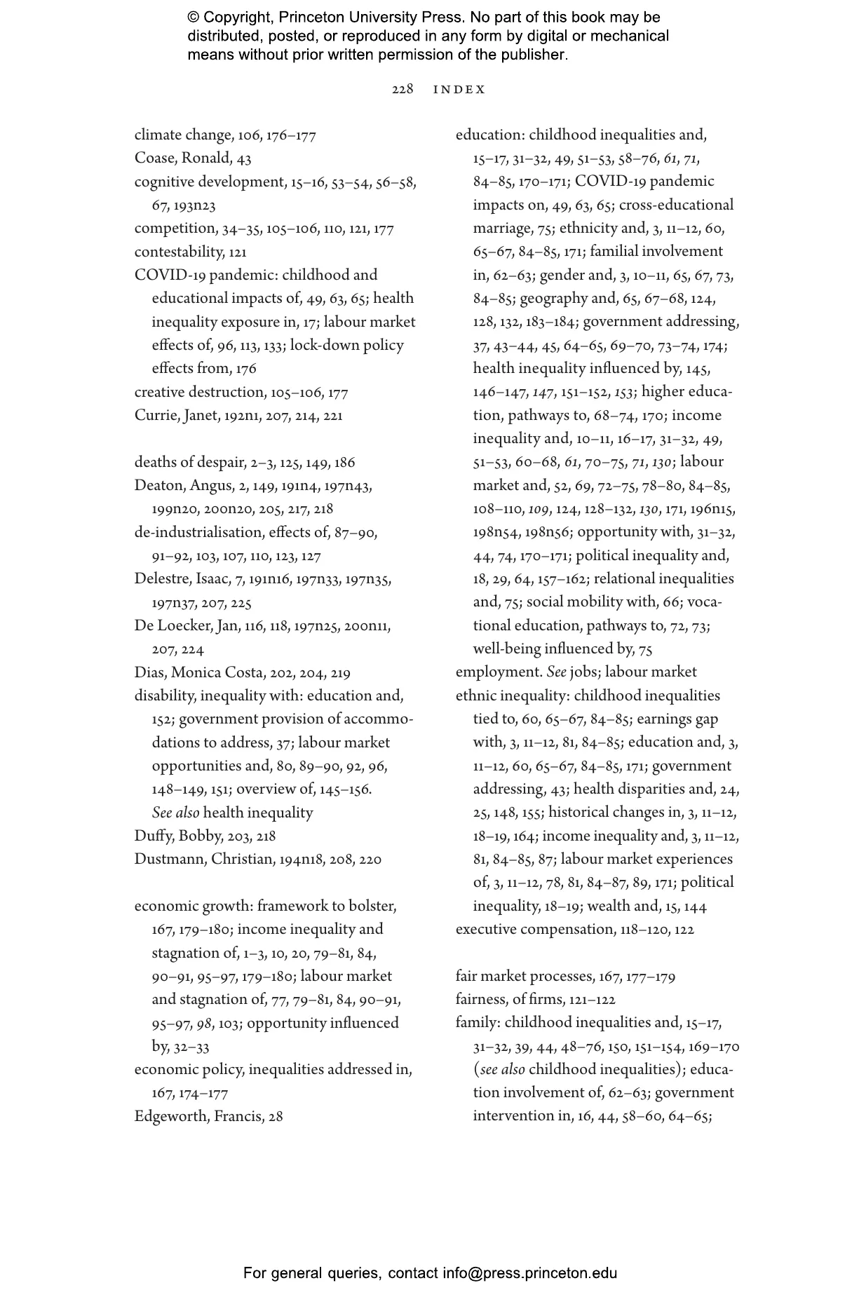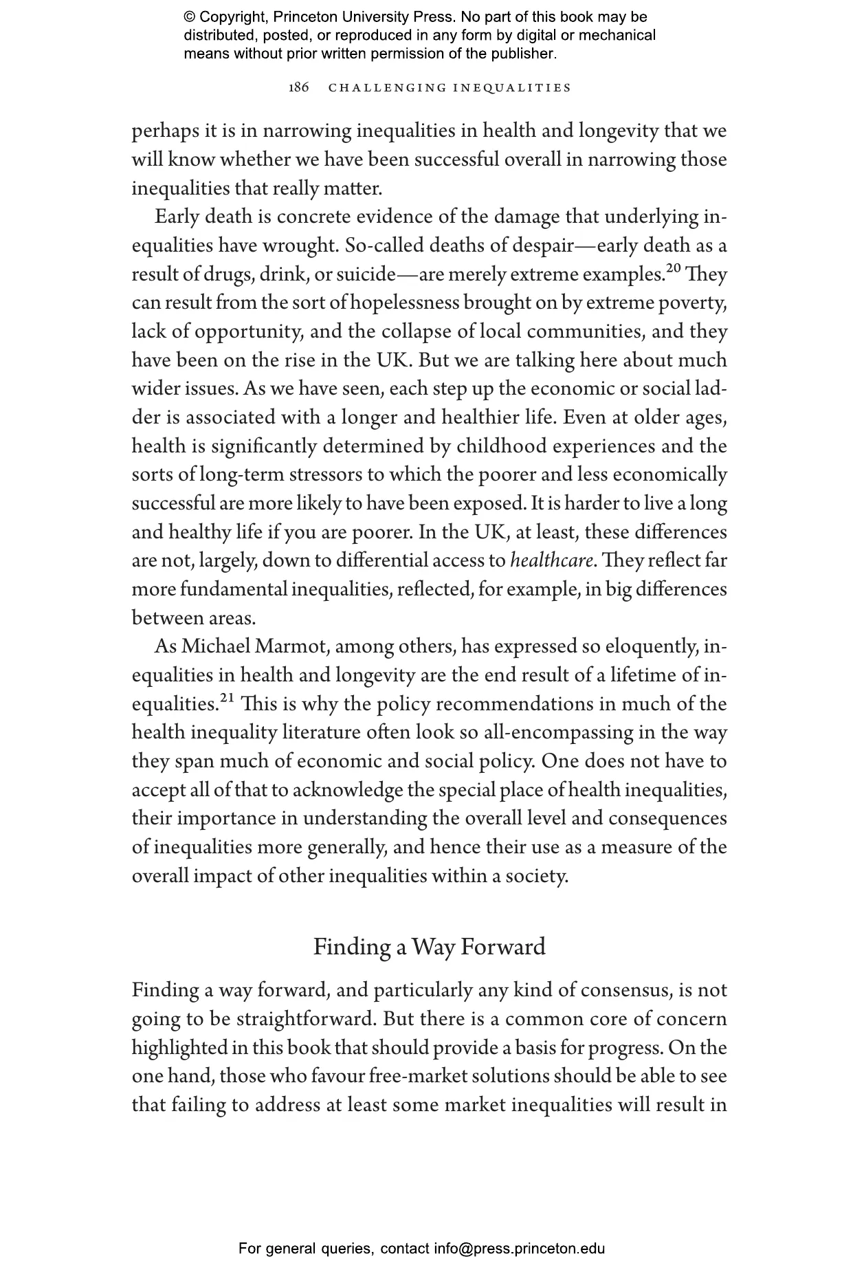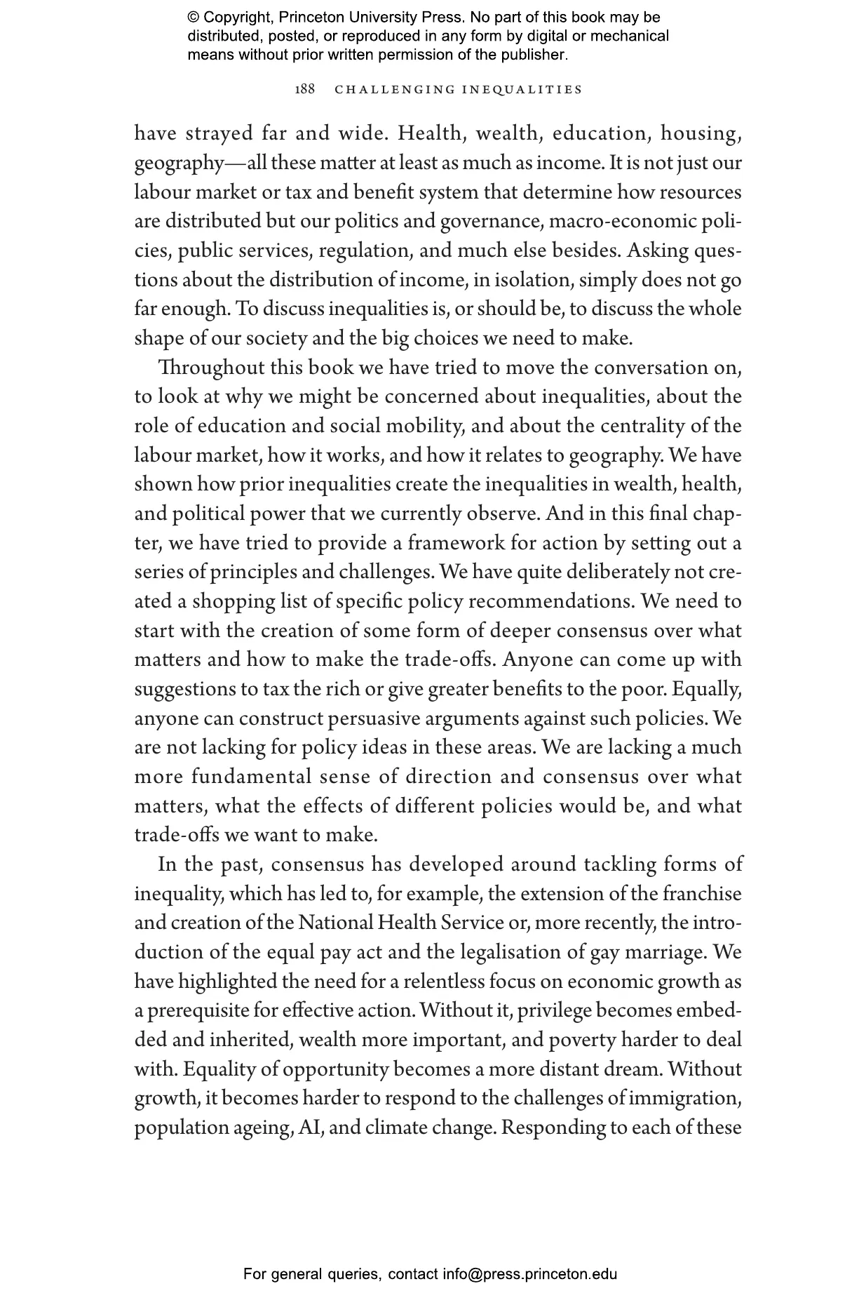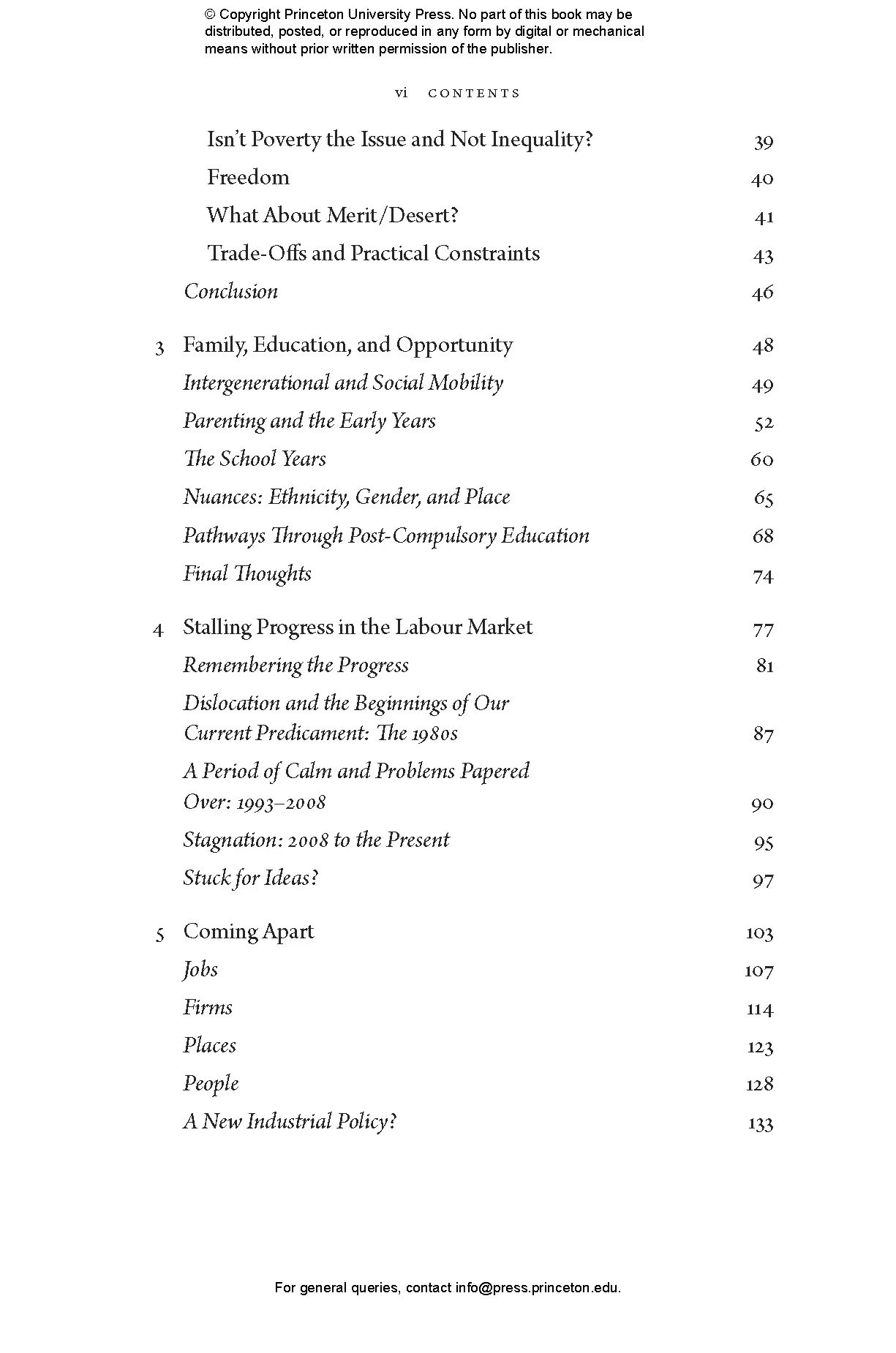 The book explains the enduring effects of early life experiences and education and examines the trends in employment and earnings over recent decades. It argues that economic stagnation since the financial crises of 2008–2009 has exposed inequalities originating in the 1980s. Not only have incomes stagnated, but so has progress towards reducing health inequalities and dealing with inequalities across gender, ethnicity, geography, age and educational level. The combination of earnings inequality and economic stagnation has led to the growing importance of wealth, the increasing concentration of economic power in an older generation and a decline in social mobility. Economic inequalities have also resulted directly in dangerous differences between regions and in political power across groups.