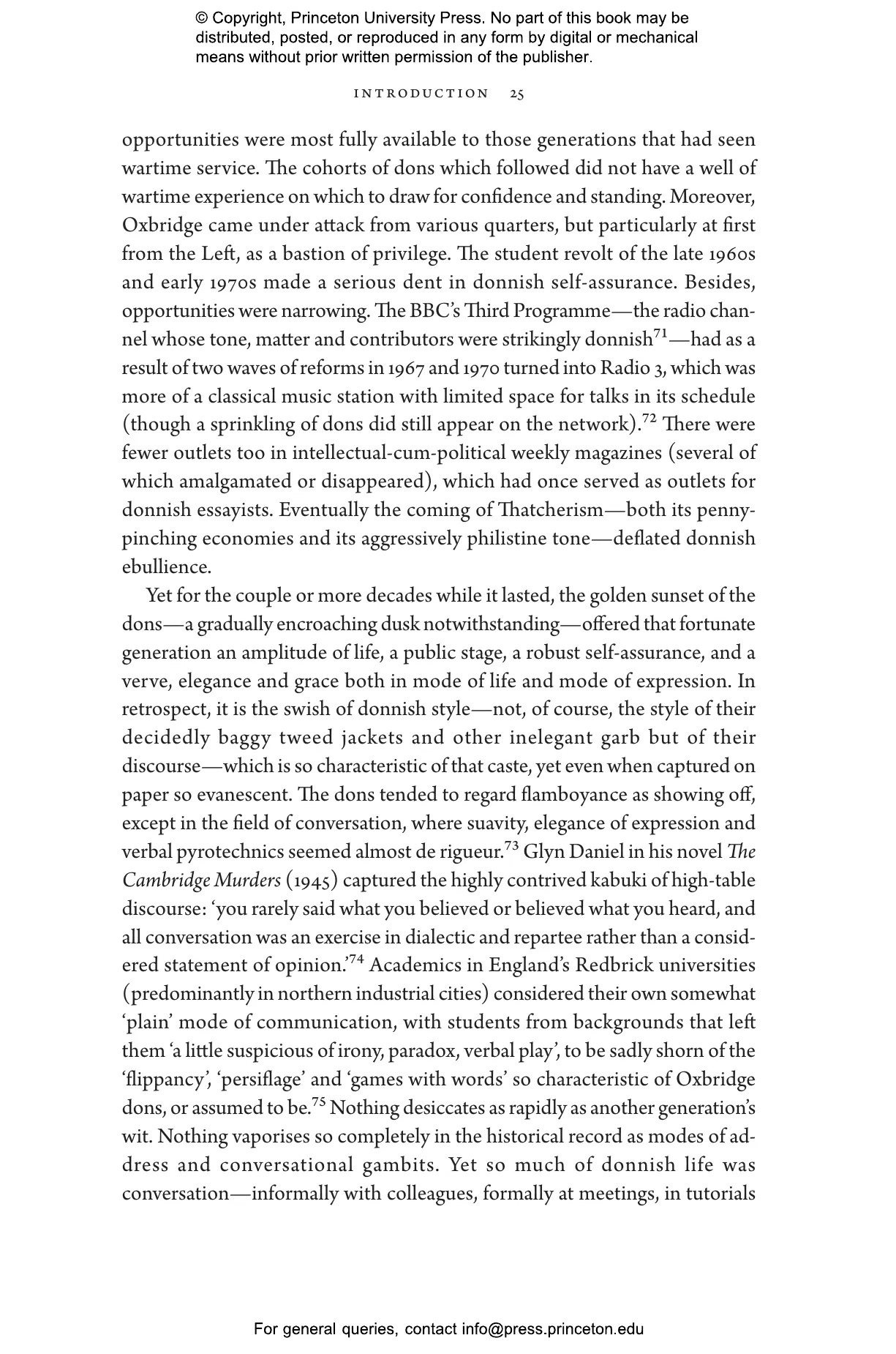 Kidd describes the multiple important roles played by dons in World War II, the countercultural force of convert Catholicism and the strange phenomenon of Tory Marxism. He examines the dons鈥 attitudes towards America and France鈥攁s seen in their engagement in the debates over the Kennedy assassination and the awkward reception of L茅vi-Strauss鈥檚 anthropology. When Oxbridge came under assault, it was first by a modernising, technocratic Left in the early 1960s, then by student radicals in the late 1960s and finally by the Thatcherite Right鈥攊n whose rise, Kidd shows, some dons were complicit. As deference to Oxbridge intelligentsia declined, a reassessment of the place of dons in British public life began.