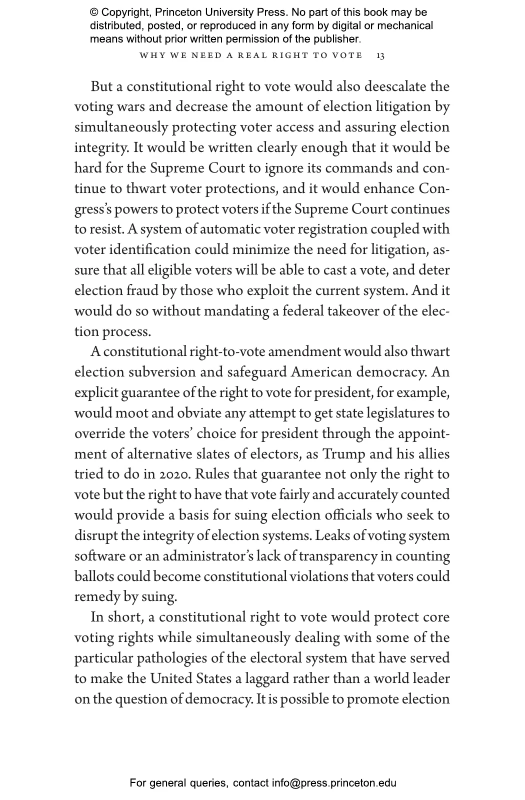 “To safeguard America’s elections and her democracy, Richard Hasen, one of the nation’s leading election law experts, builds the compelling bipartisan case for a Twenty-Eighth Amendment guaranteeing the right to vote. Were the Framers writing the Constitution today, in the aftermath of the 2020 presidential election, the First Amendment might well guarantee the right to vote.”—Former US Court of Appeals Judge J. Michael Luttig