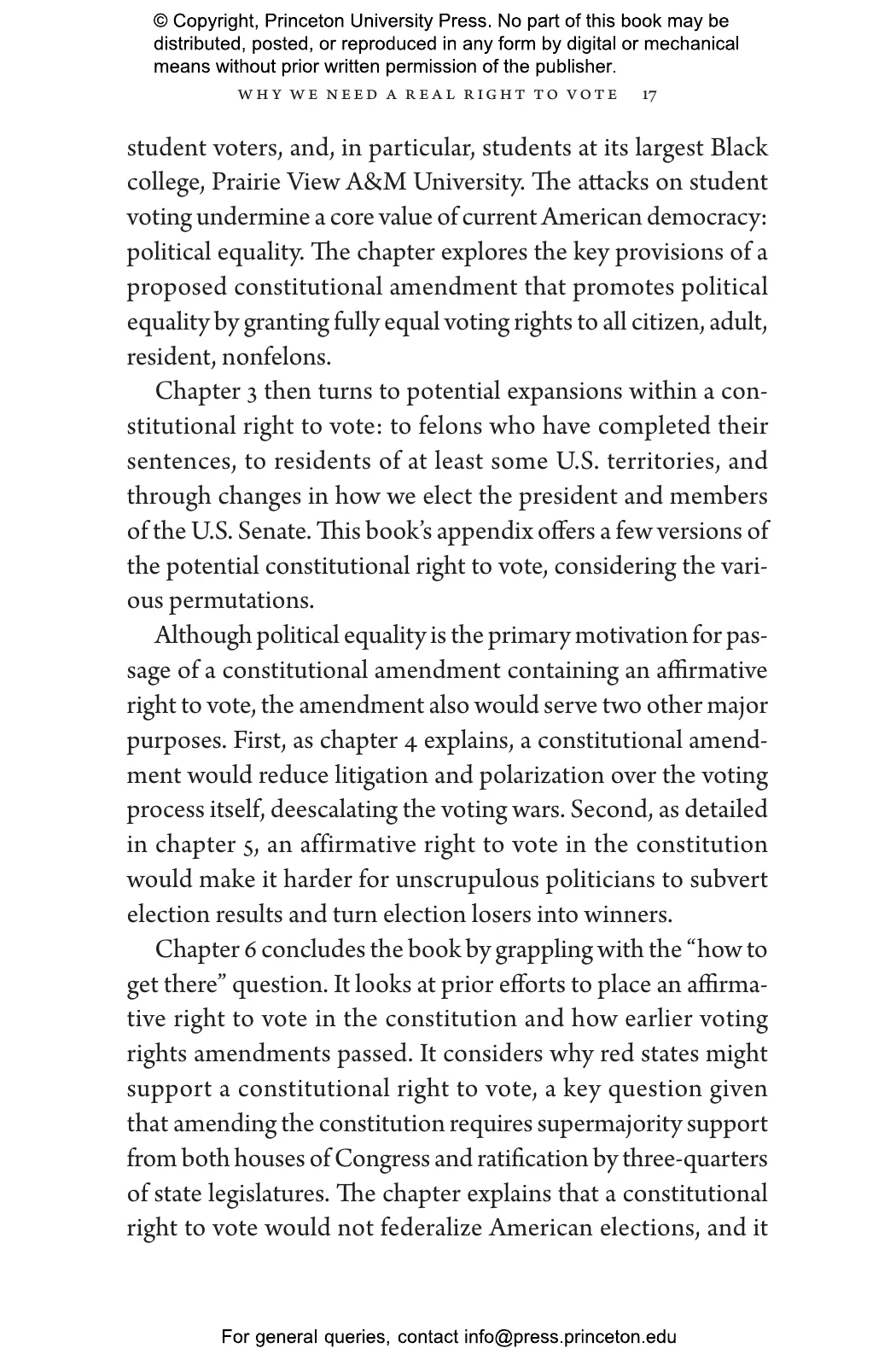 “Richard Hasen compellingly conveys the complexity and urgency of the case for an affirmative right to vote in the Constitution. He has masterfully transformed what has been an idealistic musing into a proposal that demands real consideration and engagement. We should all be heartened that the right to vote has such an informed, inventive, and effective champion.”—Janai Nelson, president and director-counsel of the Legal Defense Fund
