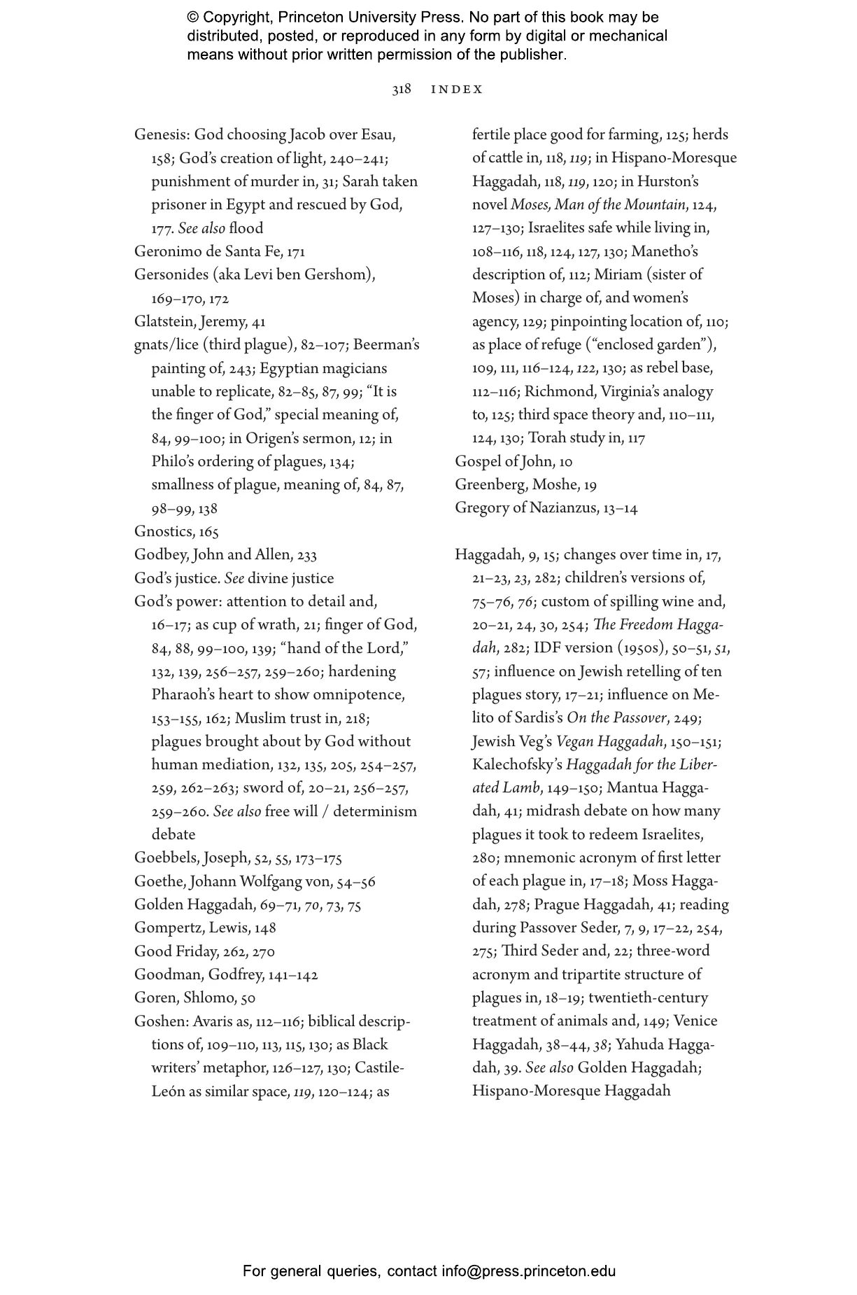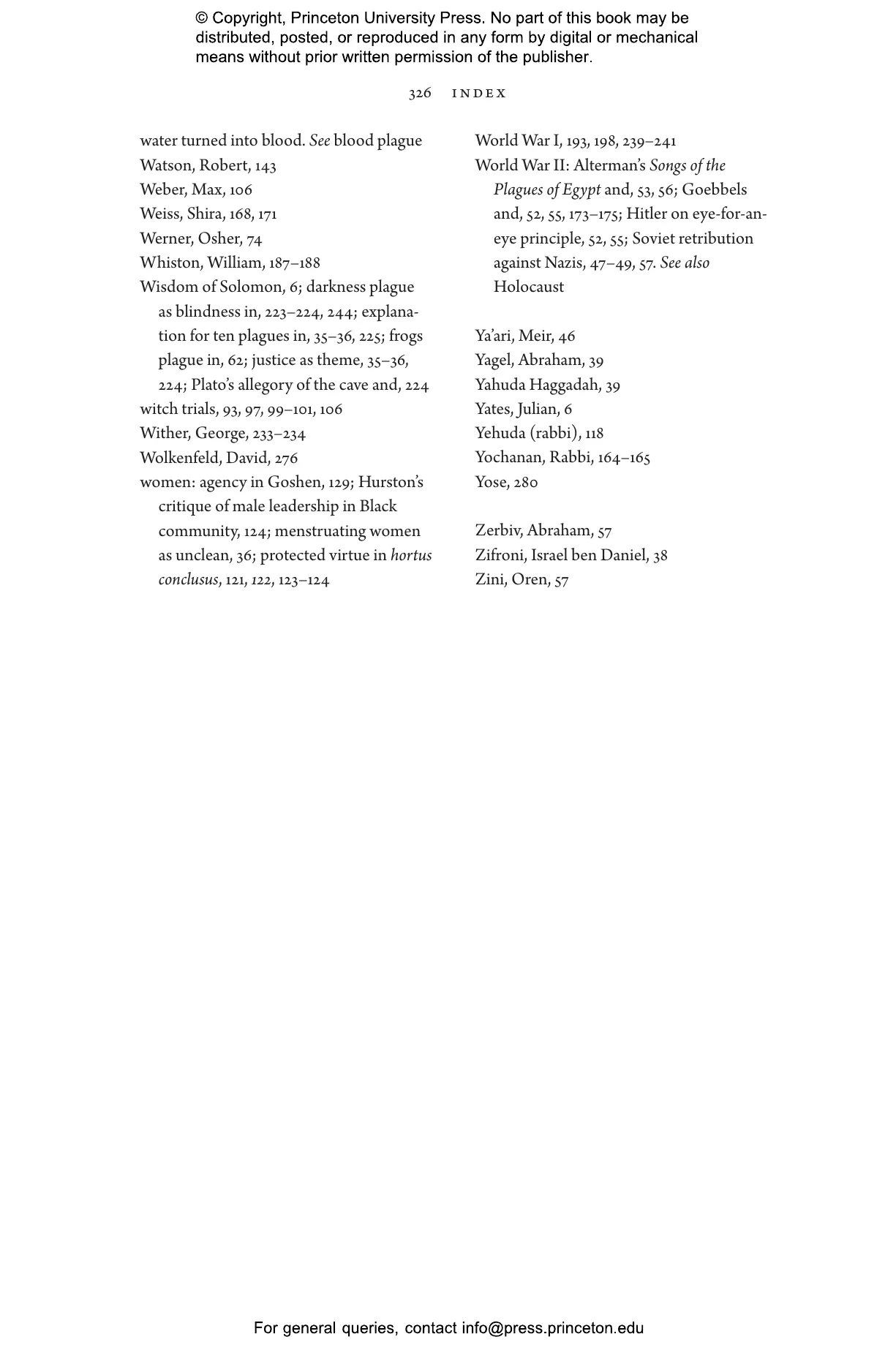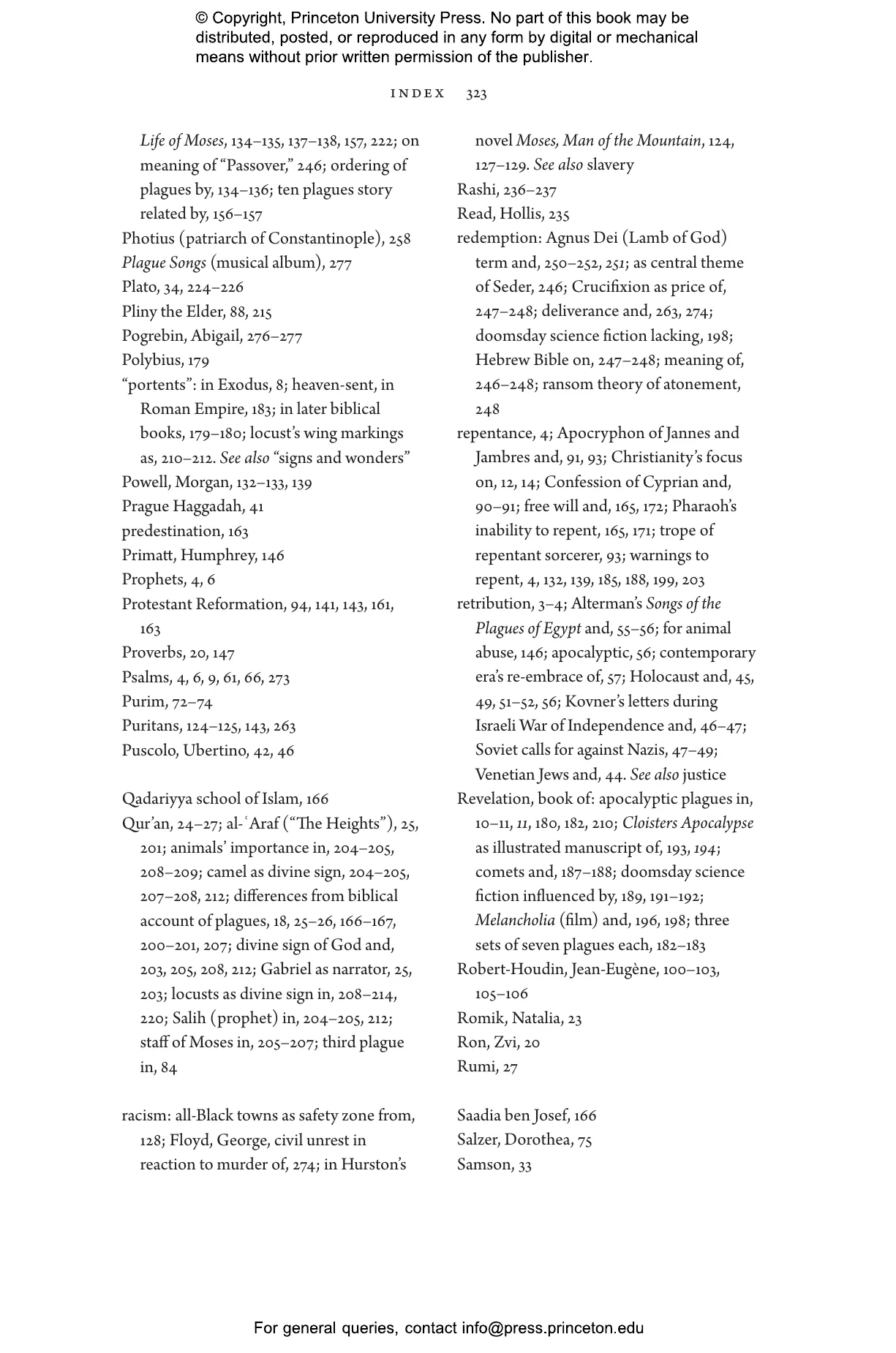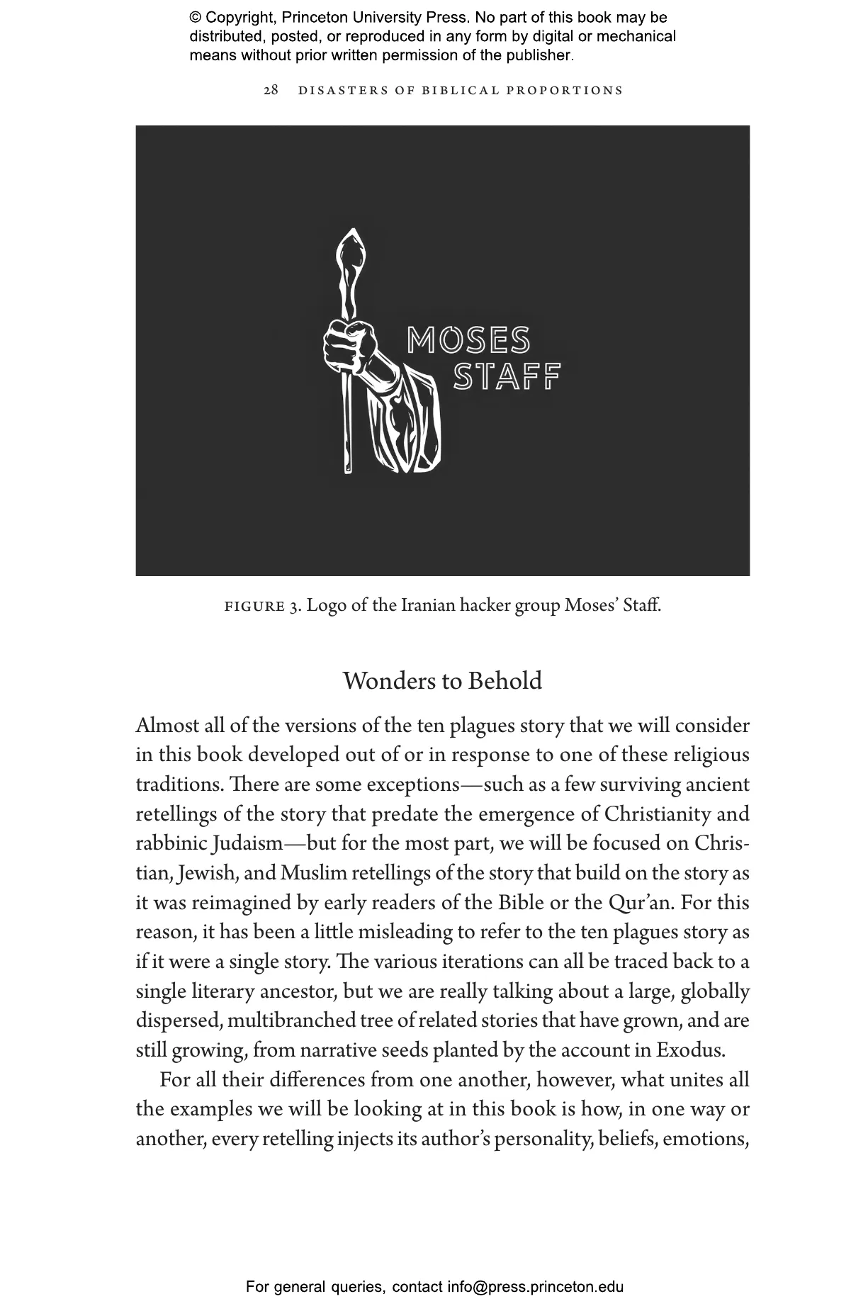“A bracing read whose pages encompass themes as varied as animal rights and meteorology, science fiction and the art of storytelling, this imaginatively argued and generously illustrated account showcases the ways in which the ten plagues figure as critical flashpoints in understanding human nature. Thanks to its novel and abundant insights, you won’t think of the biblical narrative in quite the same way ever again.”—Jenna Weissman Joselit, author of Set in Stone: America’s Fascination with the Ten Commandments