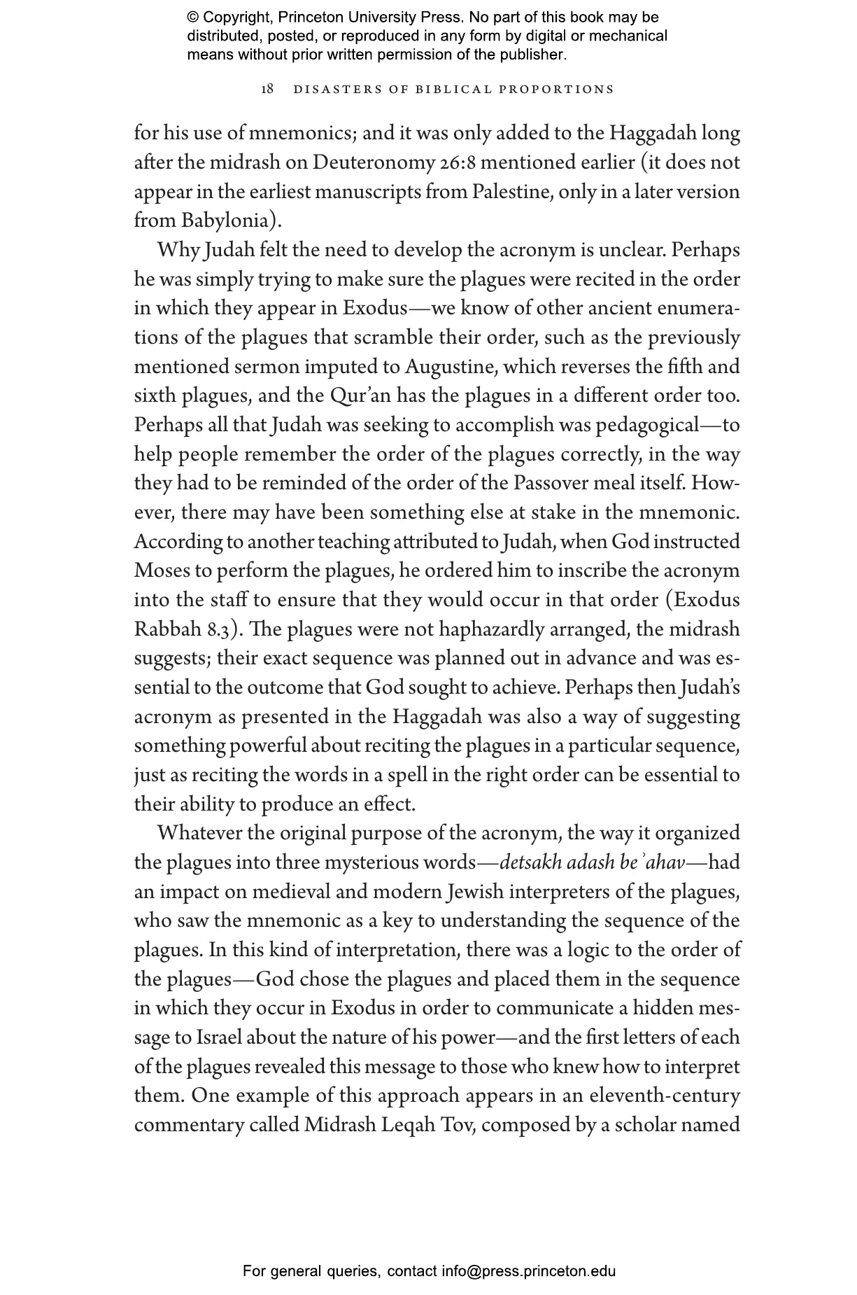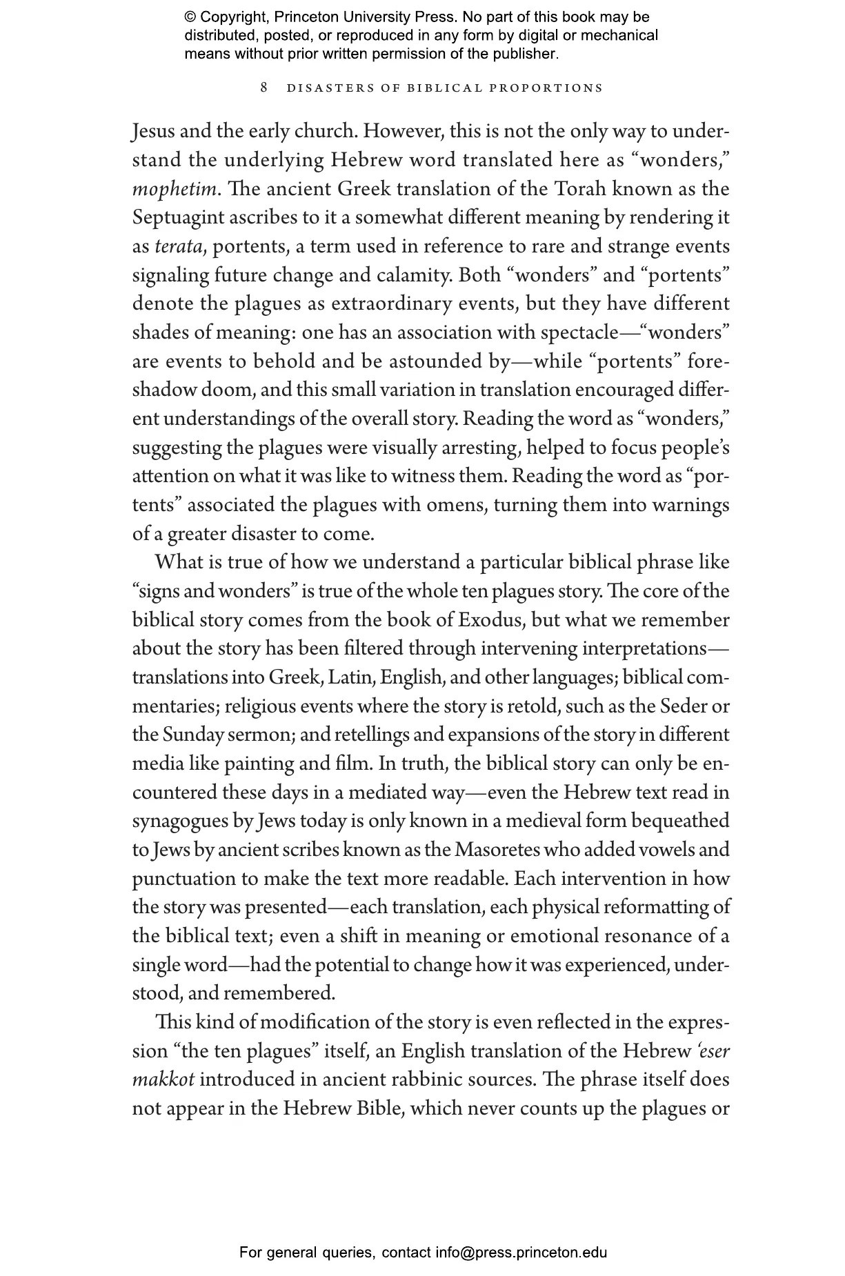“Weitzman’s Disasters of Biblical Proportions offers a brilliant exploration of the twists and turns in the exegetical history of the Ten Plagues story, following the paths it has taken in different contexts from late antiquity to the present. In Weitzman’s hands, the plagues become an incredibly rich turf for the exploration of responses to disaster that are only too relevant today.”—Ilana Pardes, author of The Song of Songs: A Biography