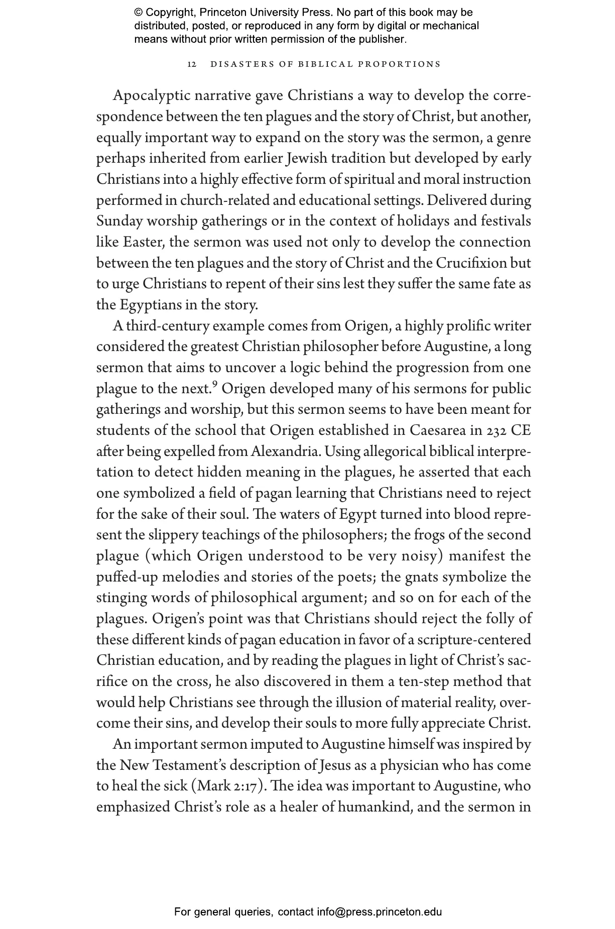 Tracing the interpretation and retelling of each plague across time and space, Weitzman uncovers how this ancient tale found new meaning among Jews, Christians, and Muslims and continues to shape how people today understand the present and envision the future. Even as it recounts the history of how the ten plagues have been reimagined, Disasters of Biblical Proportions is also a history of people’s search for shelter from the calamities of their own times—and of humanity’s striving for justice, freedom, and redemption.