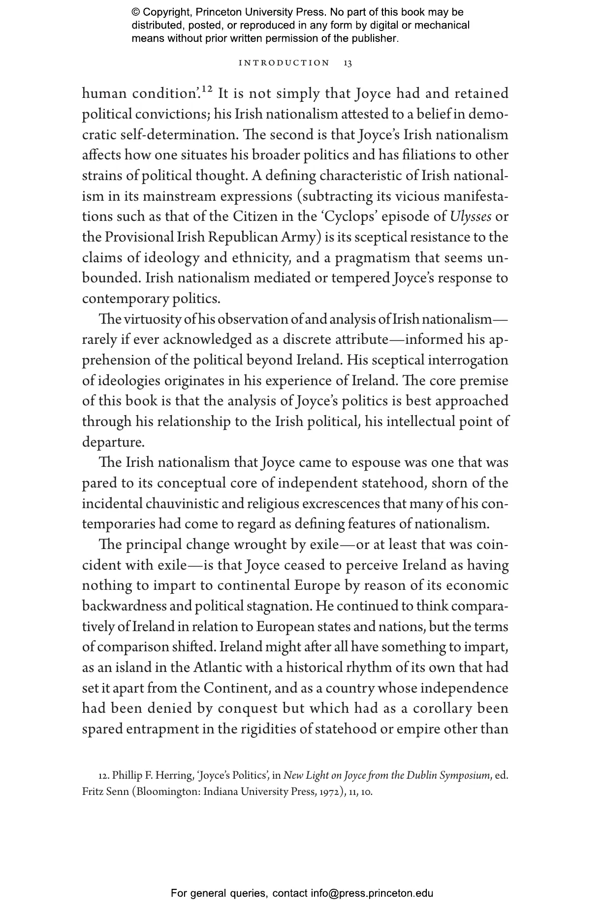 “Anyone interested in Joyce’s politics, a much-contested field, must read this book. It is authoritative, original, and richly argumentative, steering a complex course between conflicting opinions. All aspects of the topic are considered, and many errors in previous accounts are corrected. Indispensable.”—Zachary Leader, author of Ellmann’s Joyce: The Biography of a Masterpiece and Its Maker