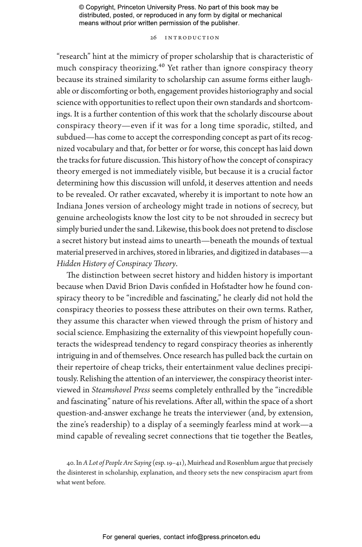 “Why are some theories called ‘theories’ while others are called ‘conspiracy theories’? How does such labeling affect how society views those theories labeled ‘conspiracy theories’? Andrew McKenzie-McHarg’s long-anticipated The Hidden History of Conspiracy Theory seeks to answer these and other questions regarding the intellectual history of conspiracy theory by examining how key thinkers, particularly throughout twentieth-century history, have developed and molded the concept. While McKenzie-McHarg is focused on the terminology and conceptualization of ‘conspiracy theory,’ this engaging contribution is a must-read for anyone interested in the substance of conspiracy theories themselves as well as their place in our society and their potential harms. The Hidden History of Conspiracy Theory is poised to be one of the most important contributions to the burgeoning field of conspiracy theory research.”—Joseph E. Uscinski, coauthor of Conspiracy Theories: A Primer