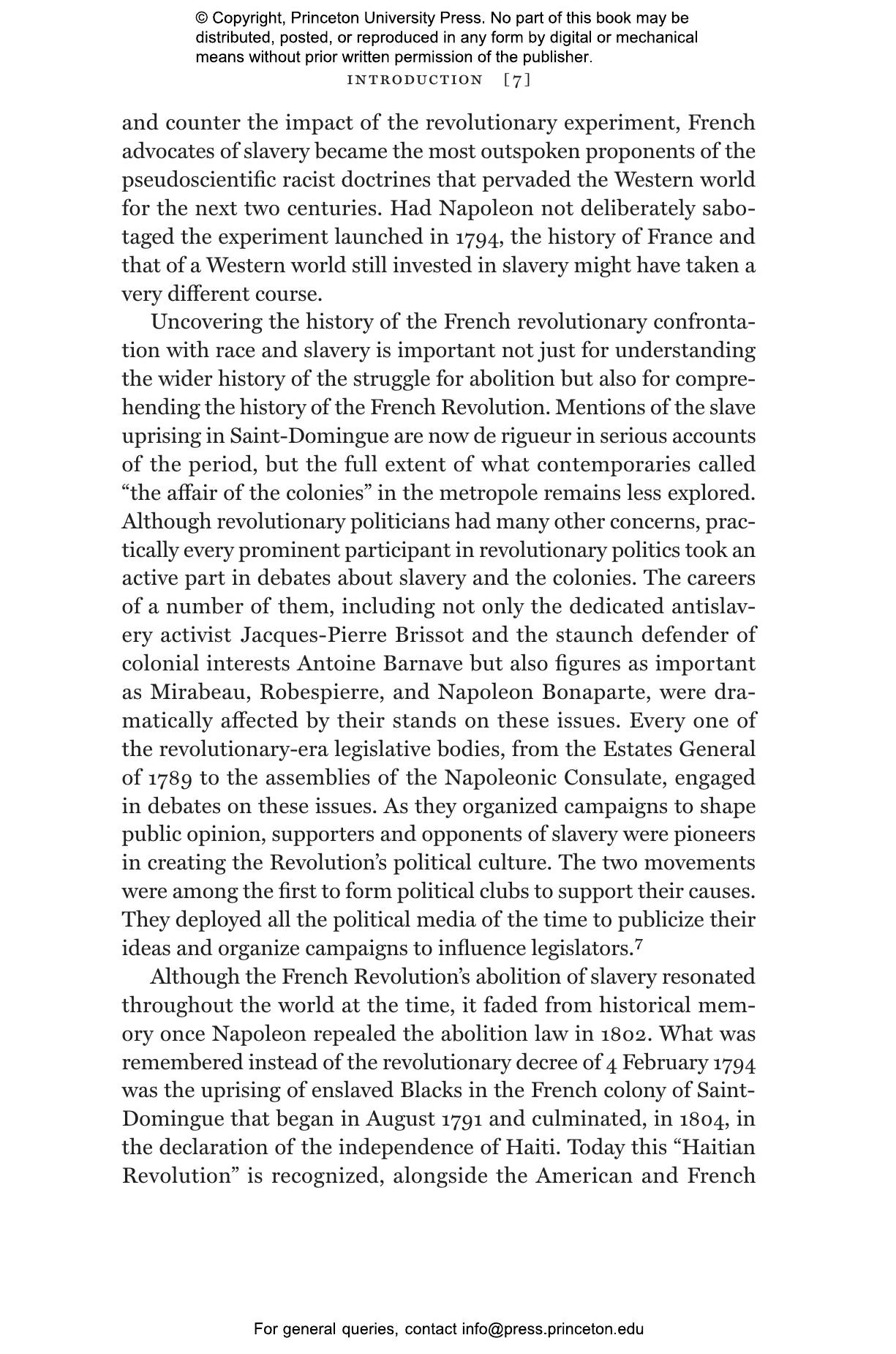 When the French revolutionaries passed the Declaration of the Rights of Man and Citizen in 1789, they immediately faced a burning question: did that document鈥檚 first article鈥斺淢en are born and remain free and equal in rights鈥濃攁pply to the 800,000 enslaved Black people in the country鈥檚 colonies? Over the next dozen years, revolutionary leaders fought over this question. The First Emancipation tells how French lawmakers initially protected slavery in their constitution but reversed themselves in 1794, making France the first western country to abolish slavery throughout its empire. Yet only eight years later, in 1802, Napoleon tried to force the emancipated Black populations of the colonies back into slavery. His decision led to his first major military defeat and to the proclamation of the independence of the Black nation of Haiti, but also to the reestablishment of slavery in other French colonies, where it would not finally be abolished until 1848.