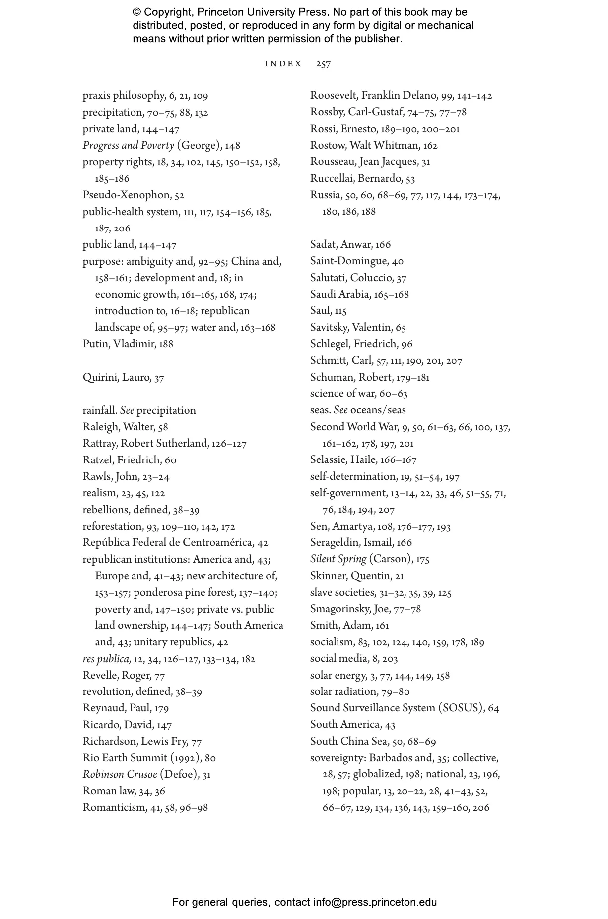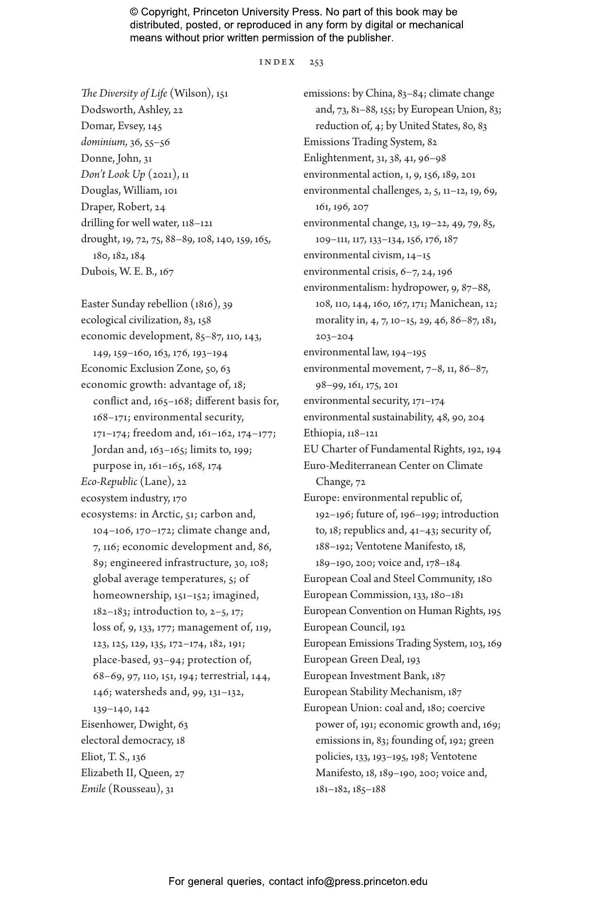 “The Environmental Republic offers a bold new vision on how accelerating changes to our natural environment can be a catalyst to renew our social contract and political arrangements. Boccaletti provides myriad examples—from the US to China to East Africa—where ‘getting institutions right’ can integrate effective stewardship of natural resources with stronger economic development and greater civic participation. As we enter an era of rapid change, this book is essential reading for those who want real answers to this challenge, not just the usual Band-Aid.”—Jeremy Oppenheim, Managing Partner, Systemiq