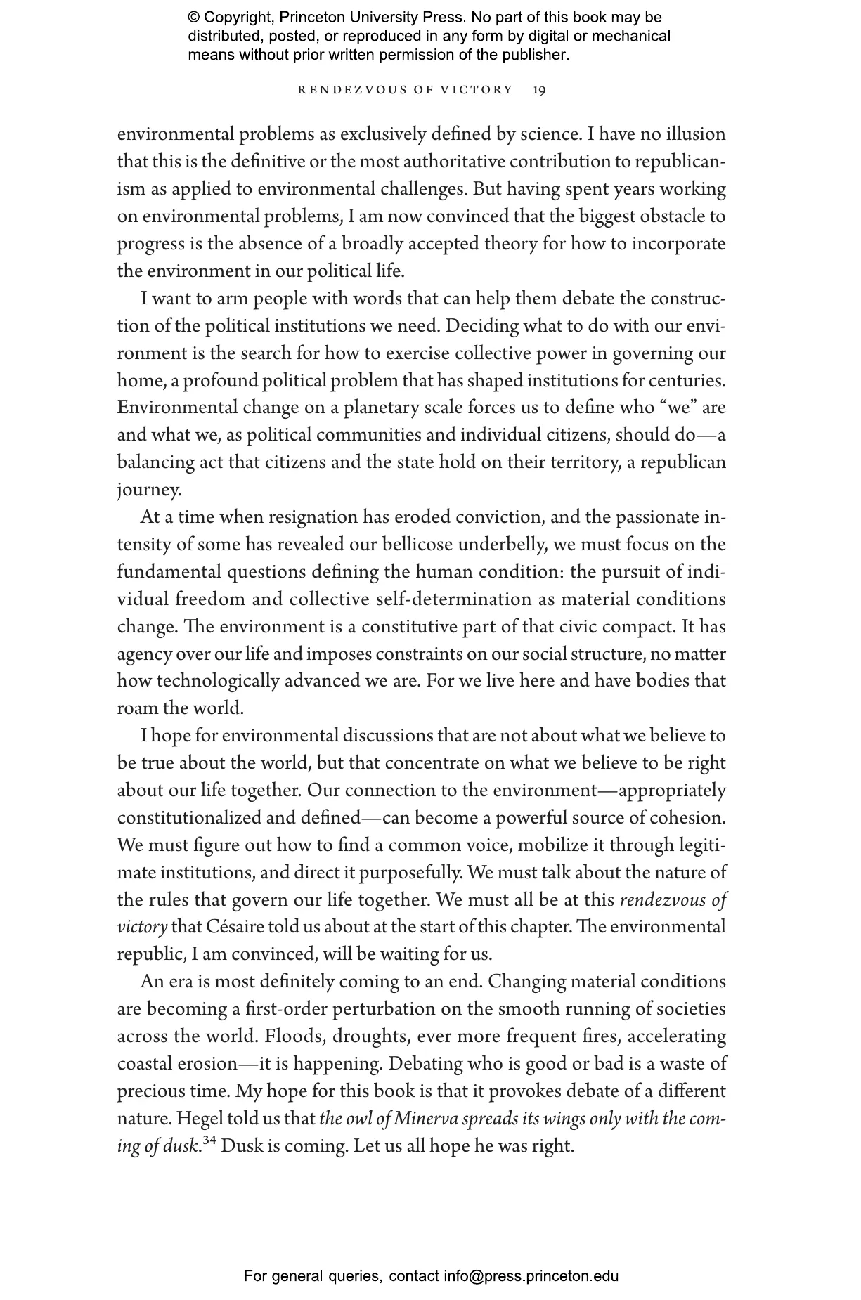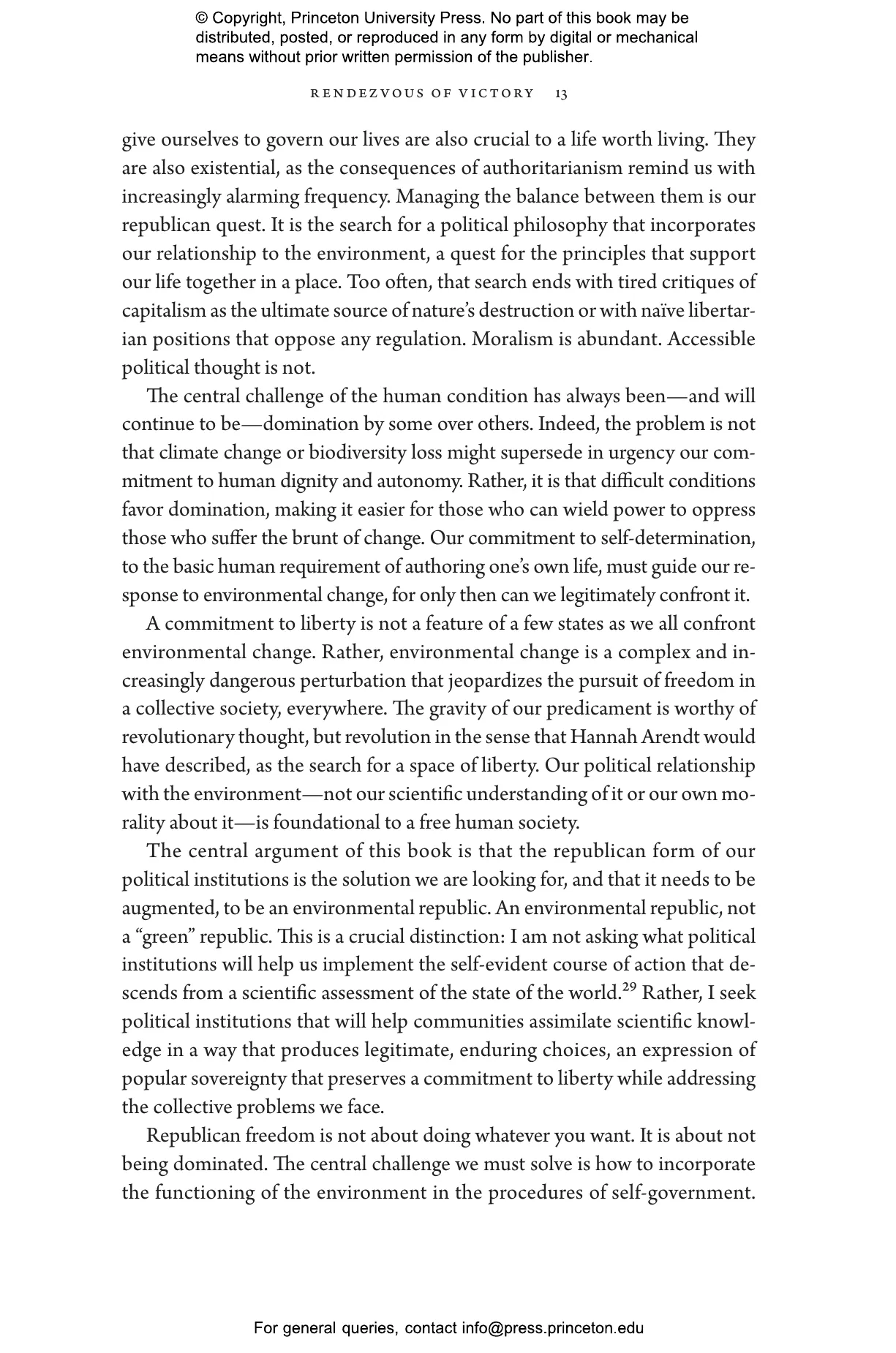 Republicanism is arguably the most powerful political idea in history, an extraordinary feat of human imagination that balances individual liberty with collective responsibility. The Environmental Republic reclaims this idea as the path to sustaining our life together on a changing planet, reframing our relationship to the environment not as a constraint on liberty but as its republican foundation.