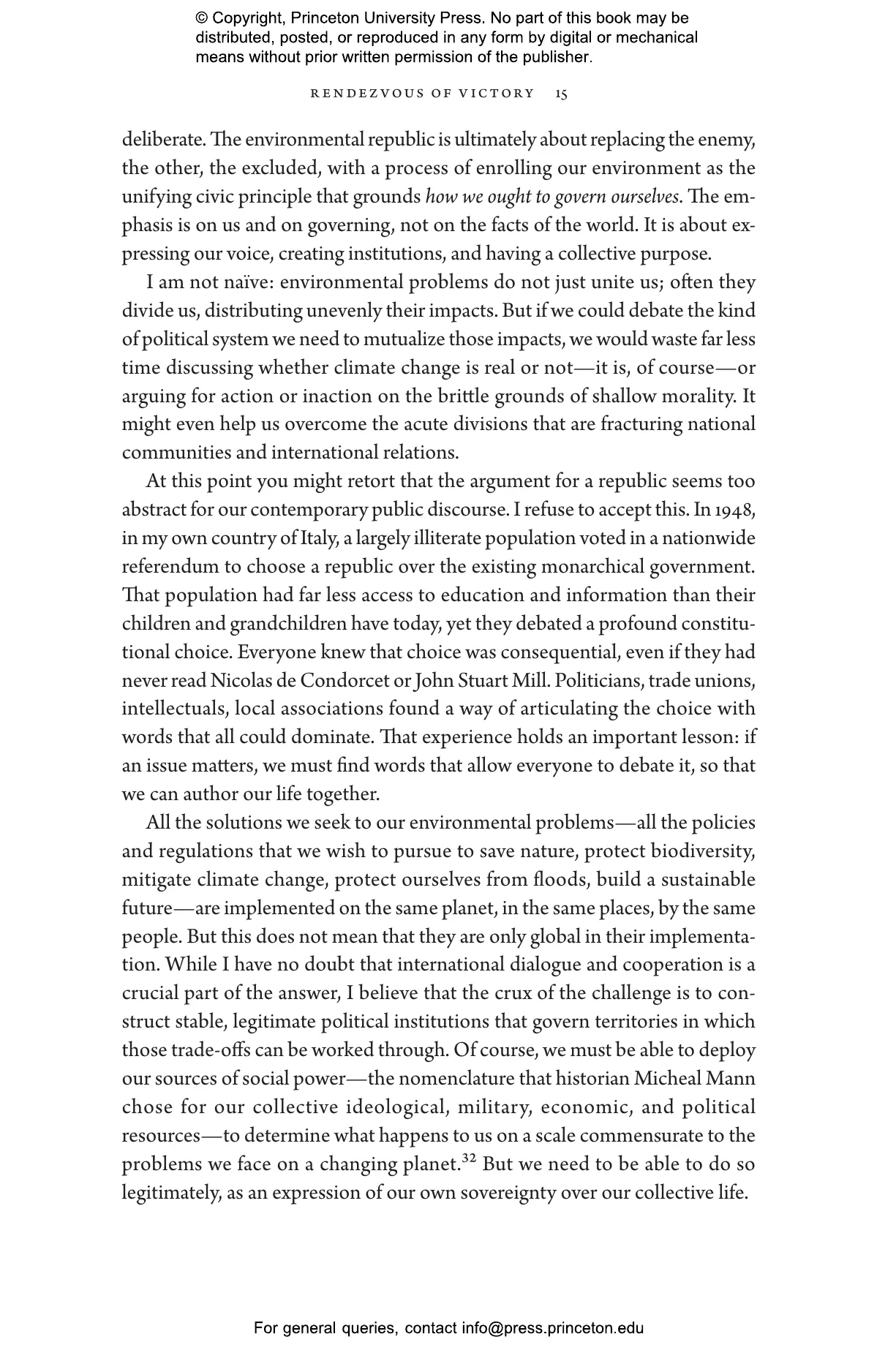 “This remarkable book is worth reading. The great Florentine humanists, from Coluccio Salutati to Niccol貌 Machiavelli, understood that republican self-government is the only route to liberty. Boccaletti builds on that tradition, showing us how environmental commitment is not just an important source of political energy but also the foundation of a truly progressive political system dedicated to constructing a future worthy of our aspirations.”—Matteo Renzi, former prime minister of Italy