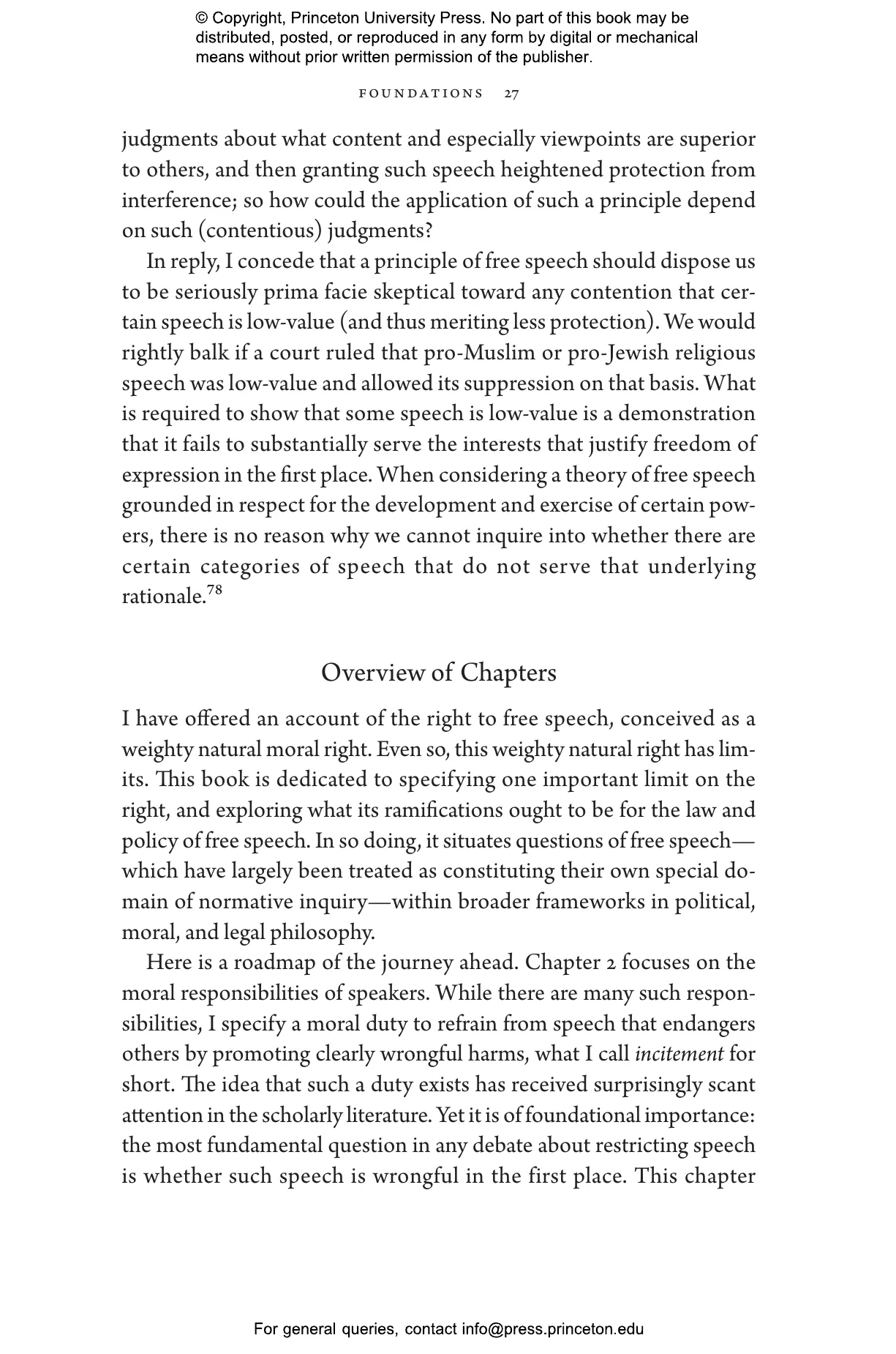 Using incitement as his central example of harmful speech, Howard sets out an integrated framework of speakers’ rights and duties, determining when and why speech restrictions can be justified. In developing this original theory, Howard pinpoints the ethical duties of social media platforms, assesses the role of counter-speech as a weapon against harmful communications, and explores how the law and morality of free speech can and should diverge.