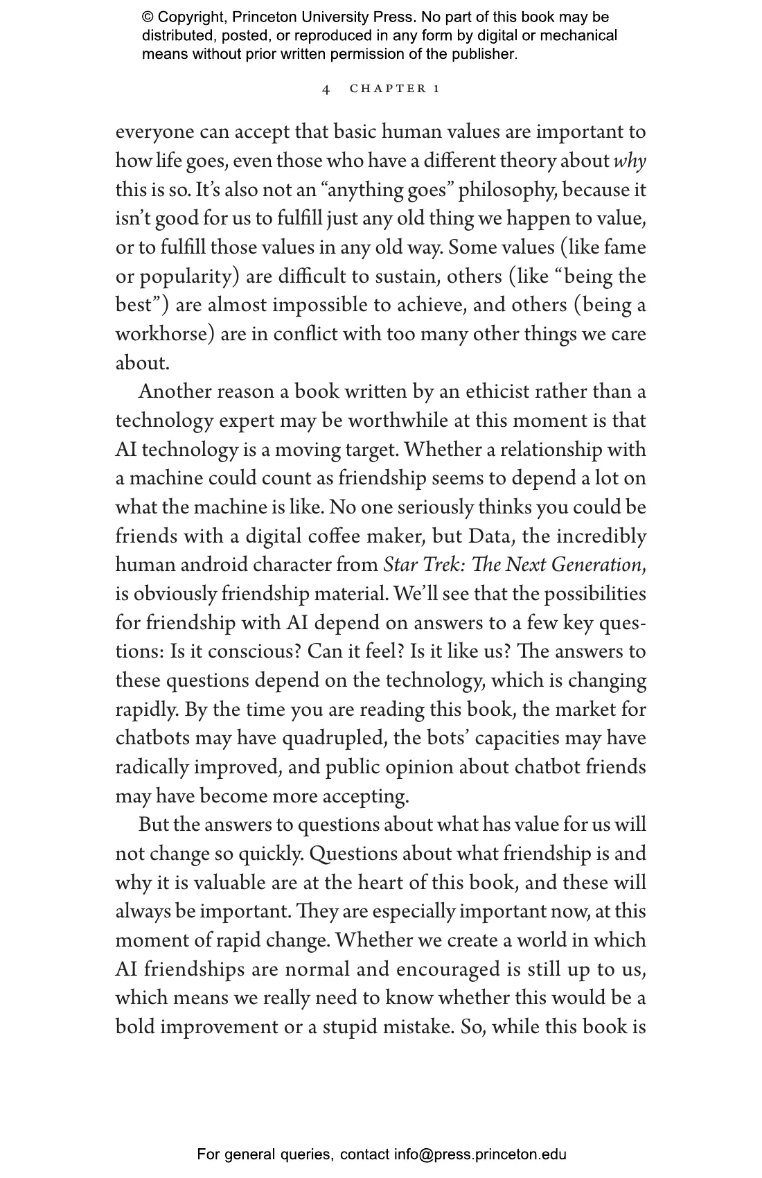 Blending insights from philosophy, psychology, and her own entertaining experiences with chatbots, Valerie Tiberius addresses a subject at the heart of our growing reliance on AI companions. She defines the ideal friendship as an enjoyable, close relationship built on shared activities between people who care about each other for their own sake. But few things in life are ever ideal, including friendship. Tiberius demonstrates how different kinds of friendships can be valuable in different ways: they can be pleasurable or useful, they can shape who we are and how we see ourselves, and the best ones are good for their own sakes. Using each of these values as her guide, Tiberius finds that relationships with chatbots do in fact exhibit some of the characteristics of friendship鈥攂ut cautions that even future relationships with advanced AI are highly unlikely to be good in all the ways human friendships are.